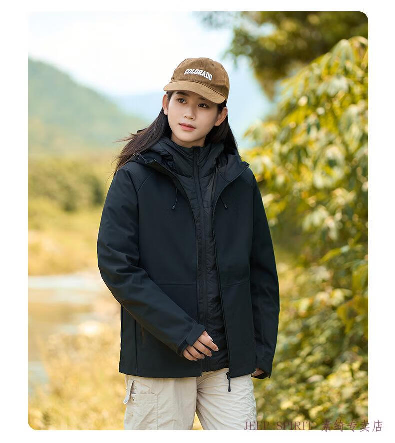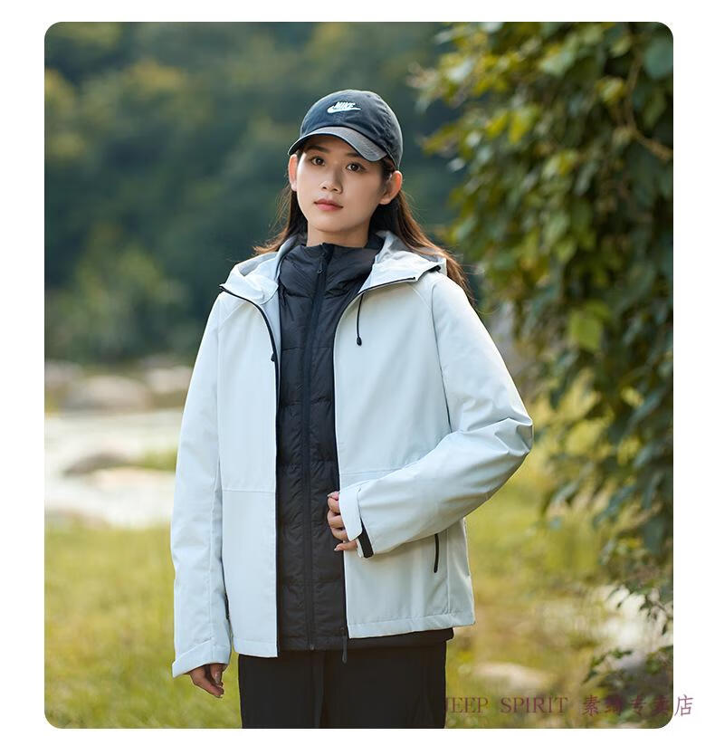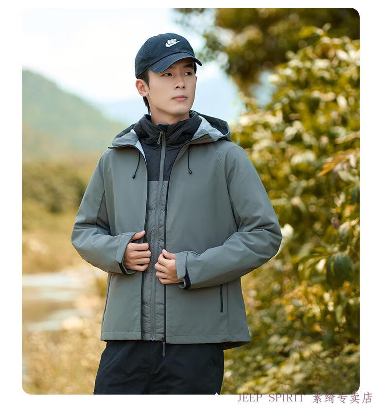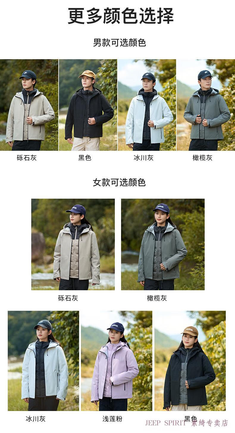JEEP SPIRIT2025 Autumn and Winter Jacket Women's Three-in-One Jacket Men's Outdoor Windproof and Waterproof Cycling Fishing and Mountaineering Jacket Unisex Fleece - Glacier Gray XL