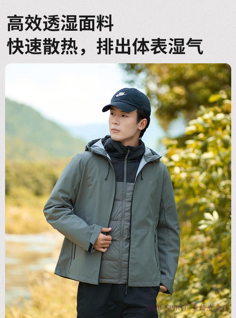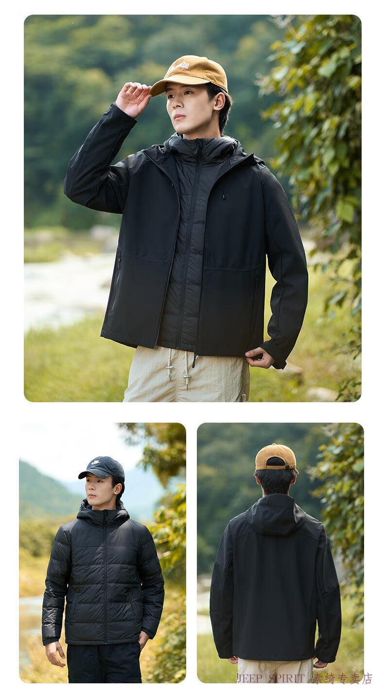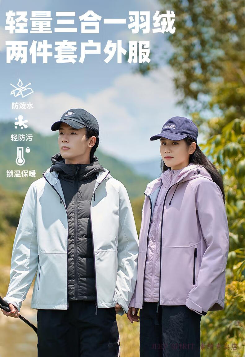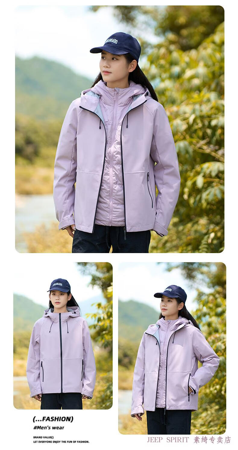 JEEP SPIRIT2025 Autumn and Winter Jacket Women's Three-in-One Jacket Men's Outdoor Windproof and Waterproof Cycling Fishing and Mountaineering Jacket Unisex Fleece - Glacier Gray XL