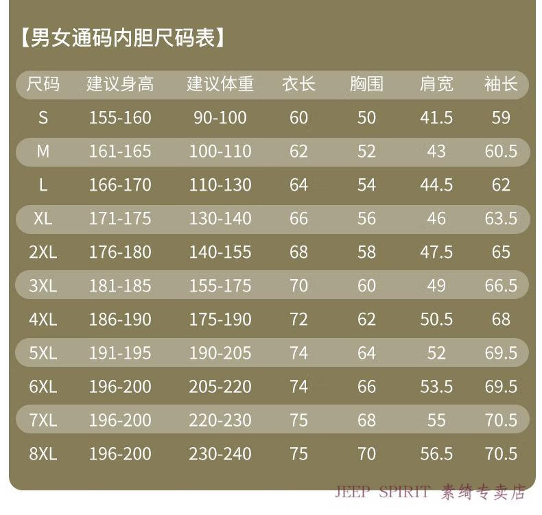 China (cm) 165 / 88-90 170 / 96-98 175 / 108-110 180 / 118-122 185 / 126-130