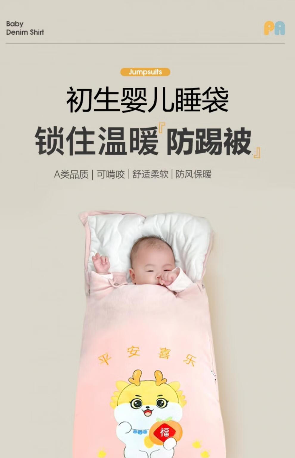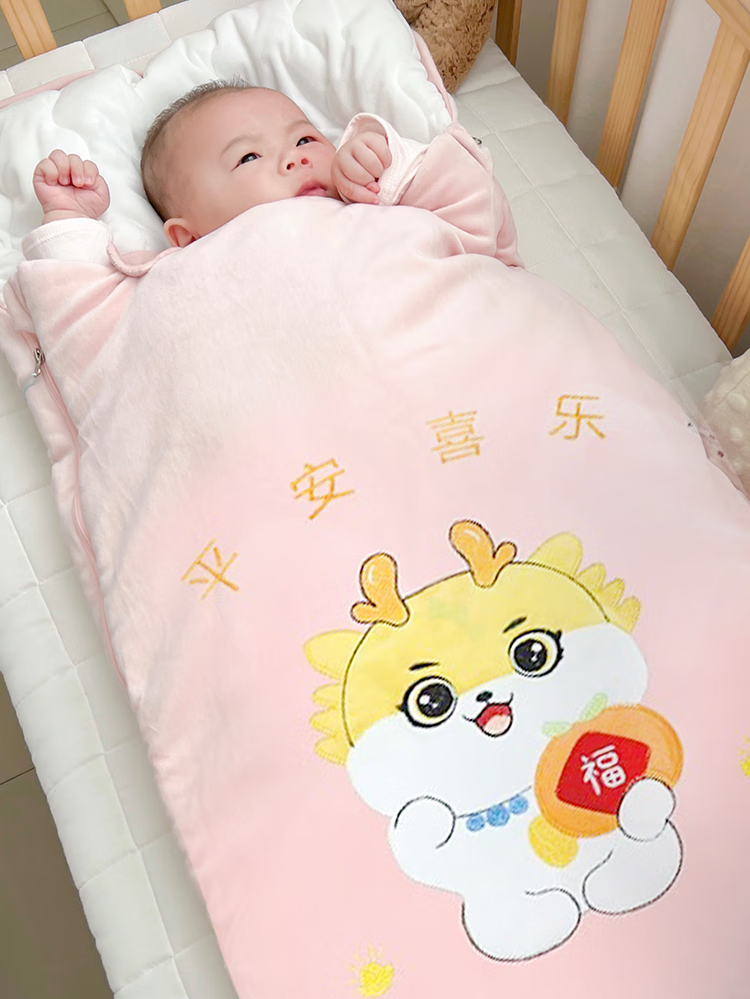 G.DUCKKIDS Little Yellow Duck Brand Series Baby Sleeping Bag Autumn and Winter Newborn Sleeping Bag Newborn Baby Bag Thickened Warm and Constant Temperature Sleeping Pink Gold Dragon Autumn and Winter Style Comfortable and Constant Temperature Recommended 13-25 Height 88x46 cm Suitable for 0-8 months