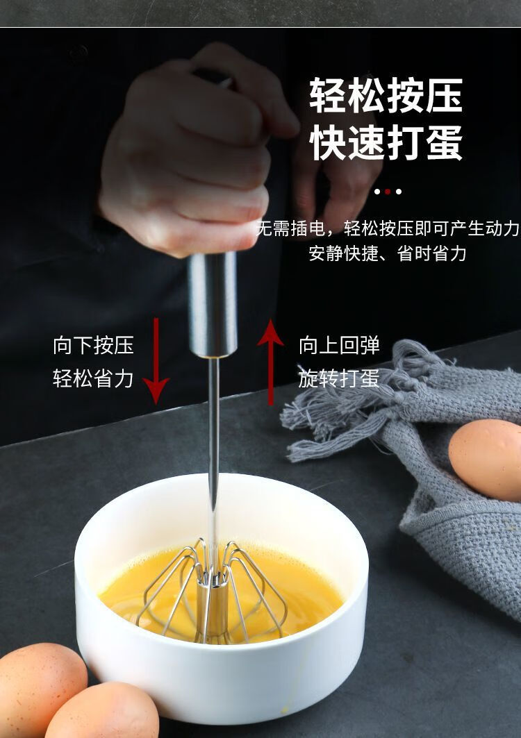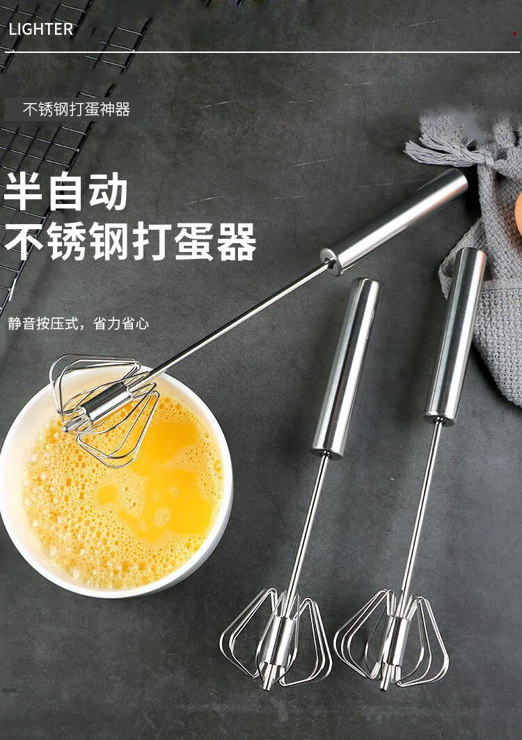 Stainless steel egg whisk egg whisk manual household cream whipping semi-automatic egg mixer kitchen baking press and rotate * reduce wrist pressure - large size 1