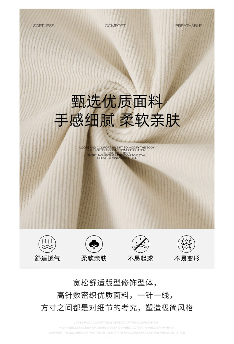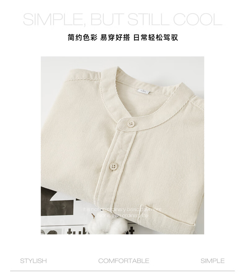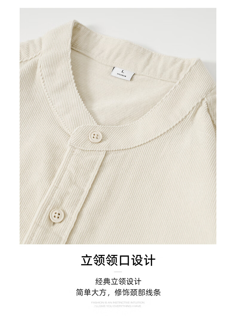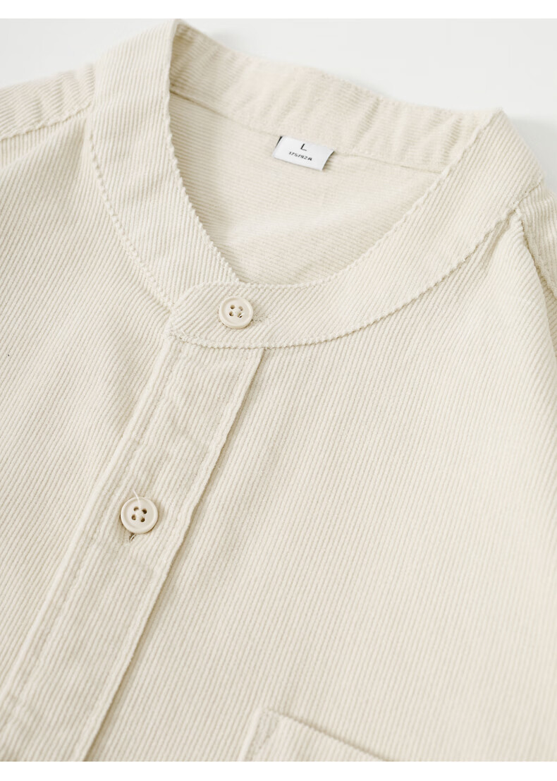 ROMON beige corduroy Henry collar pure cotton long-sleeved shirt for men spring and autumn simple commuting loose stand-up collar shirt for men beige L