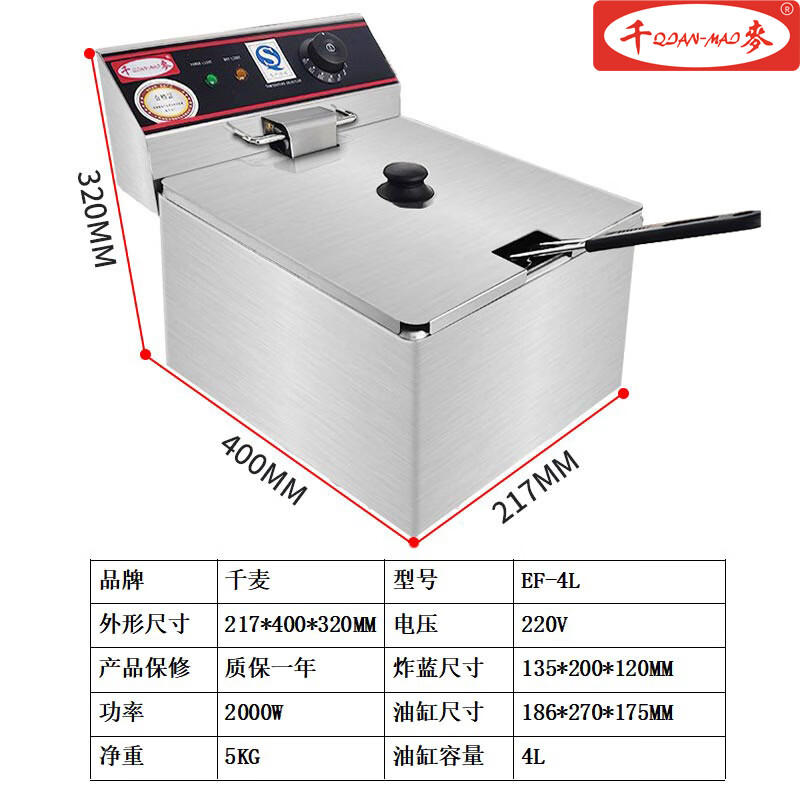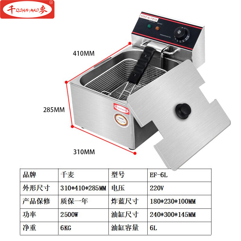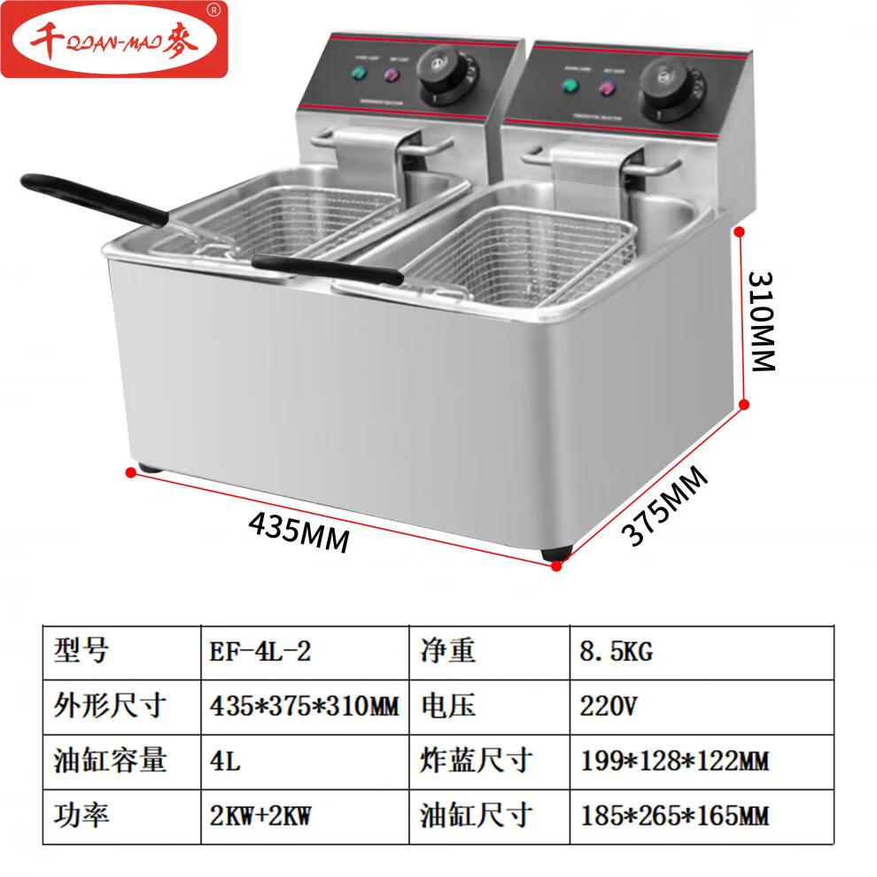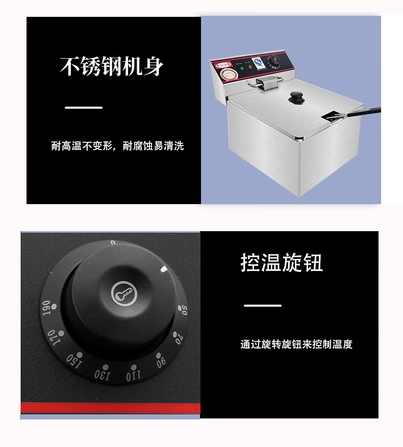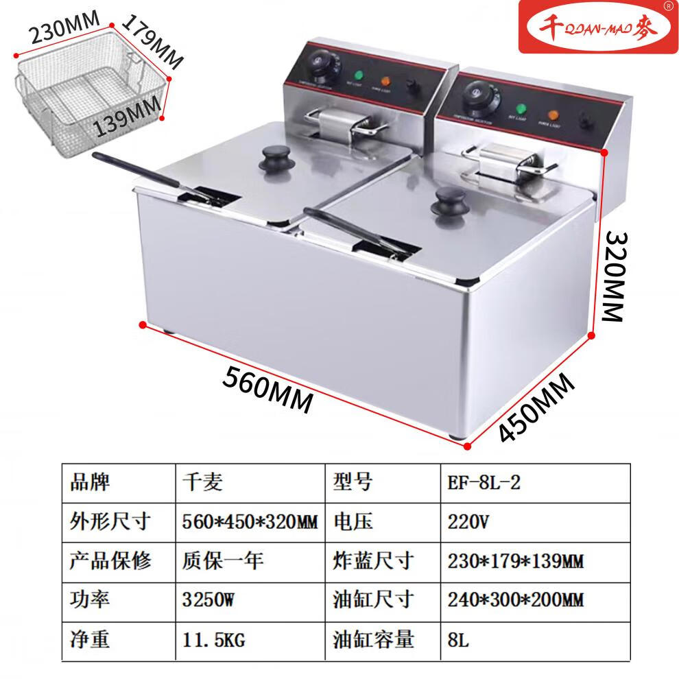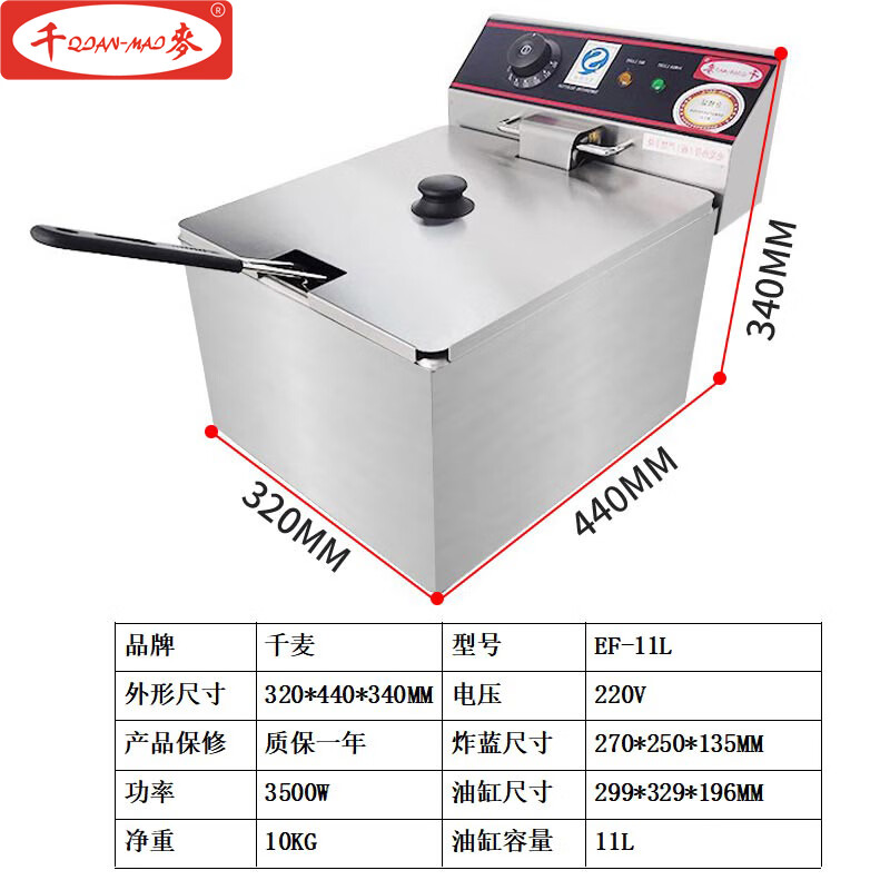 Electric fryer commercial JAST large capacity 6L 8L 11L single cylinder double cylinder desktop new Guangdong Hai fryer thousand wheat capacity EF-single cylinder single screen 1 inch 11L