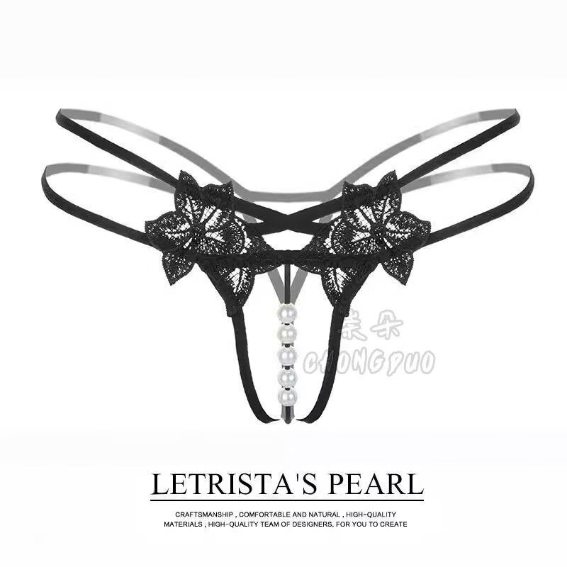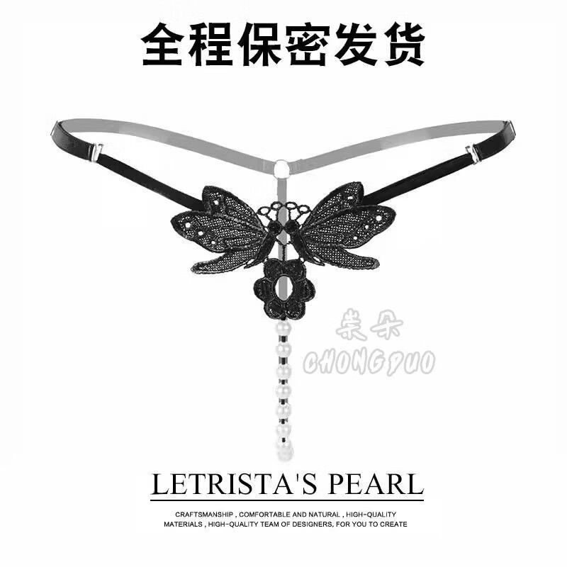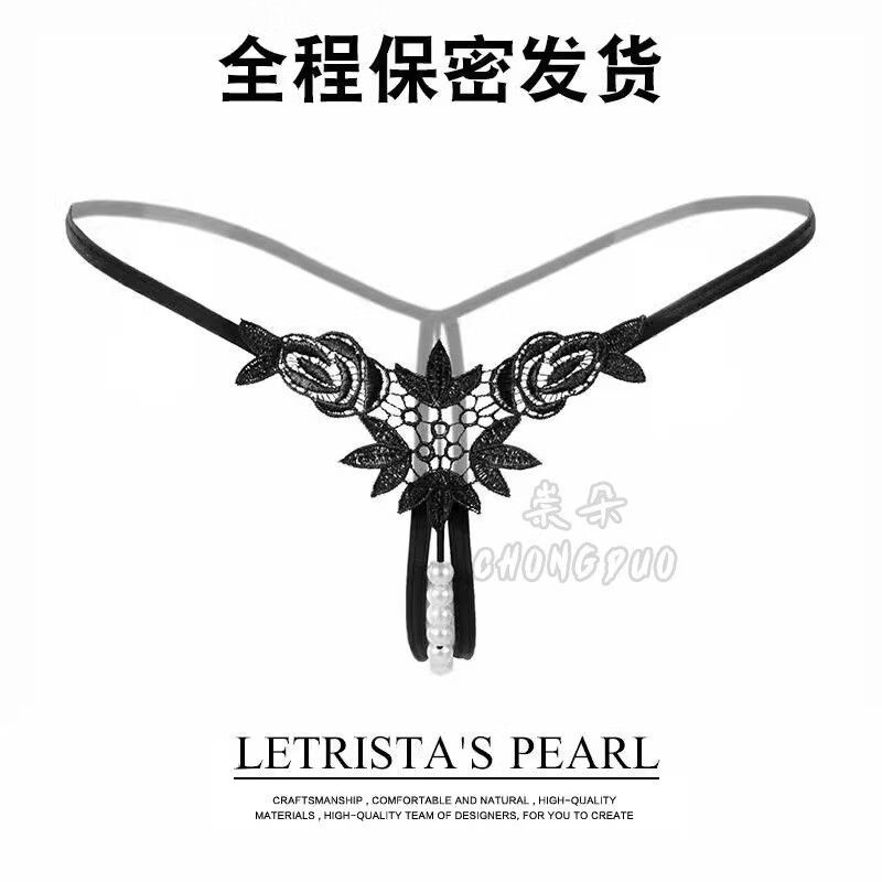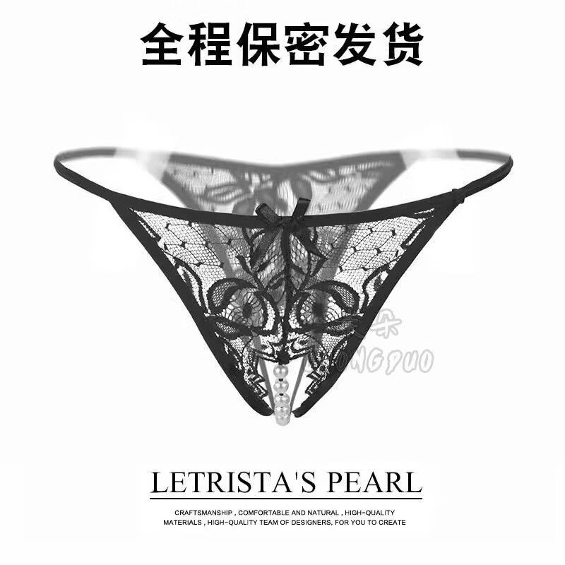Sexy lingerie, sexy underwear, women's thong, pearl flirting, open thong, double row black pearls, 12 pearls, diameter 1.6, one size fits all, recommended weight 80130Jin Jin equals 0.5kg