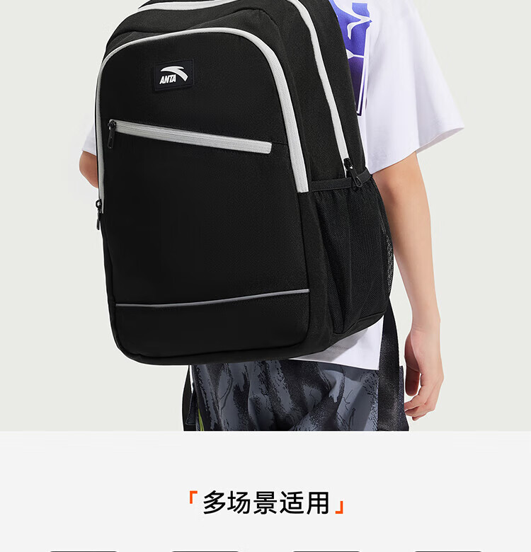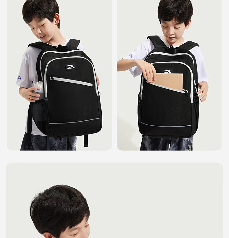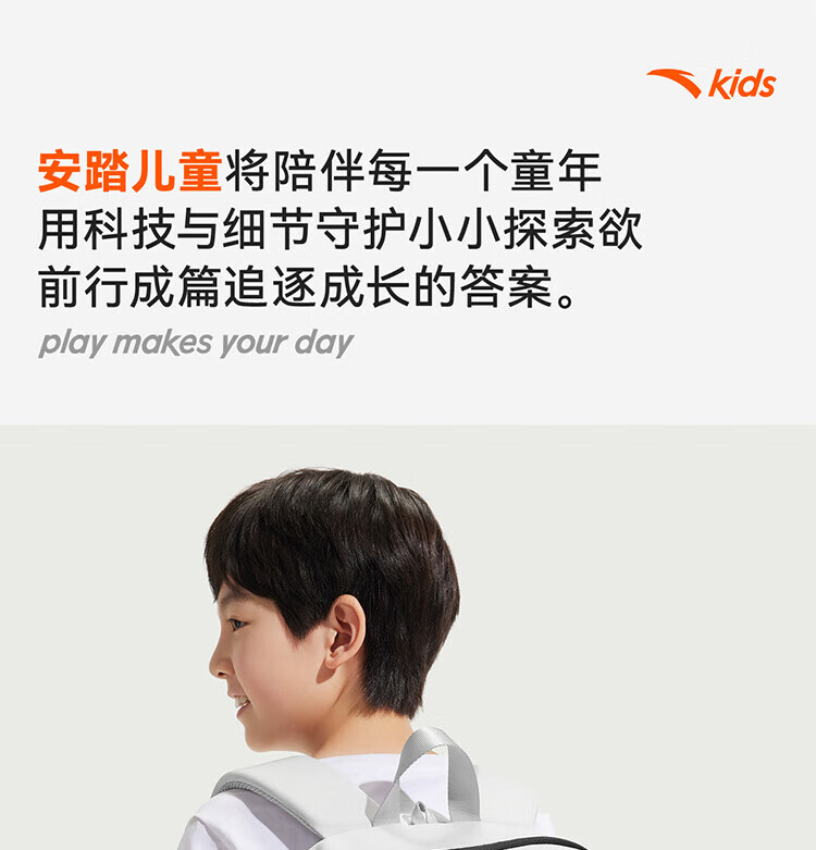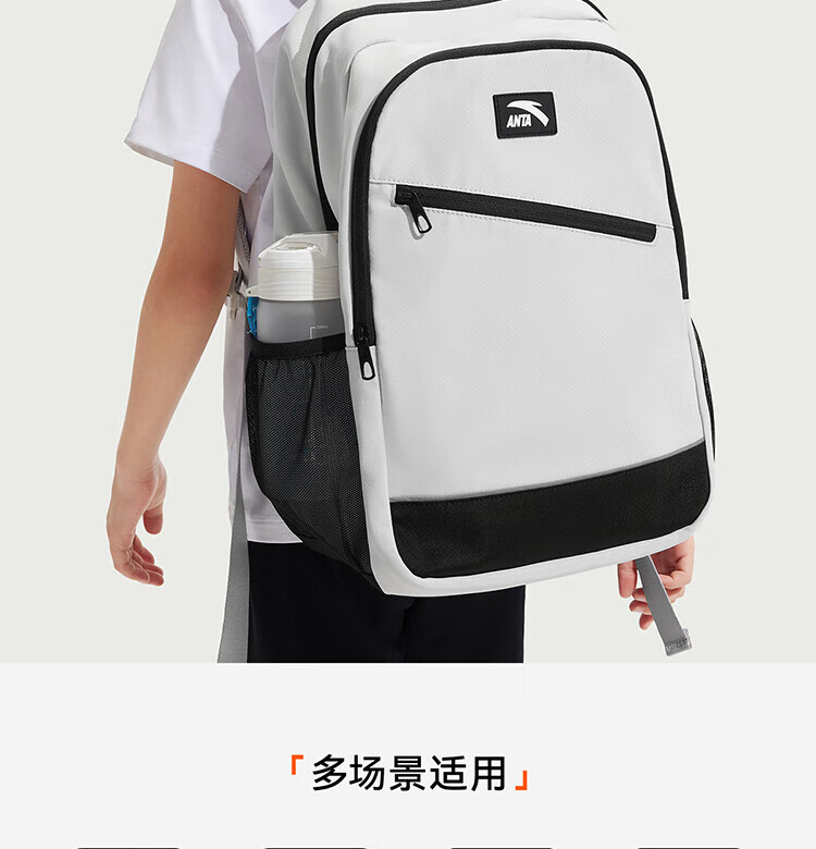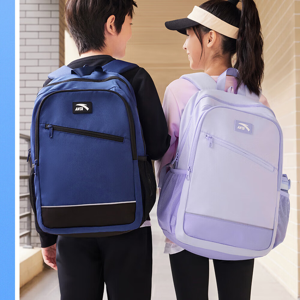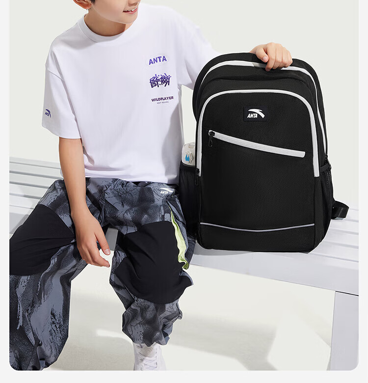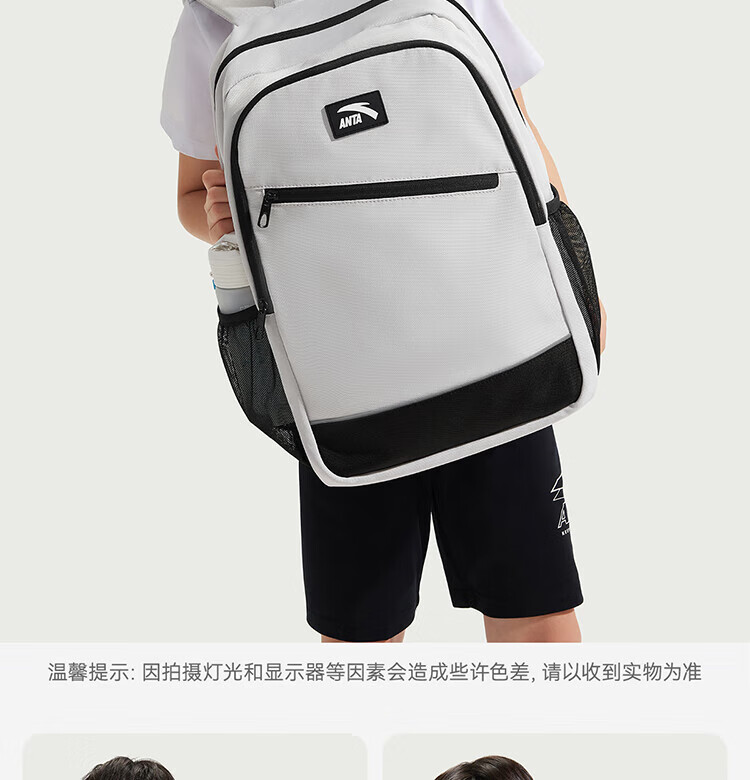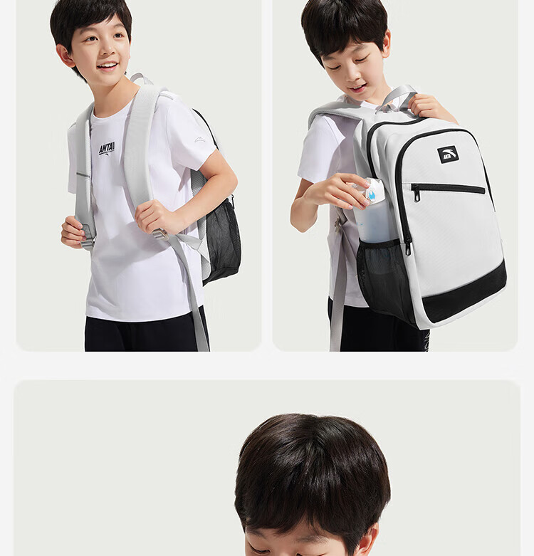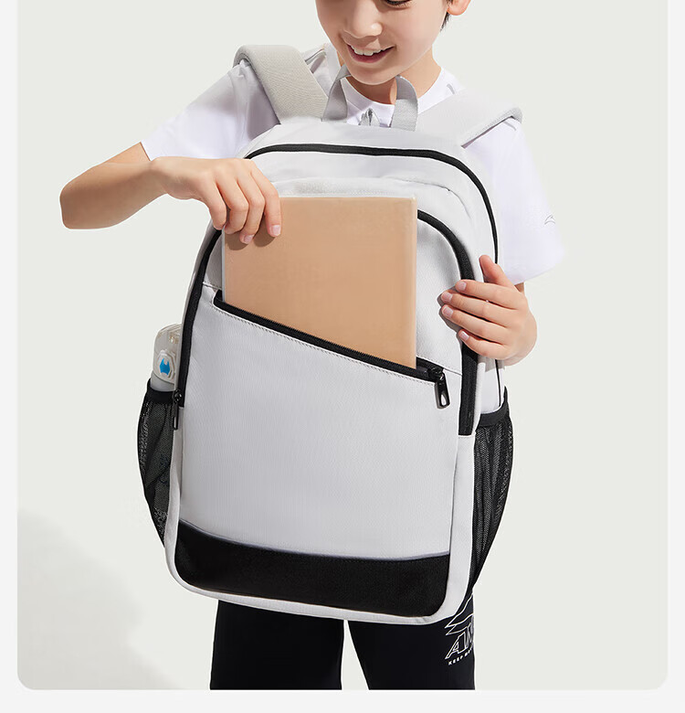 Anta Children's School Bag Lightweight Lifestyle Series for Boys and Girls, Balanced Decompression Campus Backpack for Primary and Secondary School Students Waterproof Gray-2 One Size 45*18.5*30cm, Weight Approximately 510 Grams