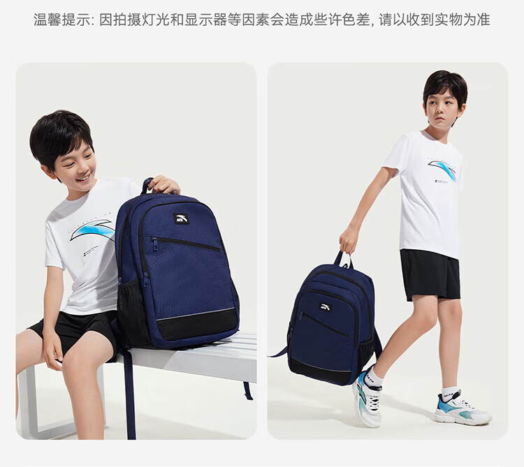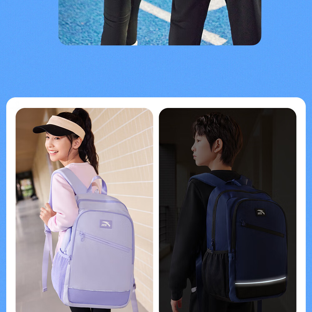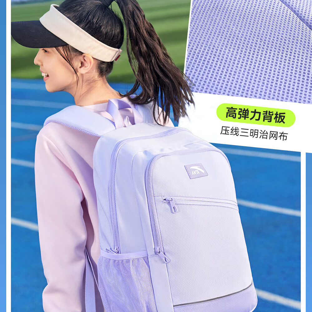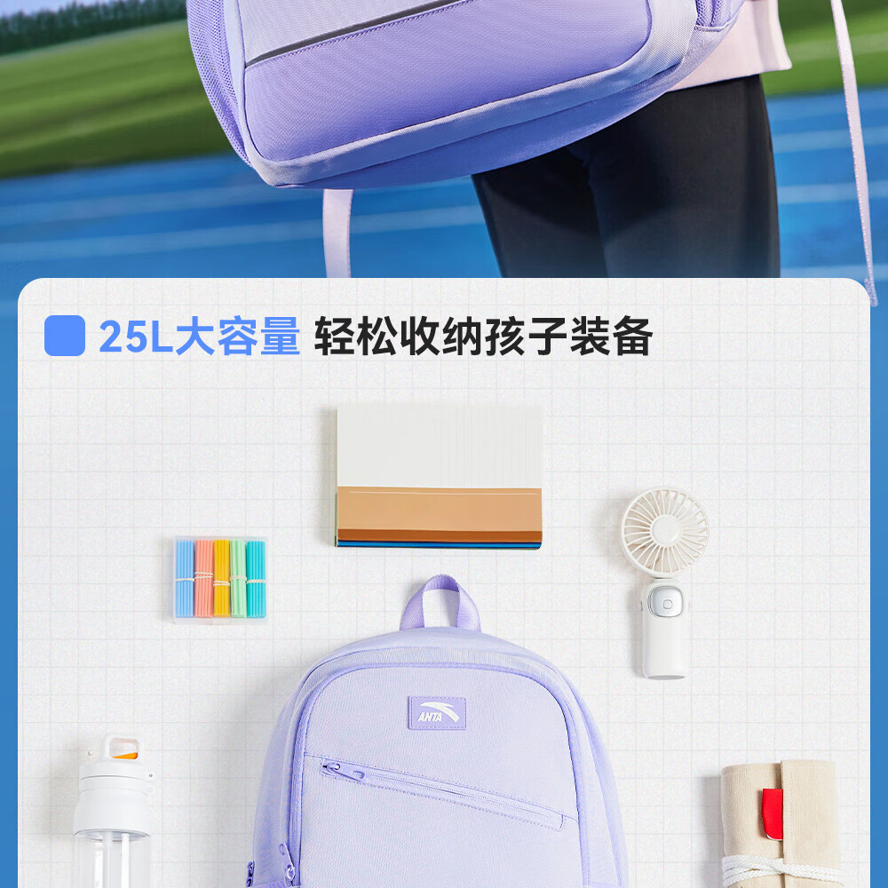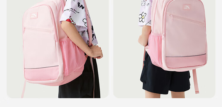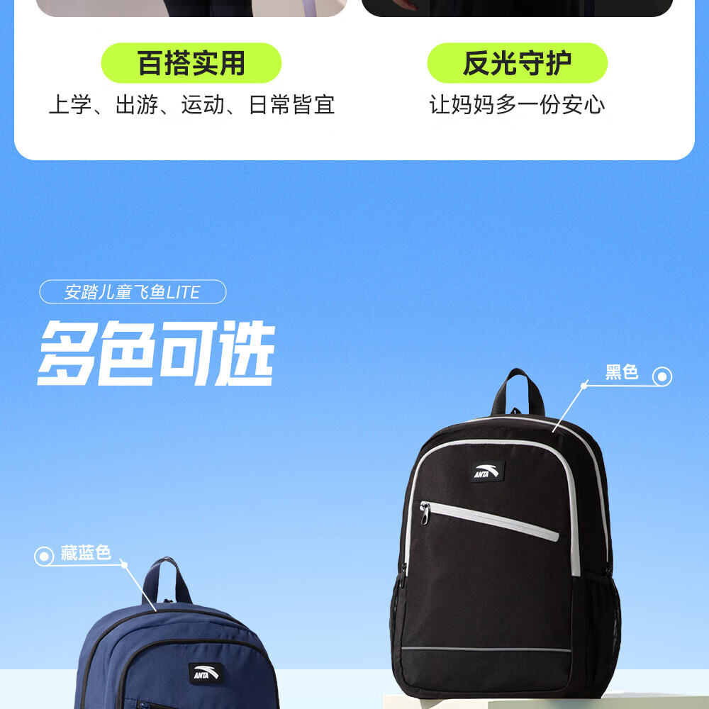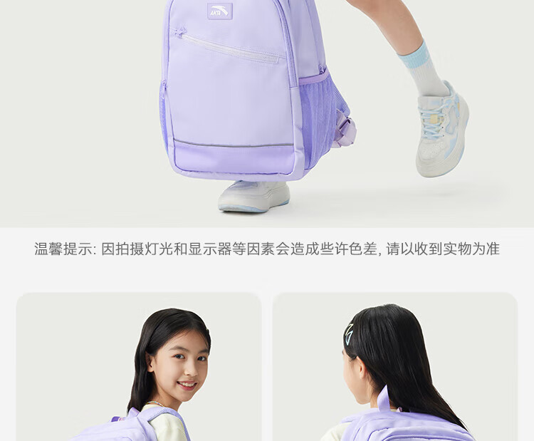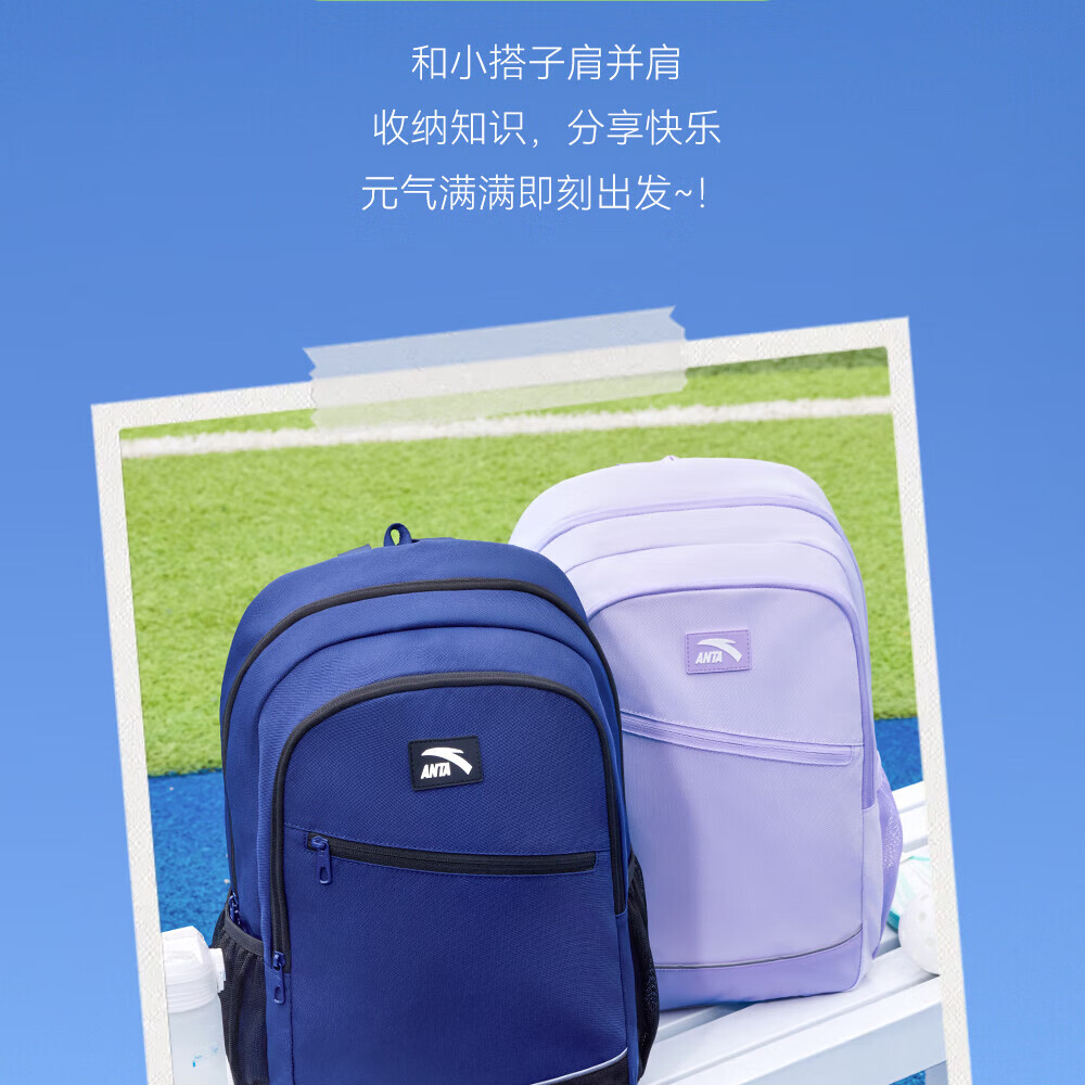 Anta Children's School Bag Lightweight Lifestyle Series for Boys and Girls, Balanced Decompression Campus Backpack for Primary and Secondary School Students Waterproof Gray-2 One Size 45*18.5*30cm, Weight Approximately 510 Grams