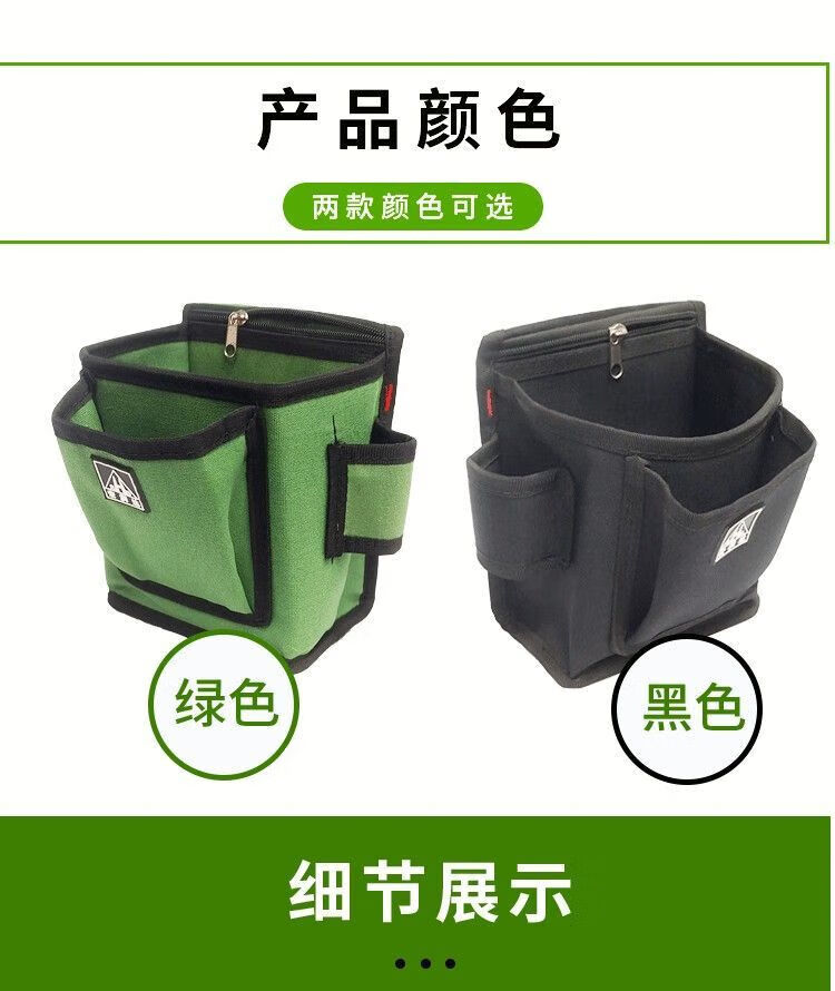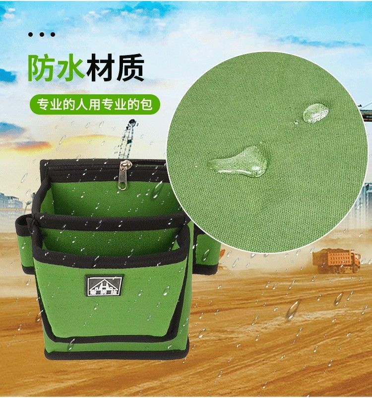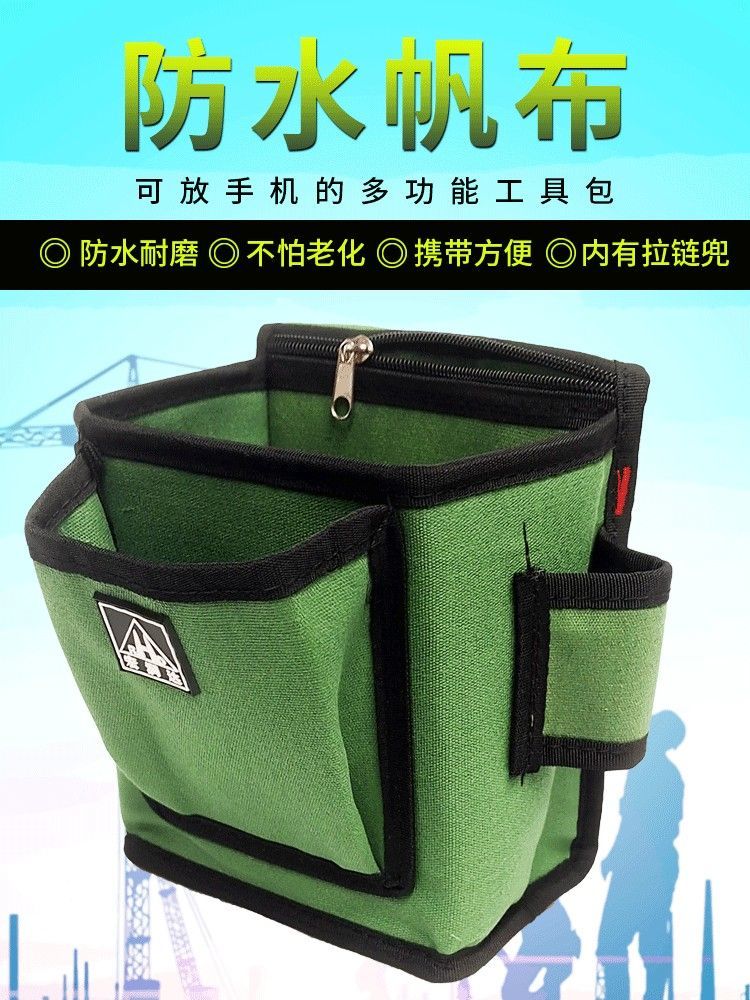 Milan thickened canvas tool bag carpentry nail pocket iron nail carpentry multifunctional waist bag carpentry nail pocket wear-resistant nail box F311 (green) metal head belt