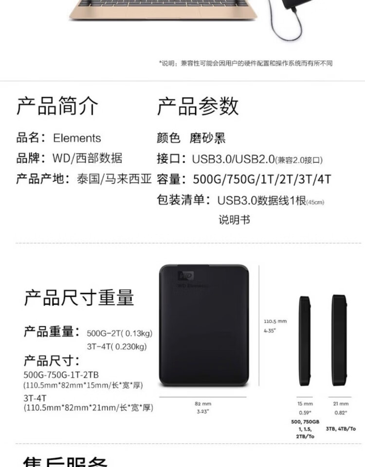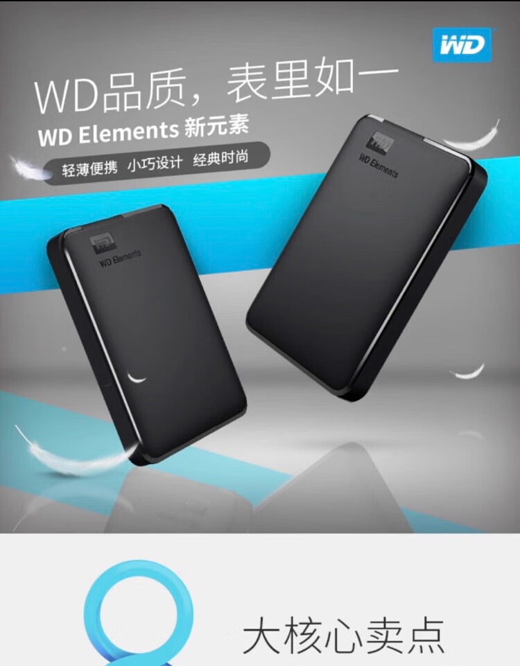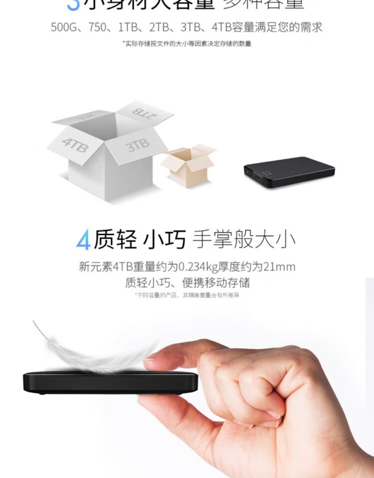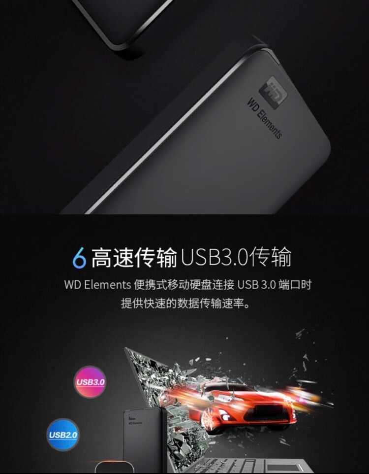 Western Digital WD Western Digital mobile hard drive 1T/2T/500G new element high-speed usb3.0 external mobile phone computer universal black three-year warranty + invoice can be issued 2TB