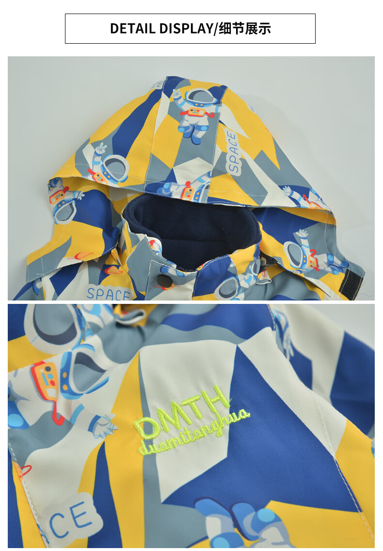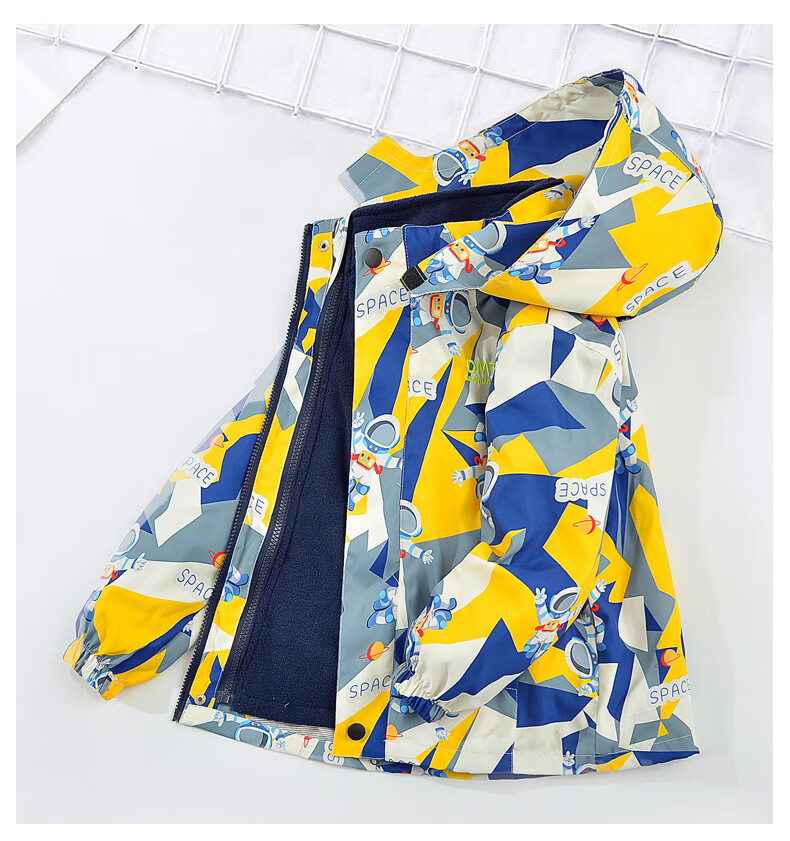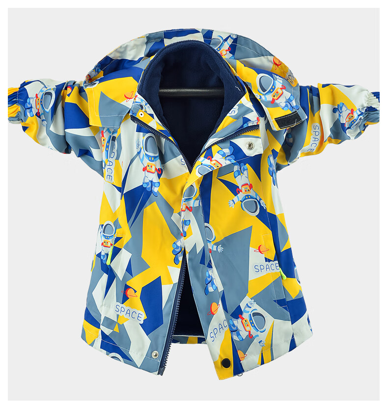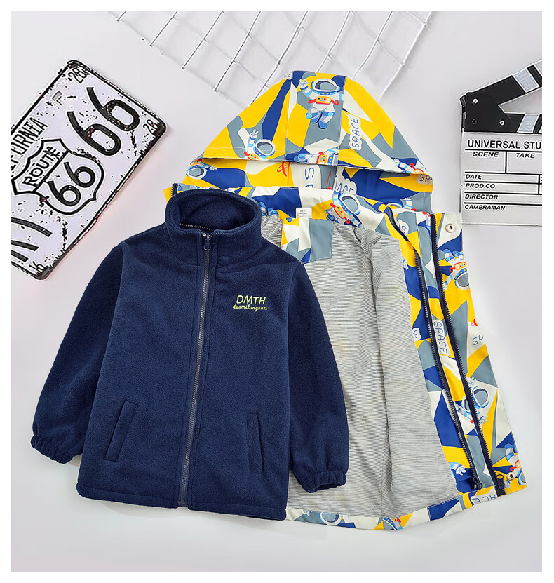 Duomi Fairy Tale Boys' Windbreaker Children's Spring and Autumn New Winter Jacket Three-in-One Removable Windproof Jacket for Big Children Yellow 120
