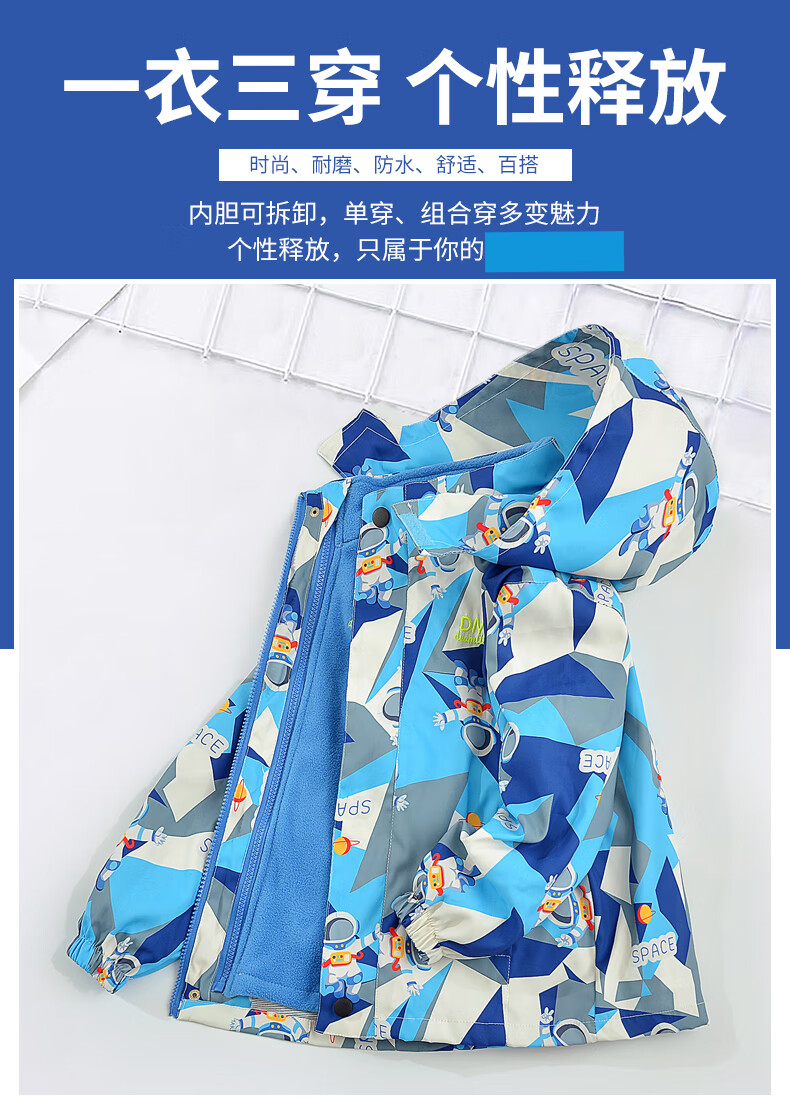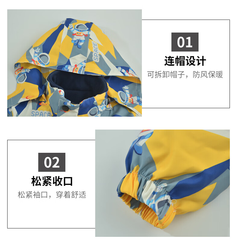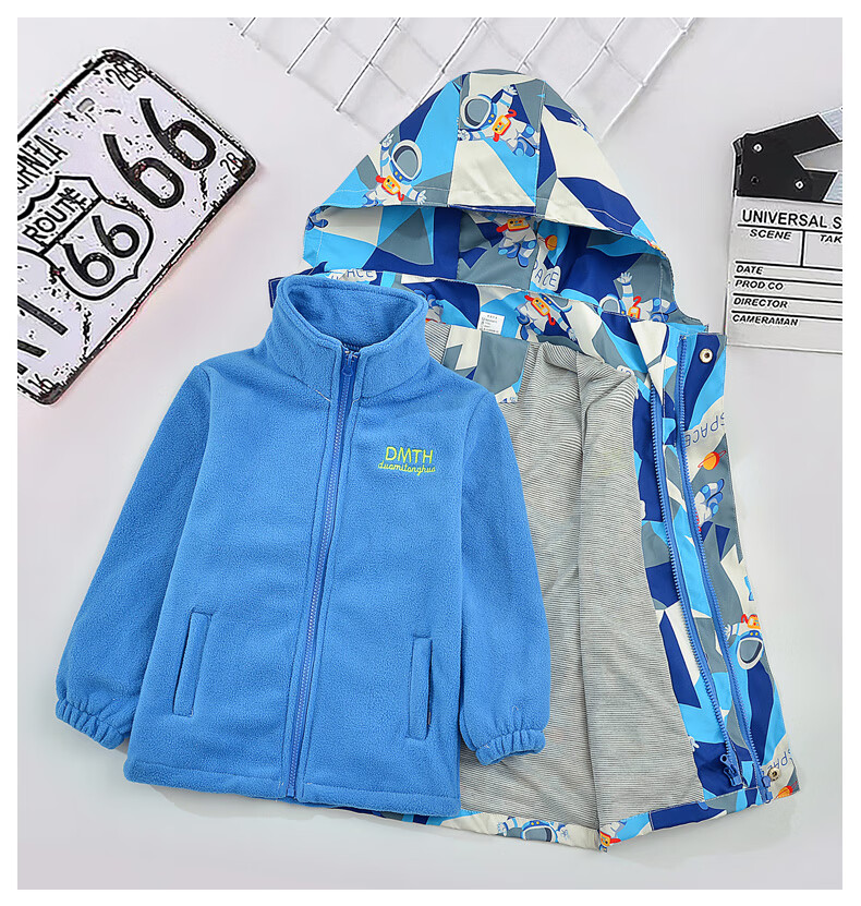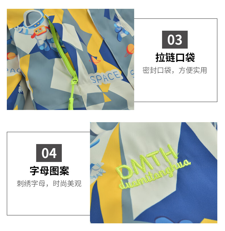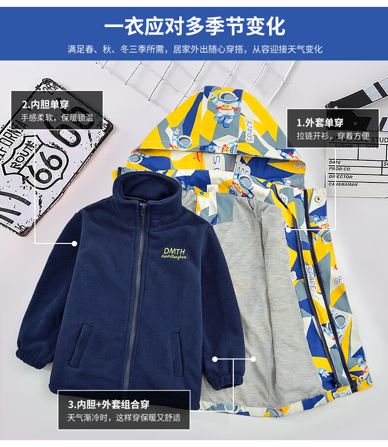 Duomi Fairy Tale Boys' Windbreaker Children's Spring and Autumn New Winter Jacket Three-in-One Removable Windproof Jacket for Big Children Yellow 120