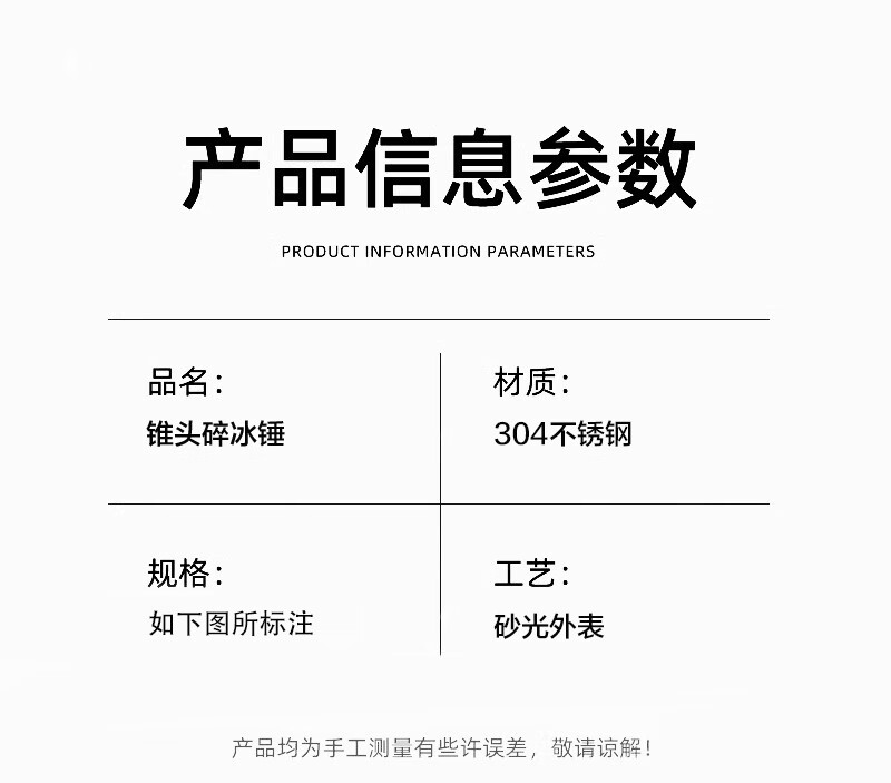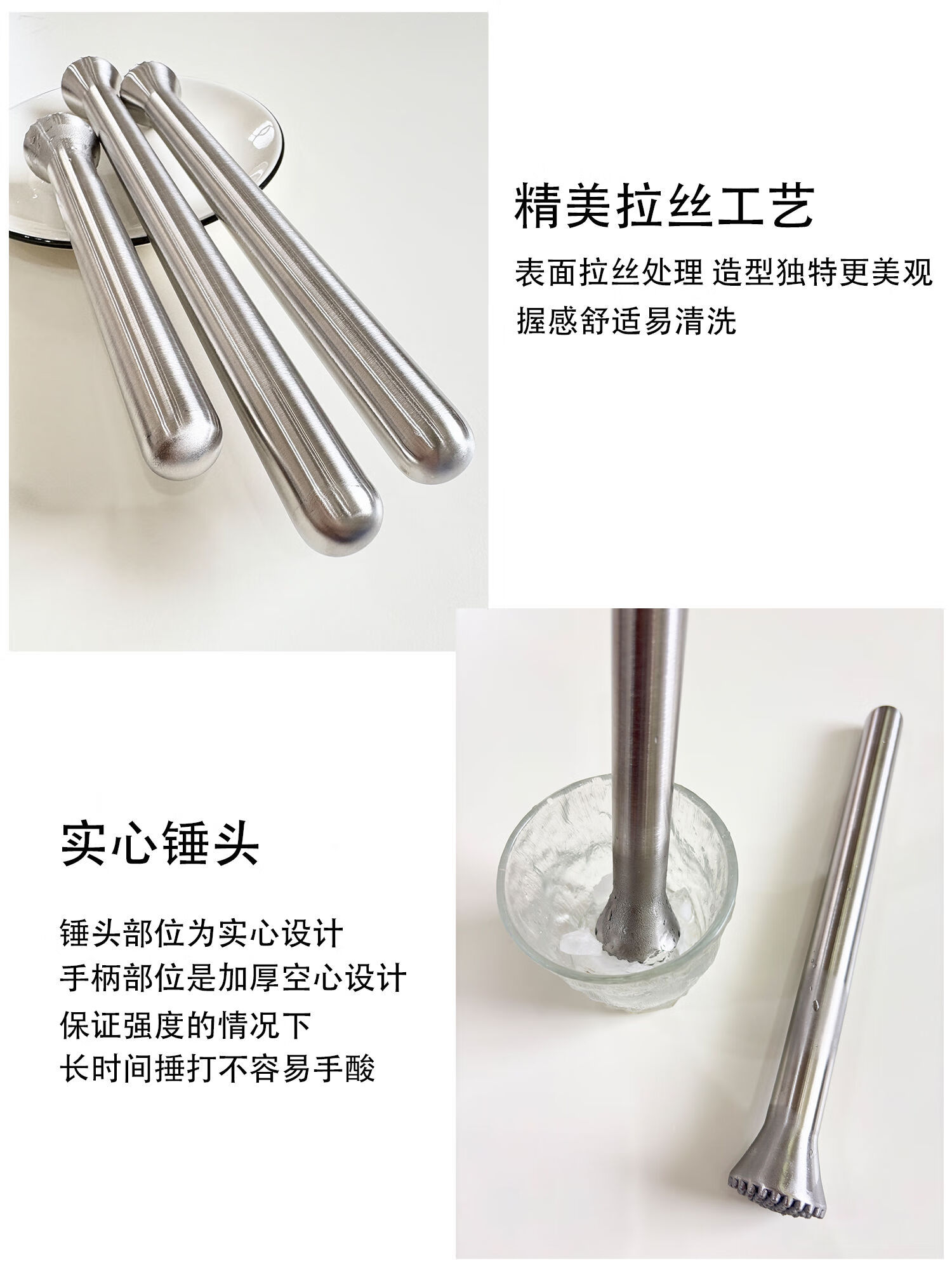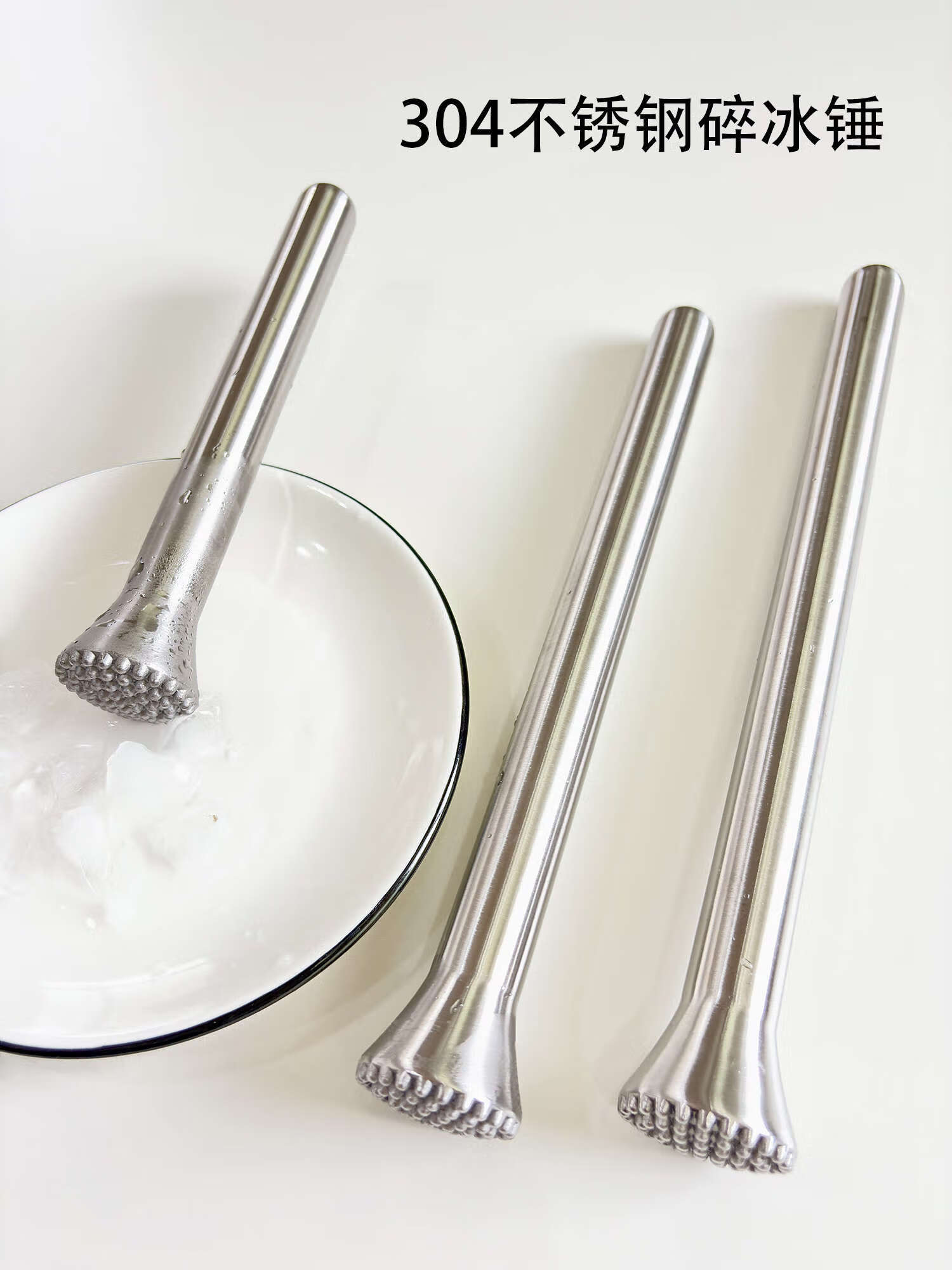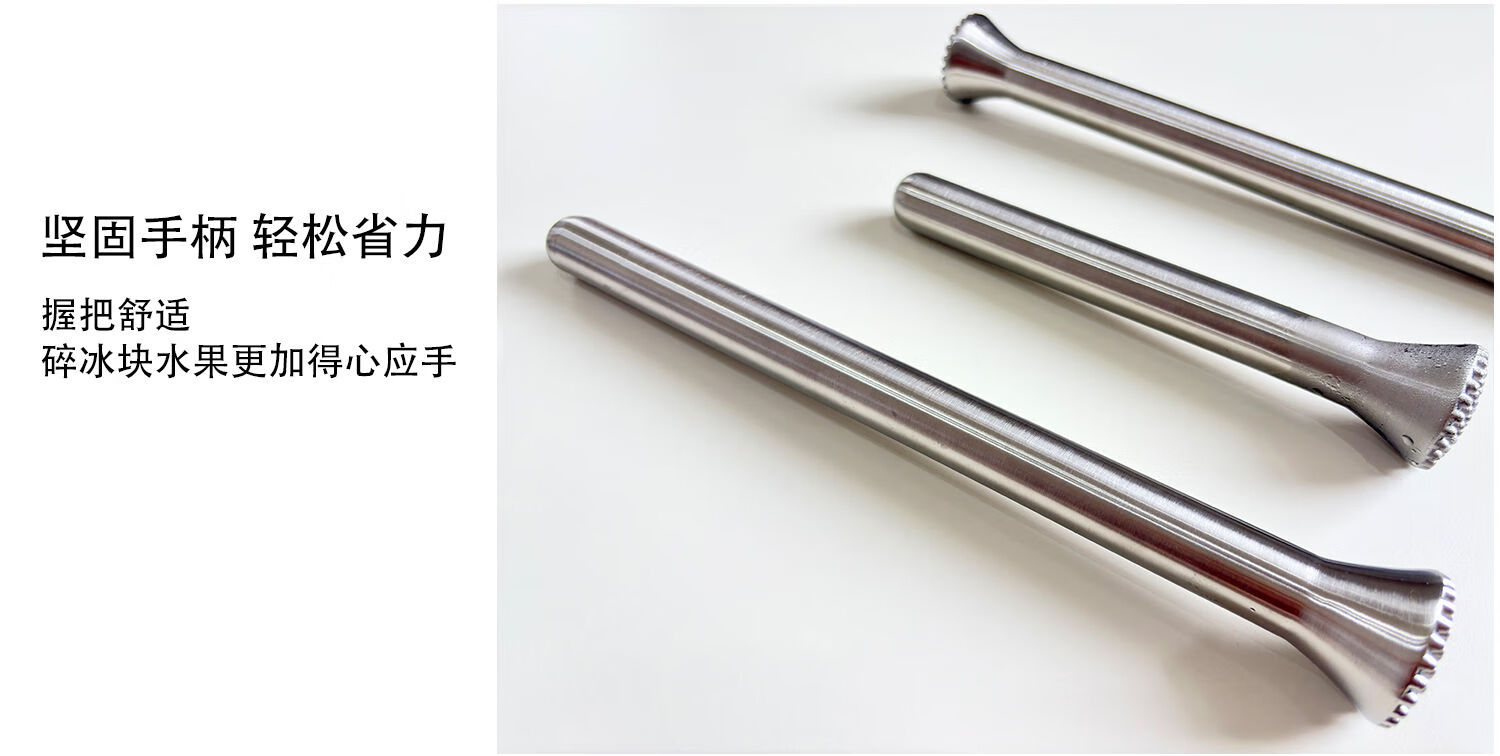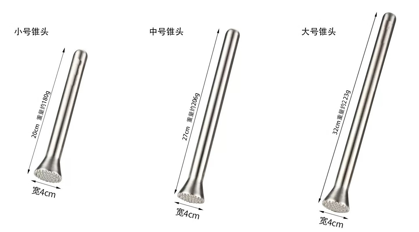 厨安宝304不锈钢碎冰棒强力手打柠檬茶奶茶店打冰锤水果捣汁棒调酒工具 大号锥头碎冰棒 304不锈钢