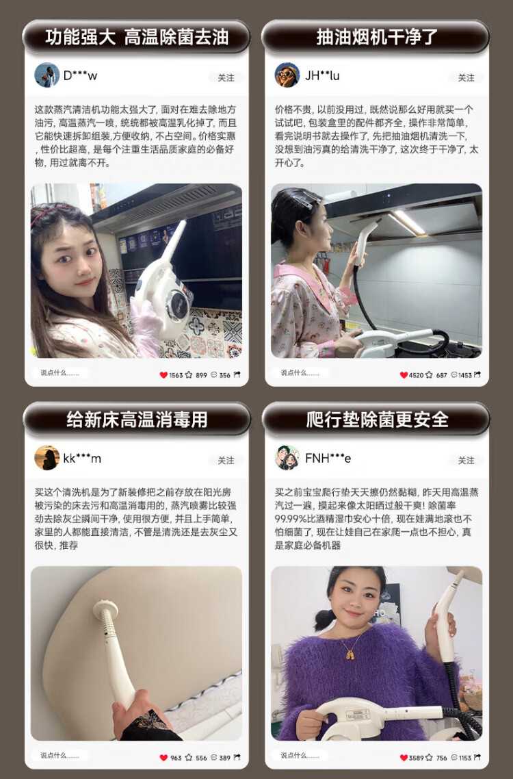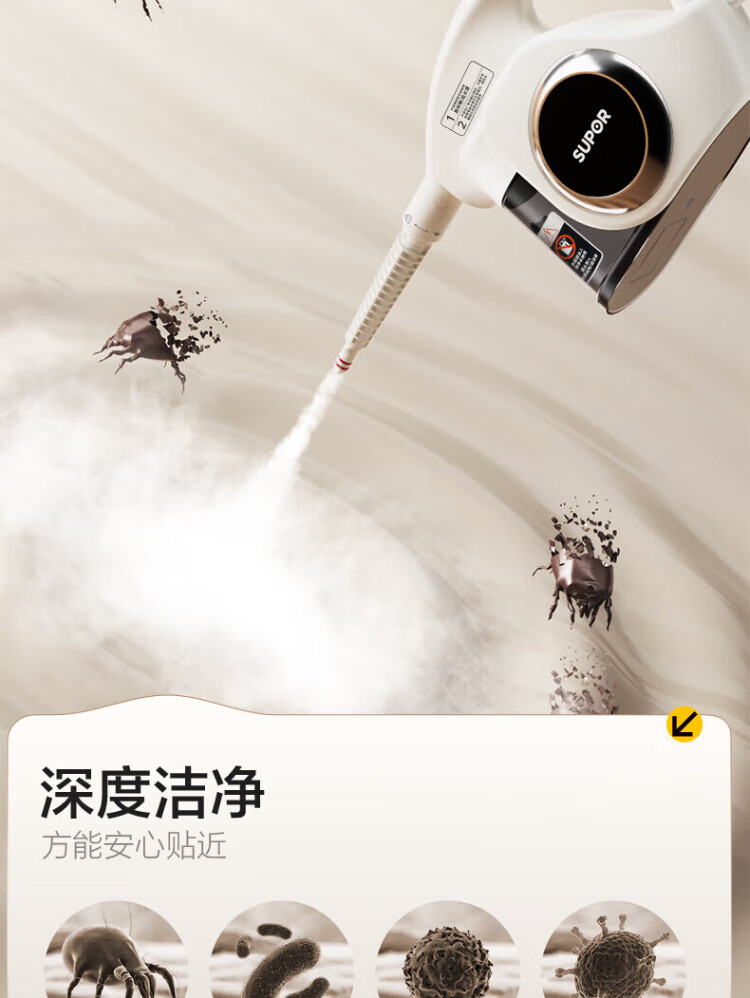Supor Steam Cleaner Official Genuine Household Portable High Temperature and High Pressure Oil Degreasing and Sterilization Kitchen Range Hood Air Conditioner Housekeeping Multifunctional Whole House Cleaner-A Newly Upgraded Smart Model Six-speed High-Temperature Cleaning Steam Engine + 2 Bottles of Oil Cleaner