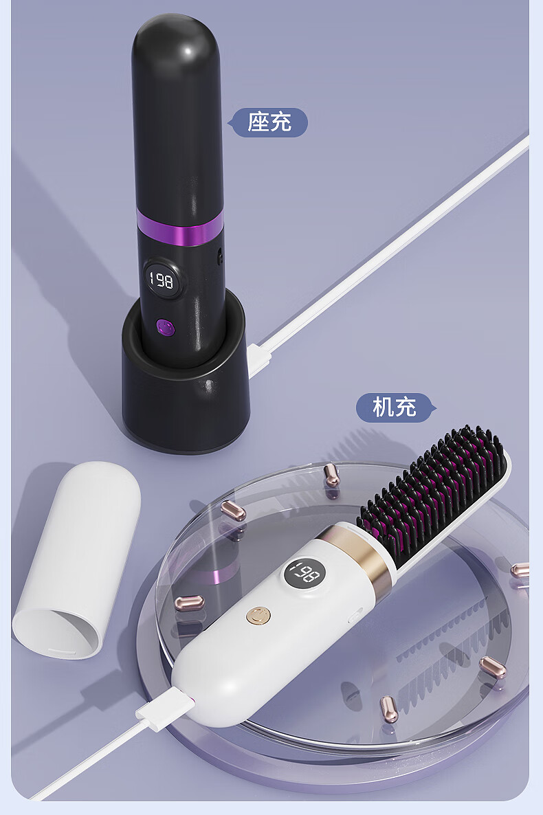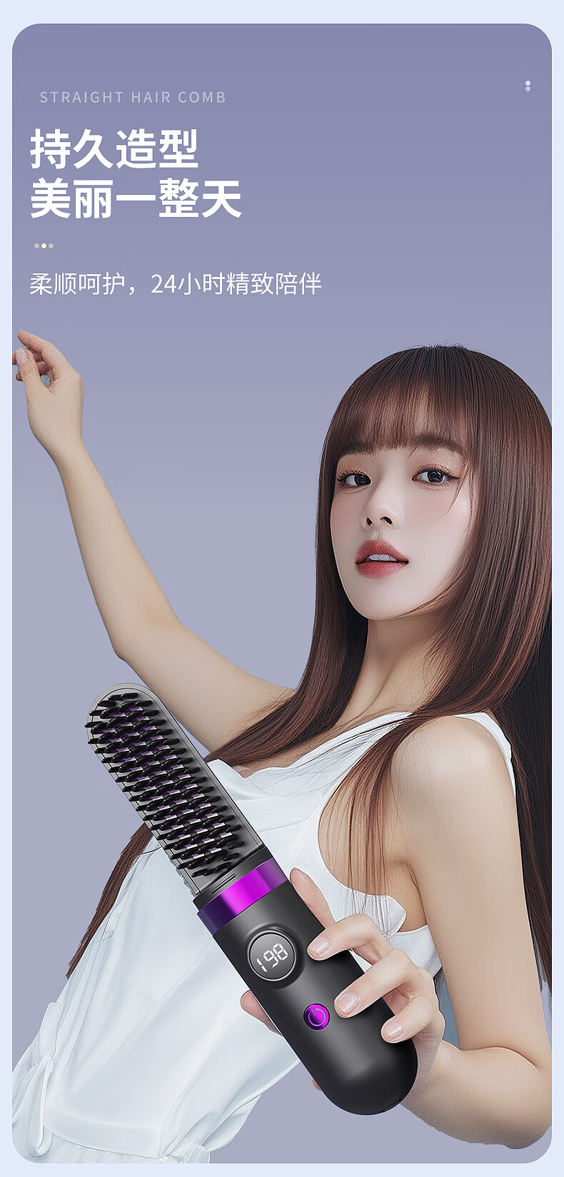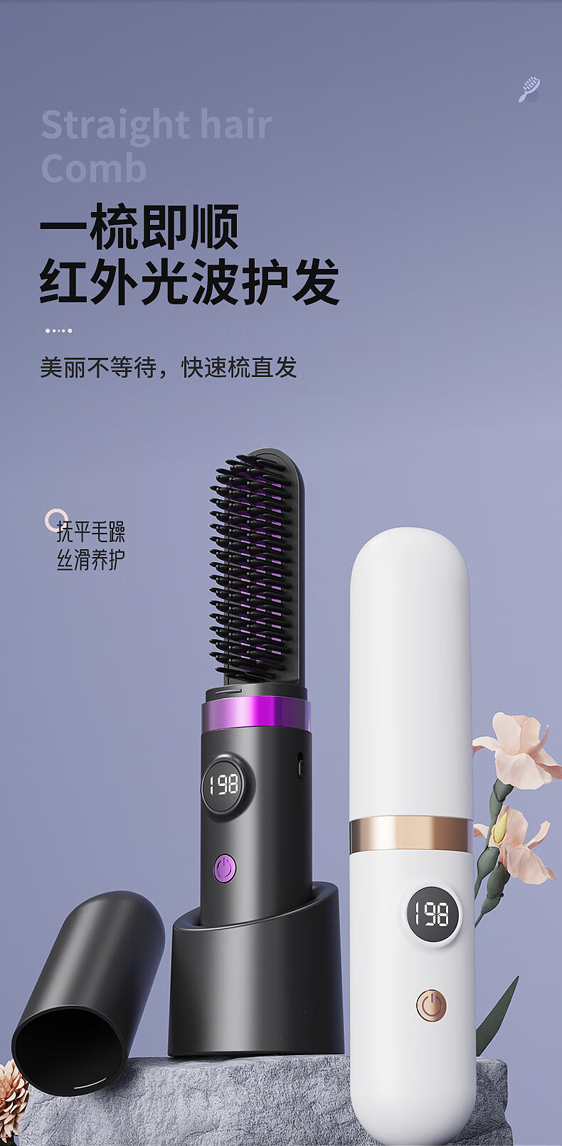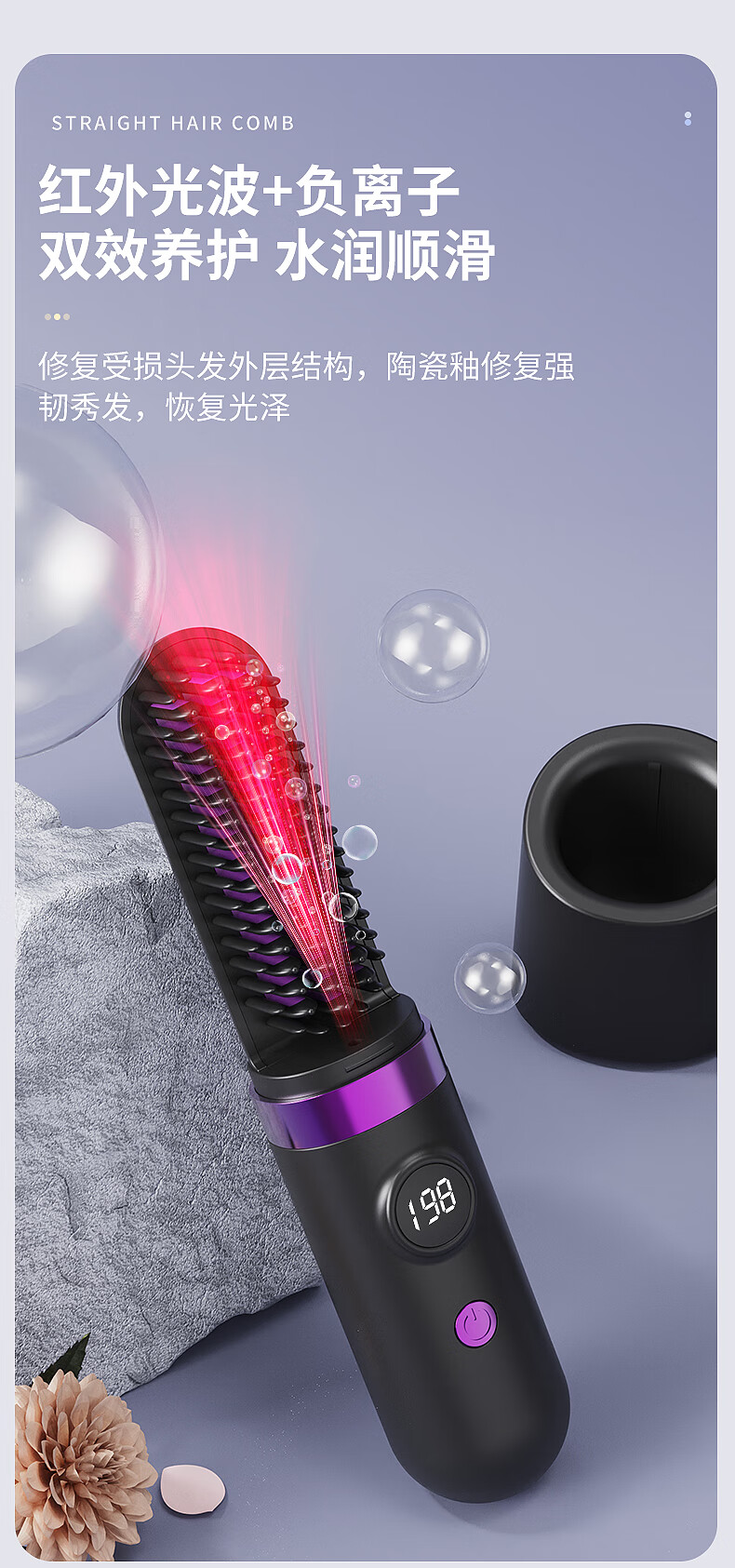 Cordless hair straightening comb Dyson's same model does not hurt negative ions mini portable dual-use fluffy artifact curly hair lazy man's splint electric comb upgraded model capsule anti-scalding + second-speed adjustment