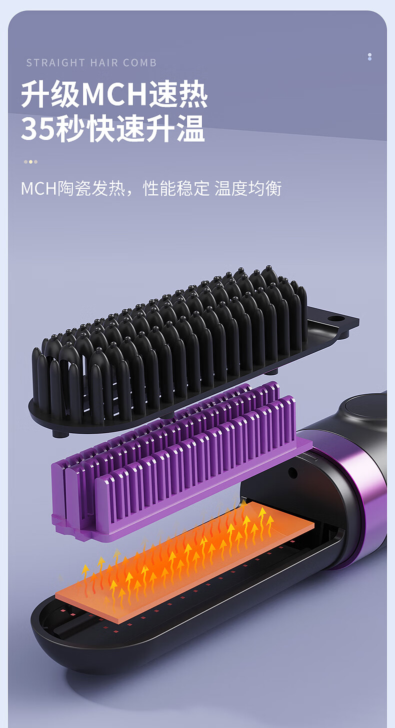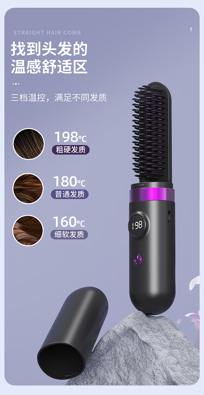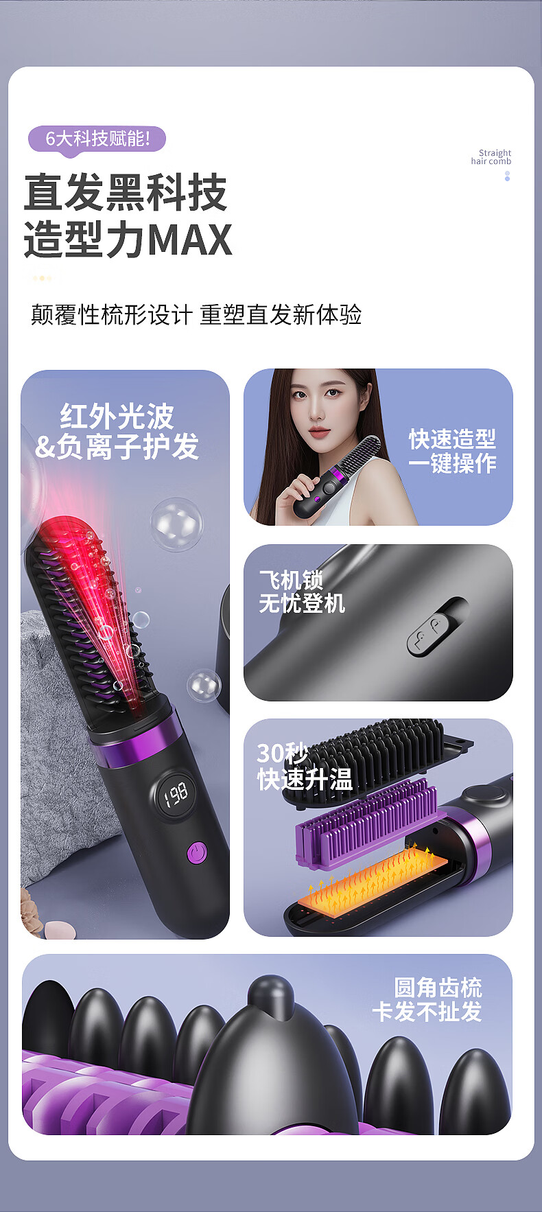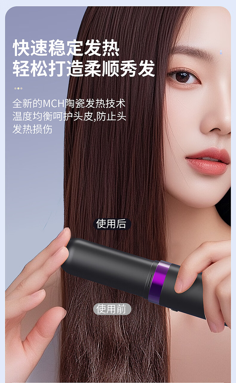 Cordless hair straightening comb Dyson's same model does not hurt negative ions mini portable dual-use fluffy artifact curly hair lazy man's splint electric comb upgraded model capsule anti-scalding + second-speed adjustment