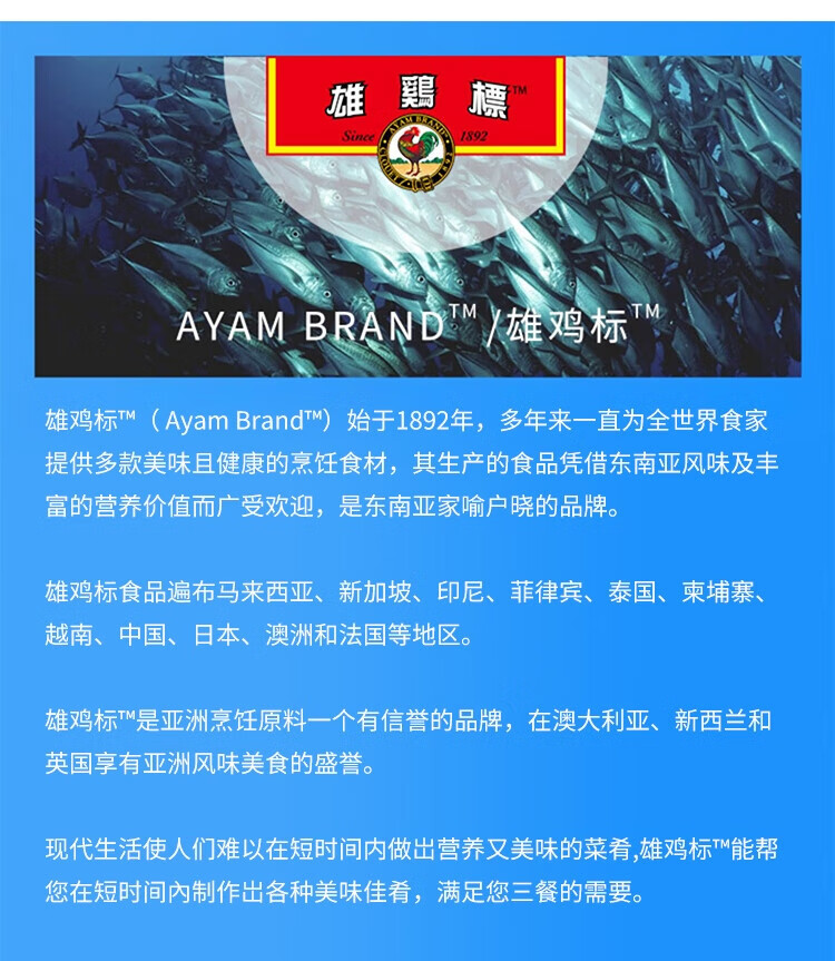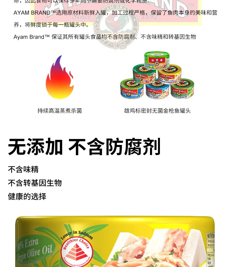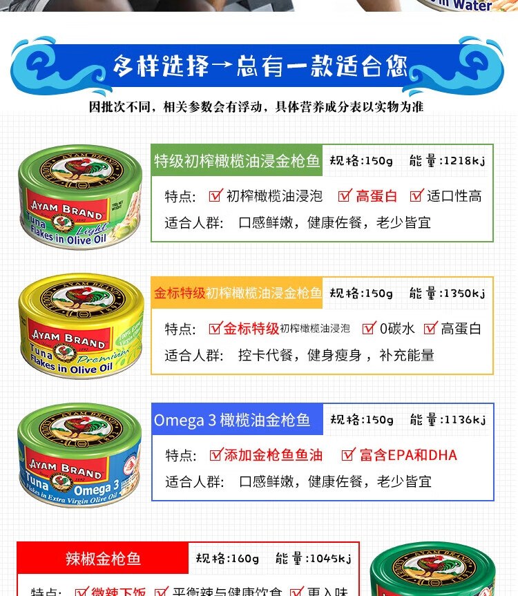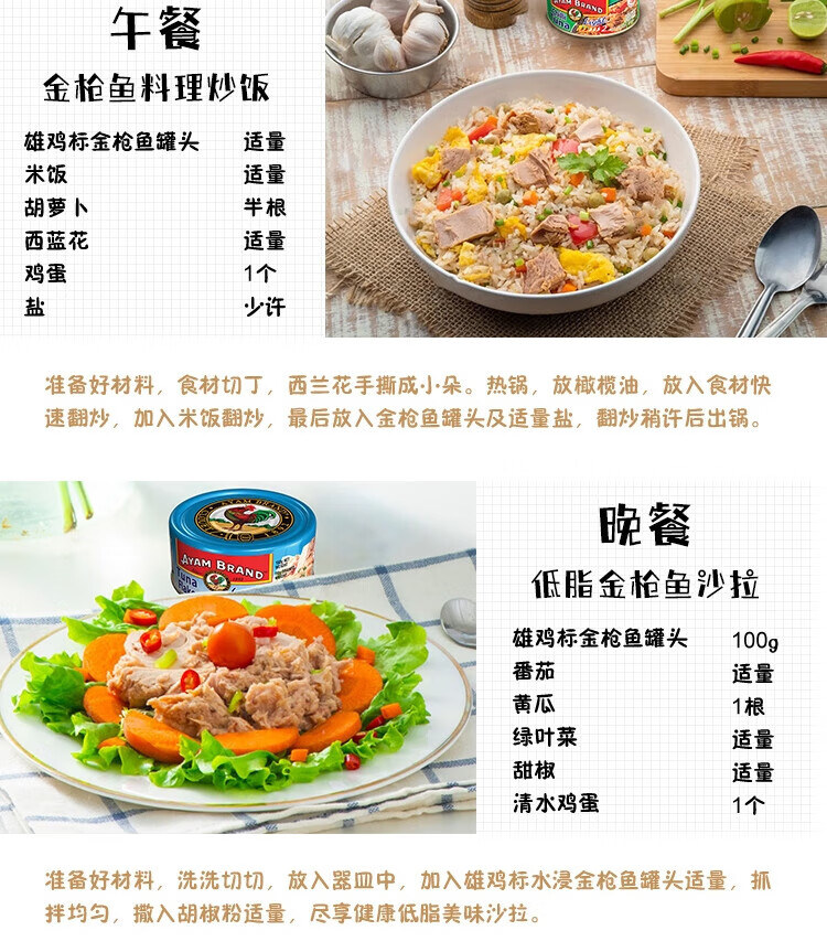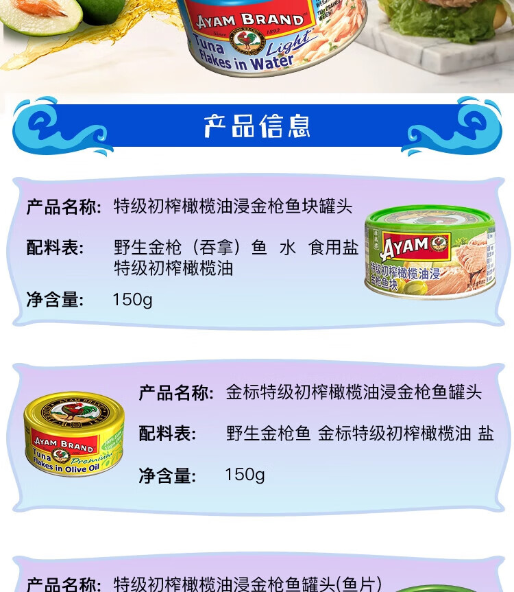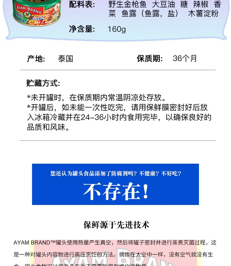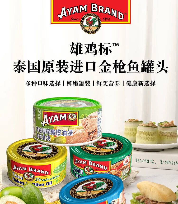 AYAM BRAND Thai original imported water-soaked yellowfin tuna can 150g convenient instant canned low-fat fitness portable meal water-soaked canned tuna
