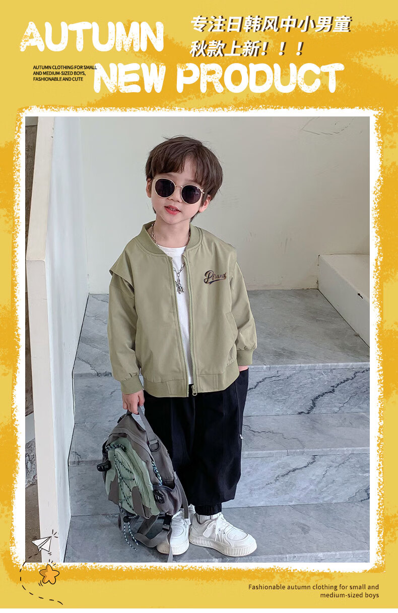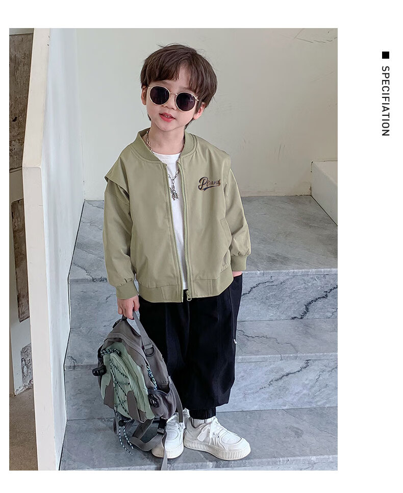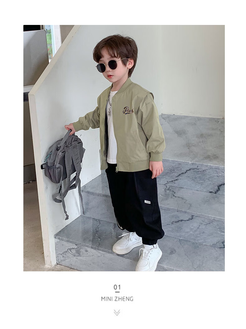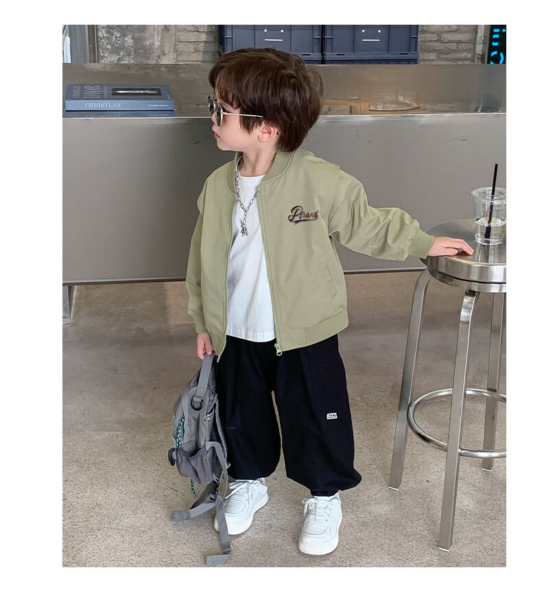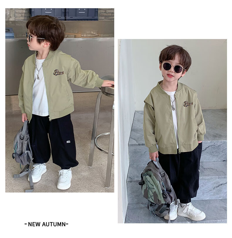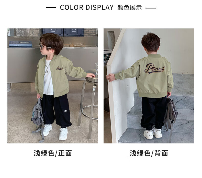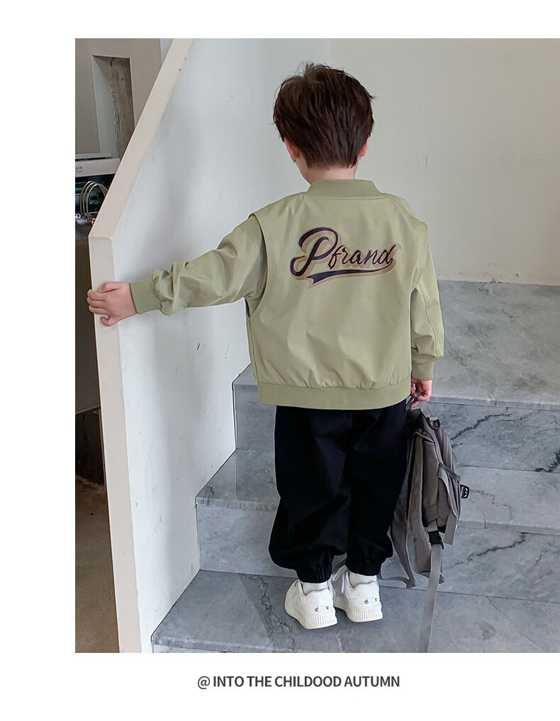 Boys' baseball uniform jacket spring and autumn 2025 new early spring children's clothing fashionable autumn jacket handsome top light green 120