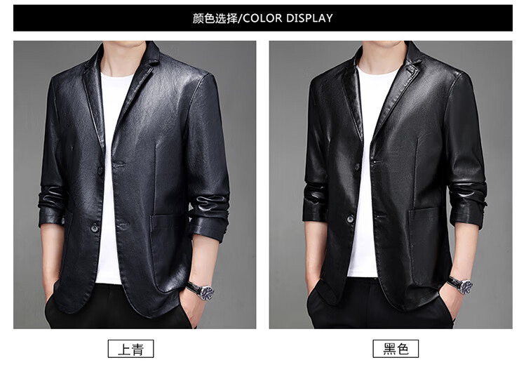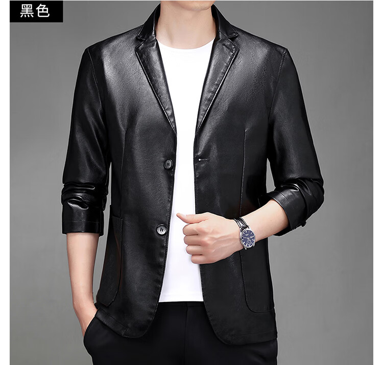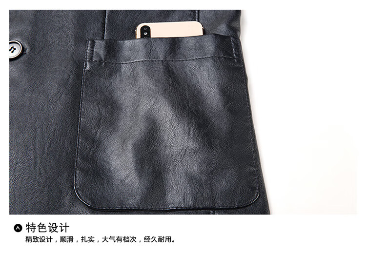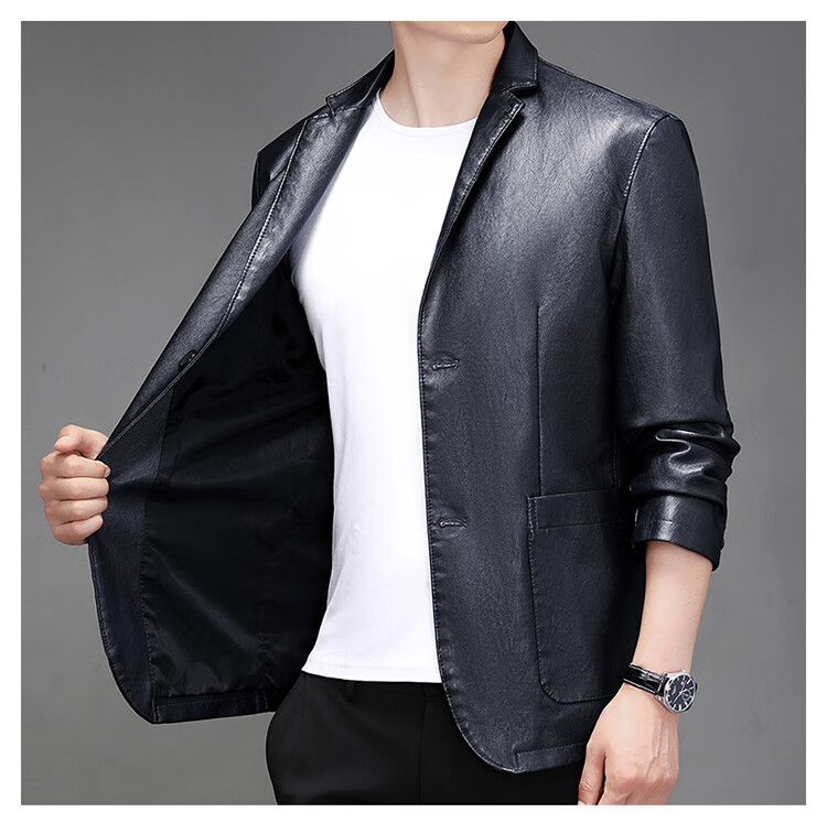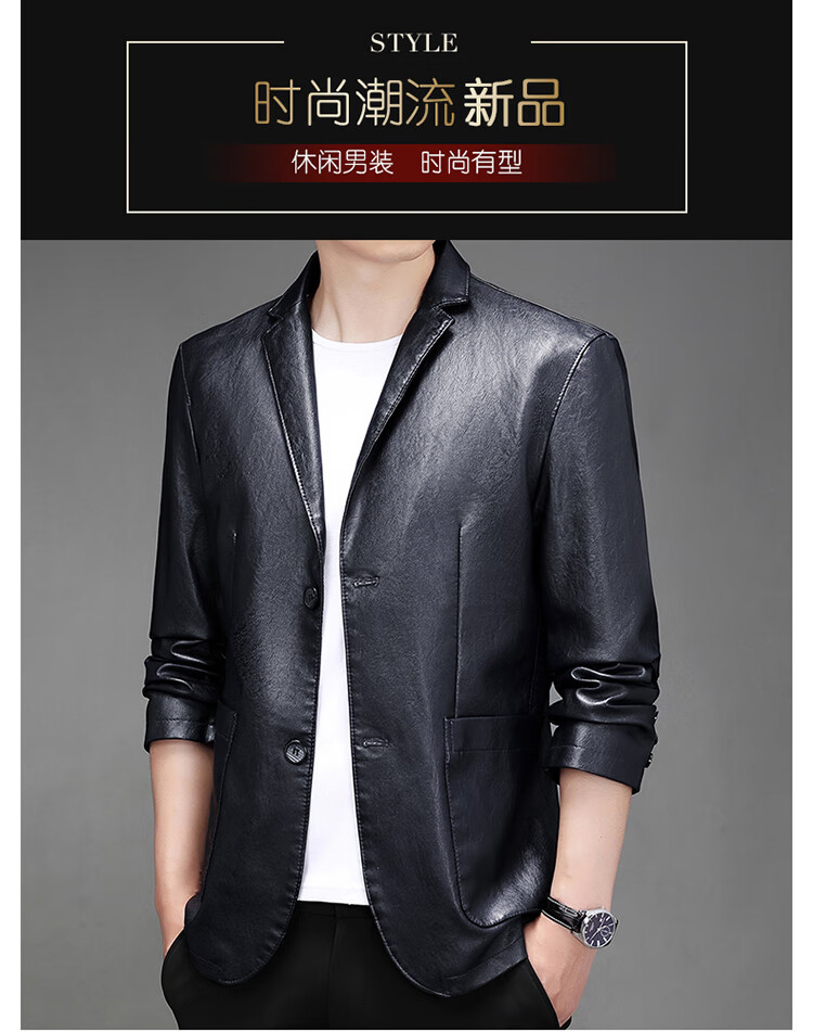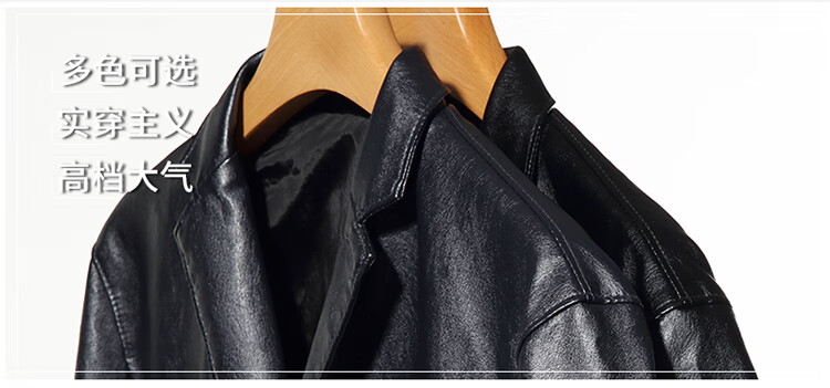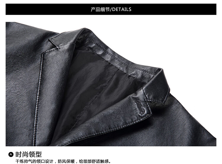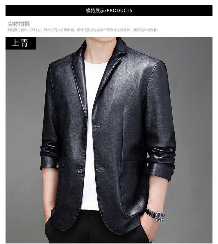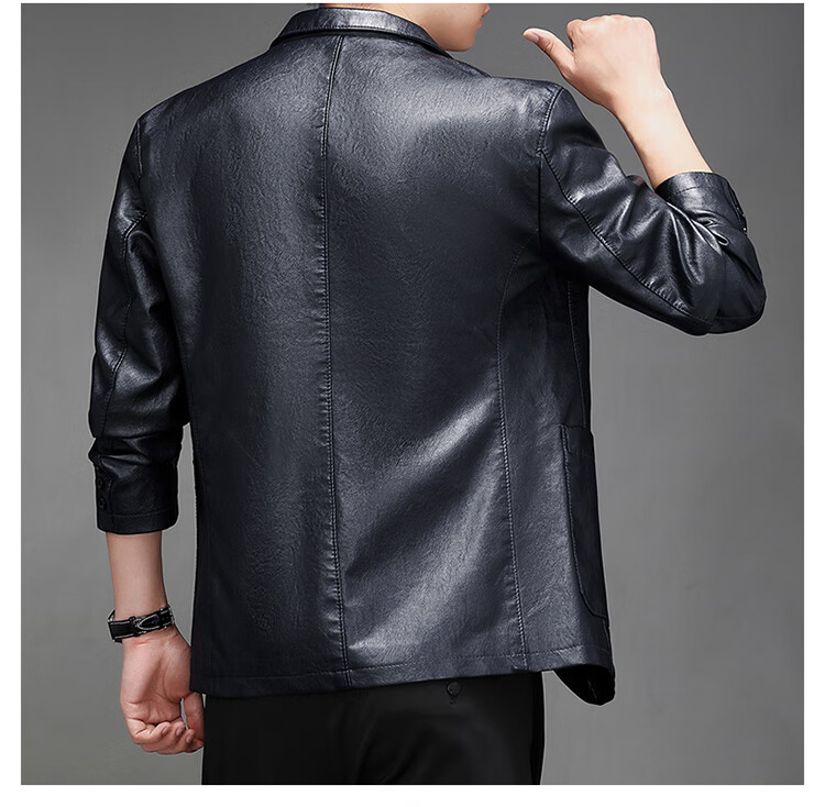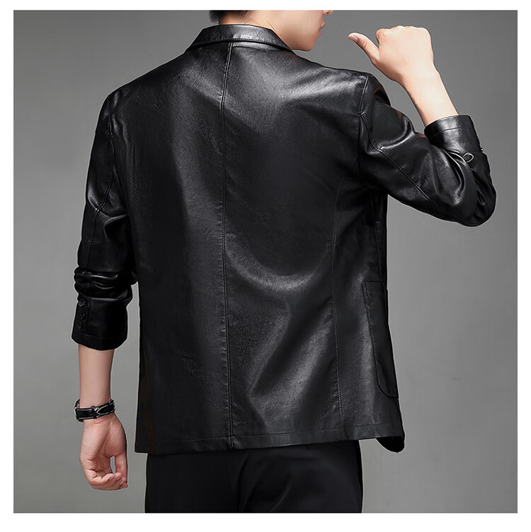 JEEP SPIRIT Jeep Haining imitation leather leather jacket men's autumn imitation sheepskin suit jacket slim casual single leather suit jacket black 2XL