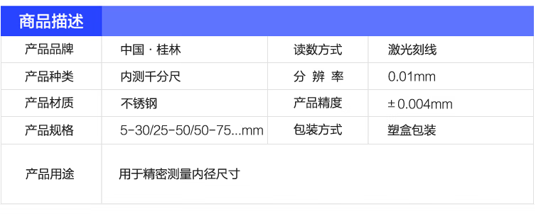 Yue Changsheng Guilin internal micrometer 5-30 25-50-75-100mm Guilin inner hole diameter measuring ruler inner diameter measuring tool 75-100mm