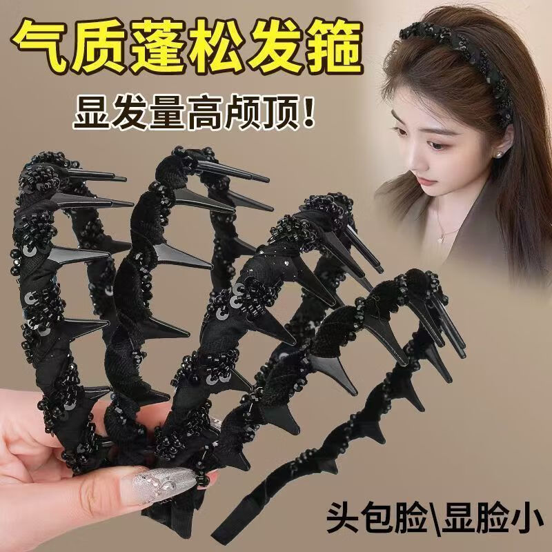 Princess of Paris Headband Women's 2025 New Light Luxurious Pressed Hair Headband Temperament Small Fragrant Style Beaded Wrap Hair Bundle Headwear Three-strand Wrapped Wave Headband 2 pcs