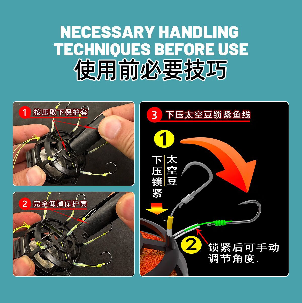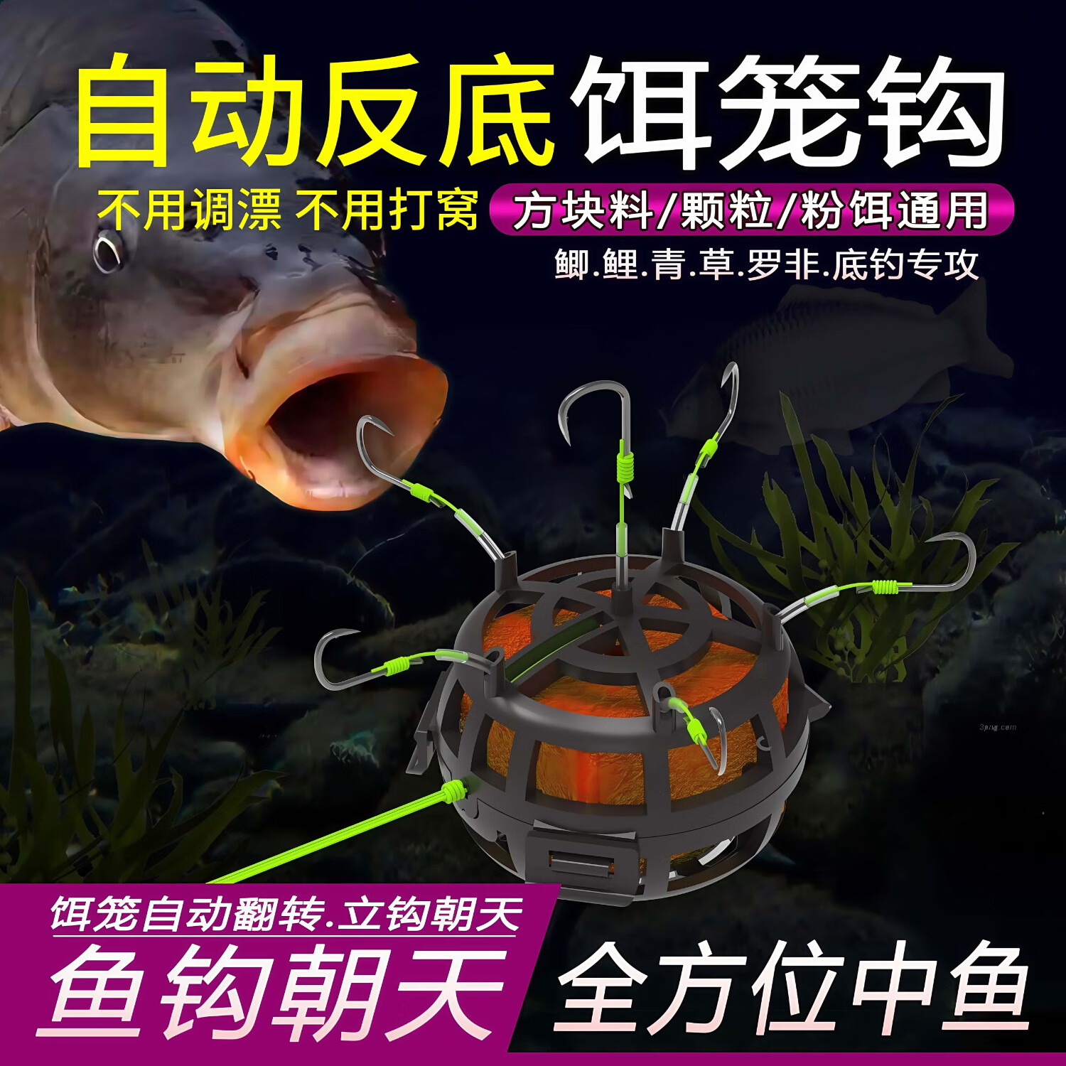 Hongji upturned bait cage hook anti-bottom explosive hook wild fishing square bait hand rod cage throwing rod sea pole Iseni silver carp and bighead carp No. 10 3 pieces anti-bottom upturned bait cage