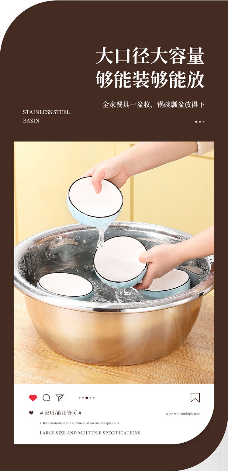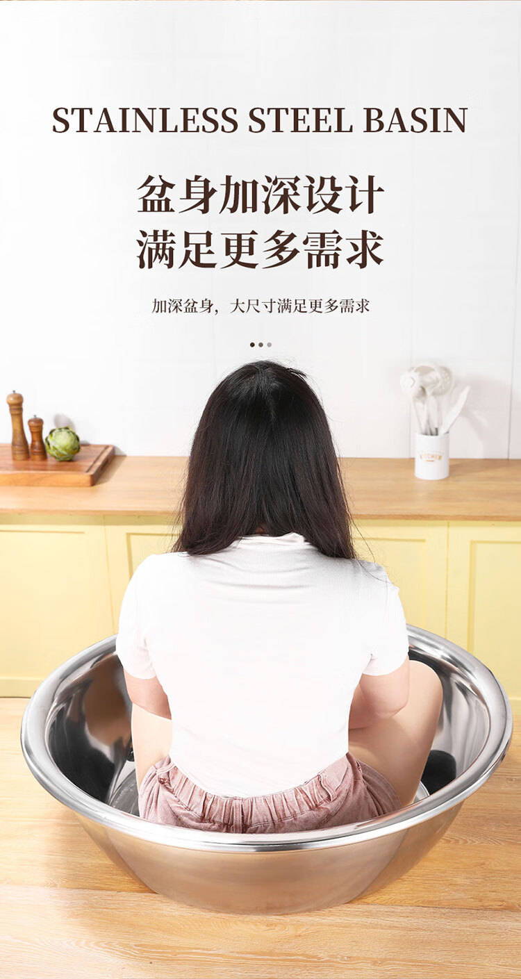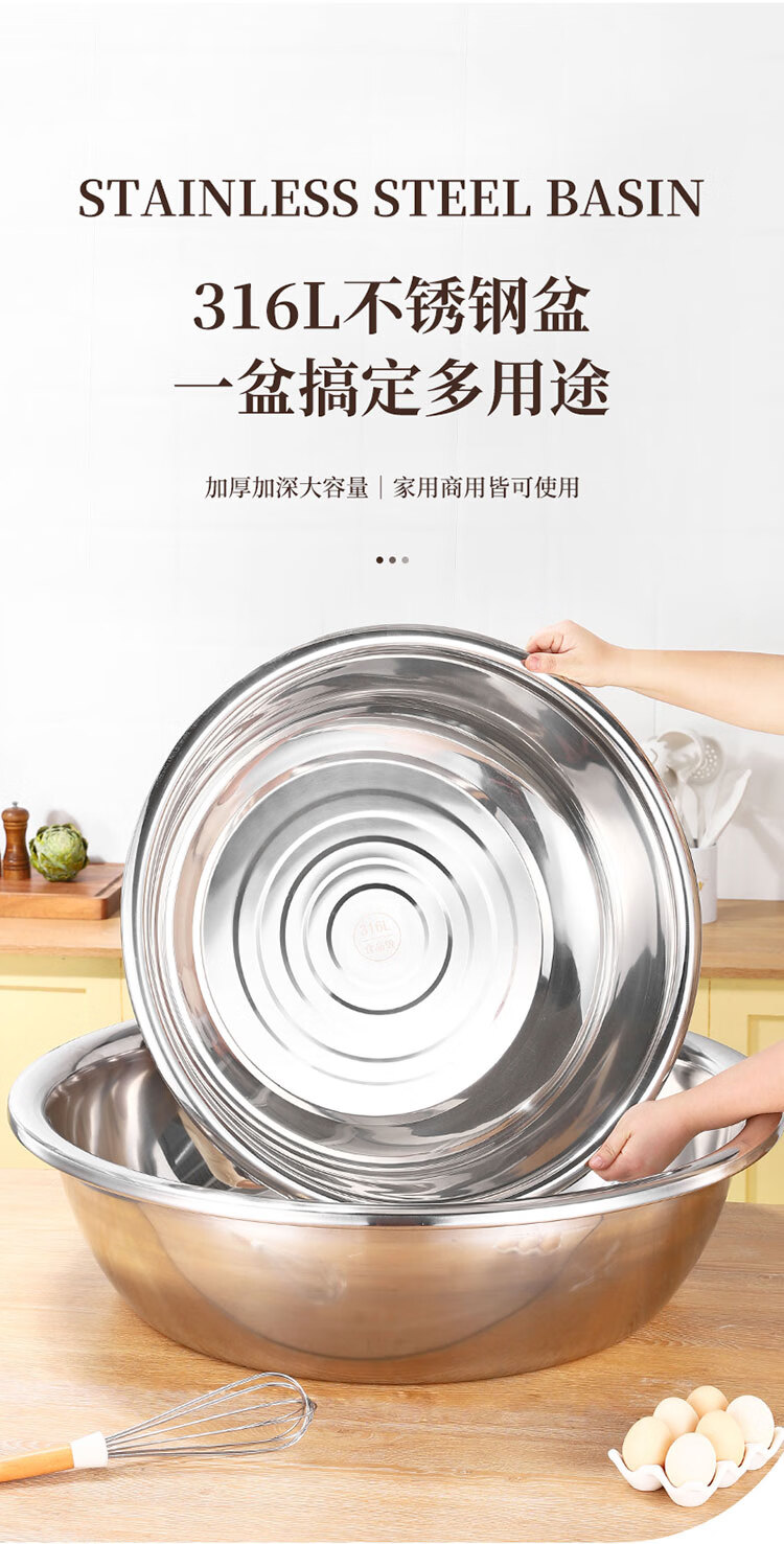 He Jiagong large basin extra large stainless steel basin food grade thickened 304 vegetable basin home kitchen 316 and basin iron basin food contact basin 40CM full size