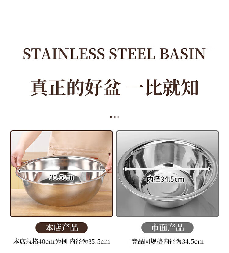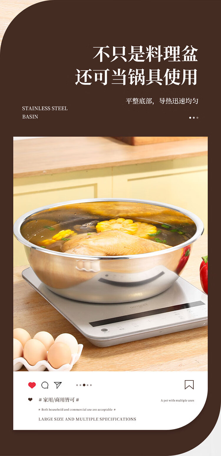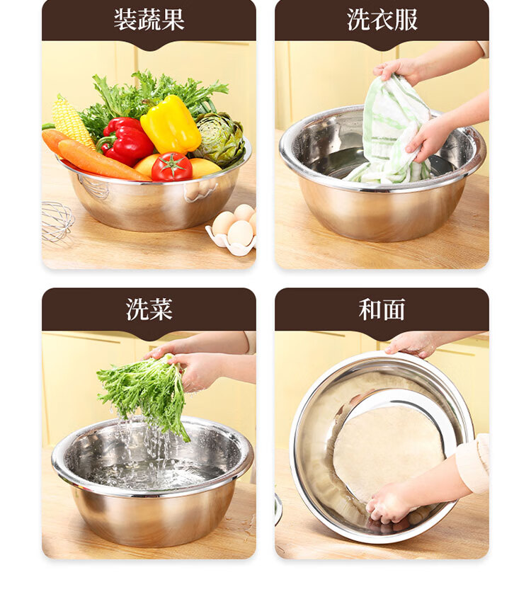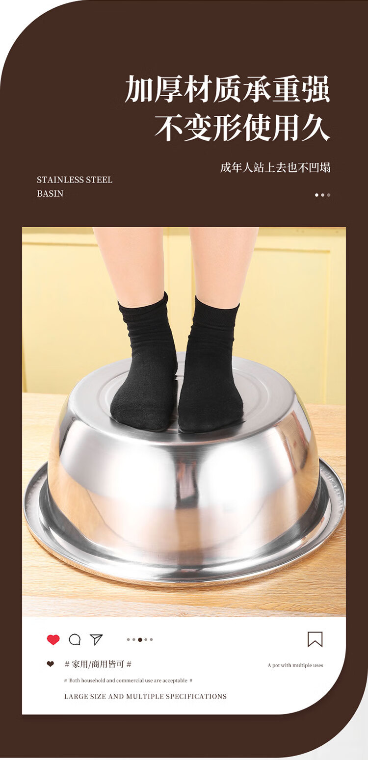 He Jiagong large basin extra large stainless steel basin food grade thickened 304 vegetable basin home kitchen 316 and basin iron basin food contact basin 40CM full size