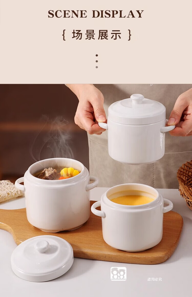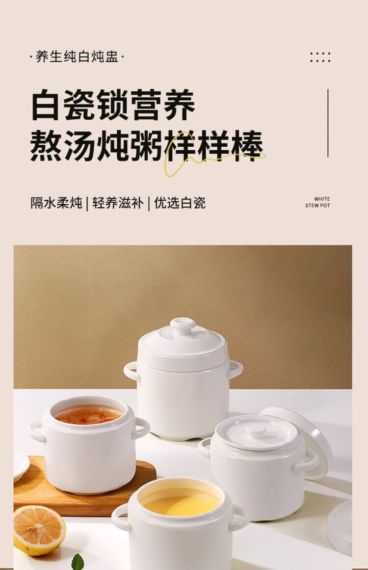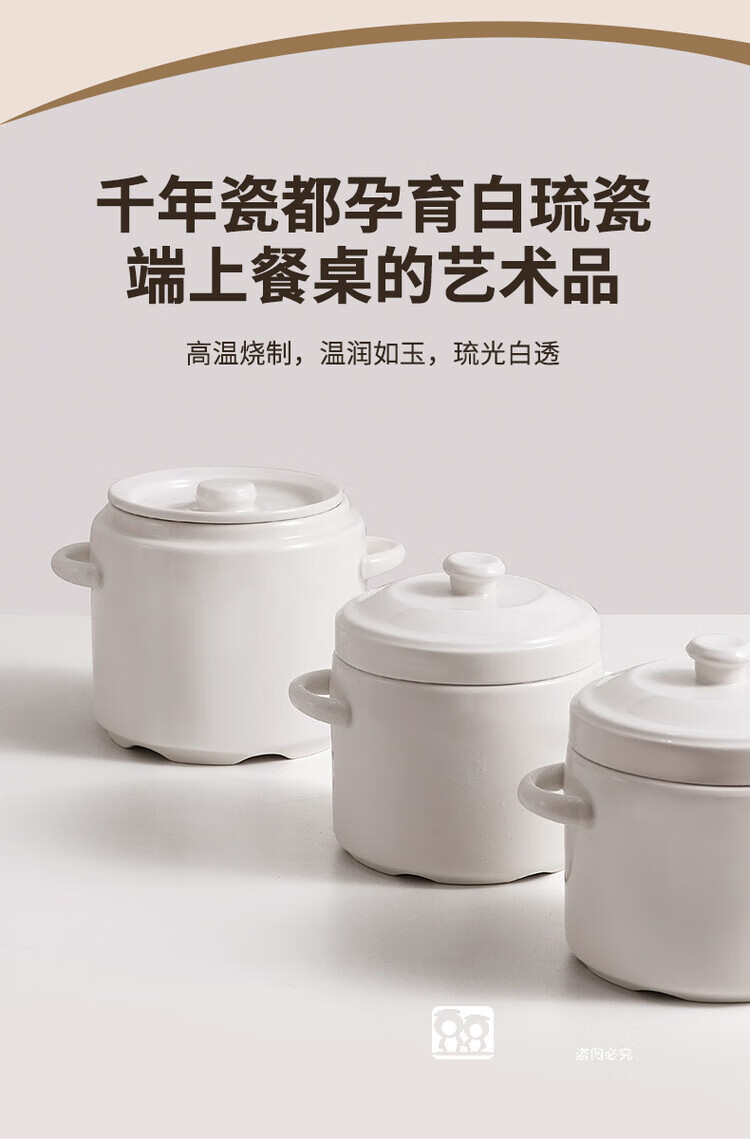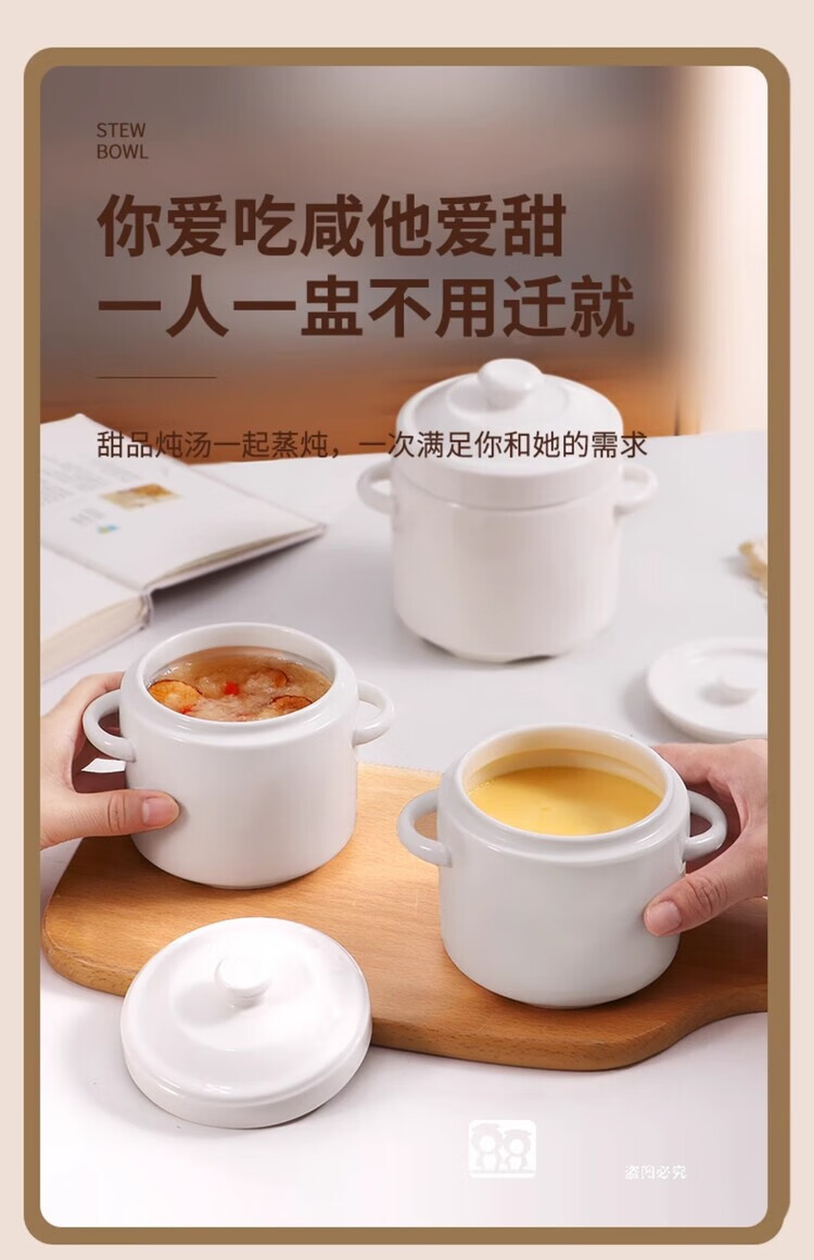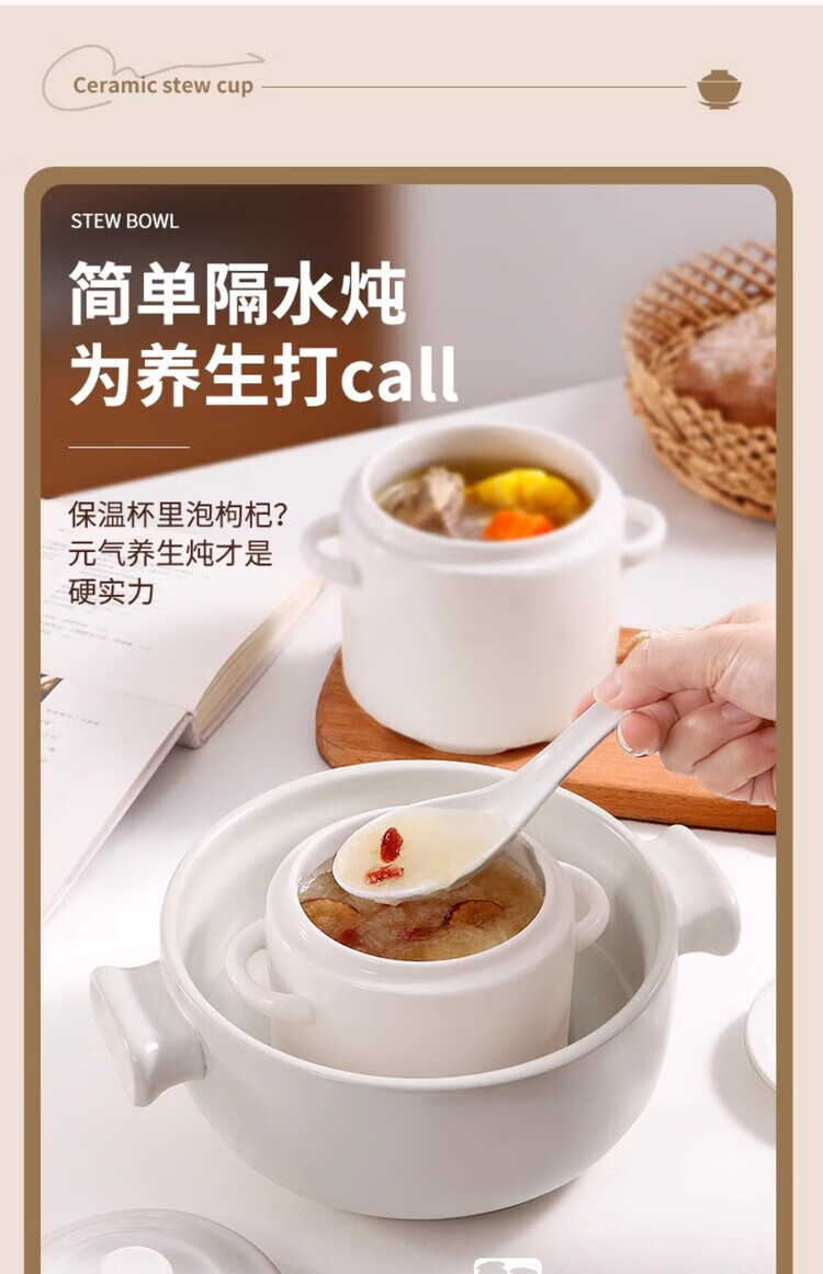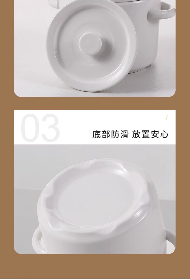 GERTHRON German high-end ceramic stew pot with lid for one person, one cup, food grade, double-ear microwave oven with lid, water-proof stew pot for home use, white double lid 450ML