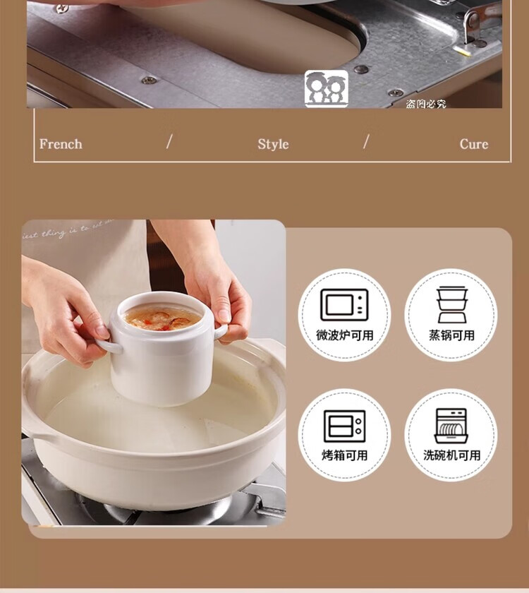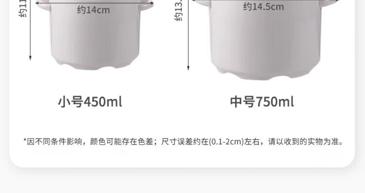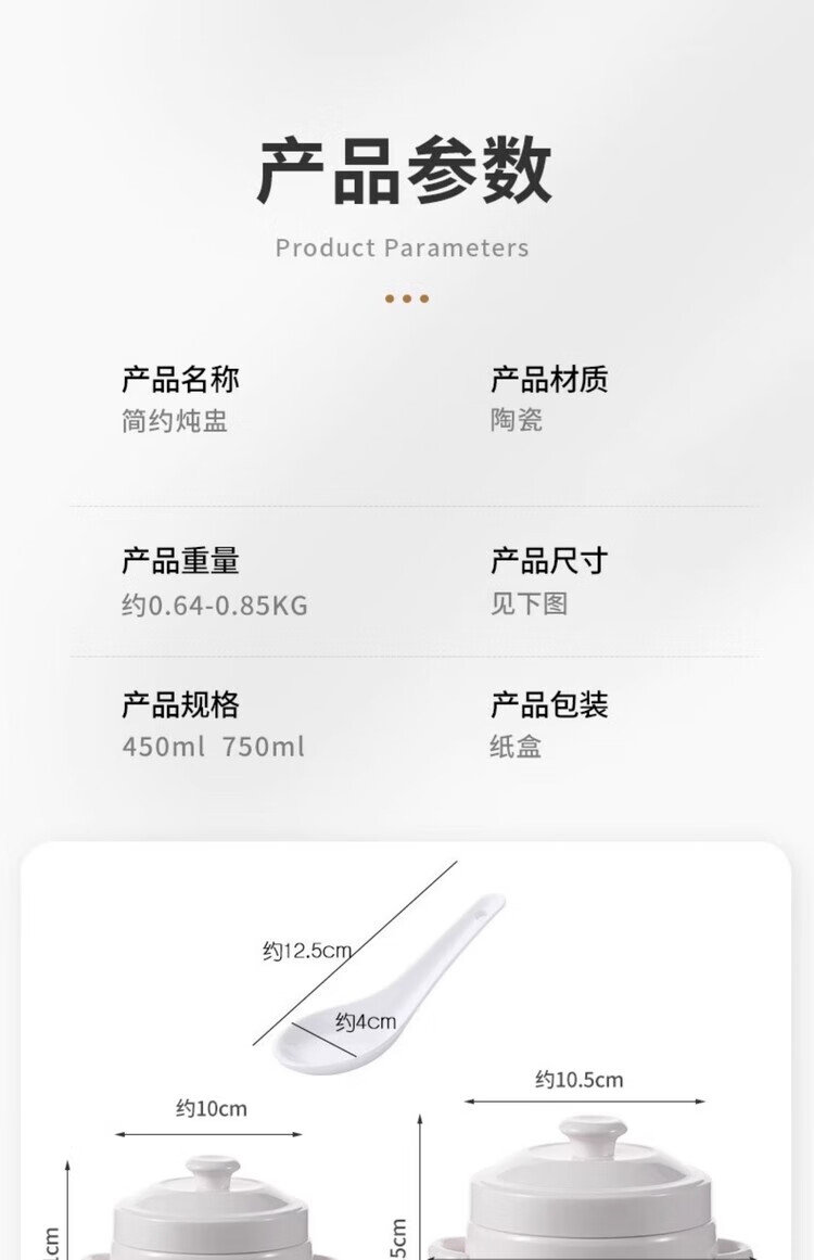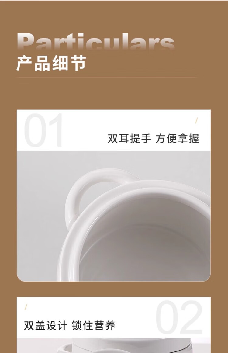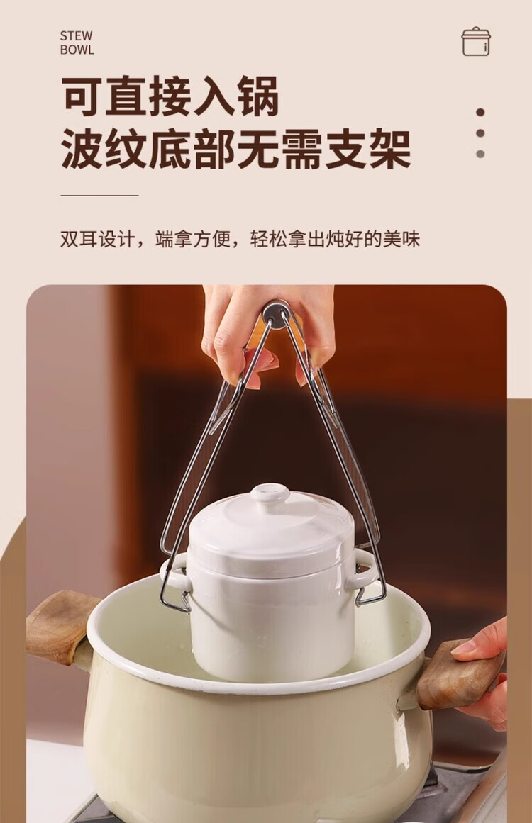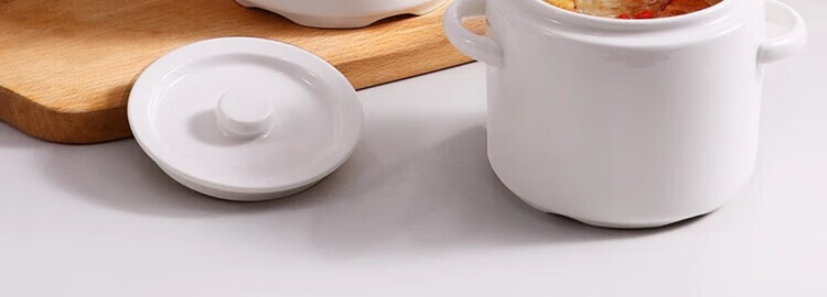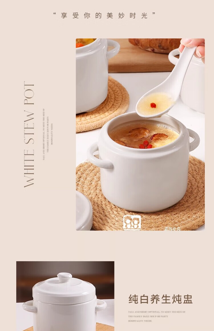 GERTHRON German high-end ceramic stew pot with lid for one person, one cup, food grade, double-ear microwave oven with lid, water-proof stew pot for home use, white double lid 450ML