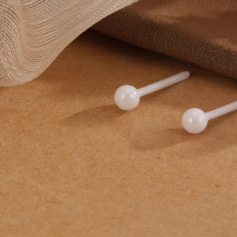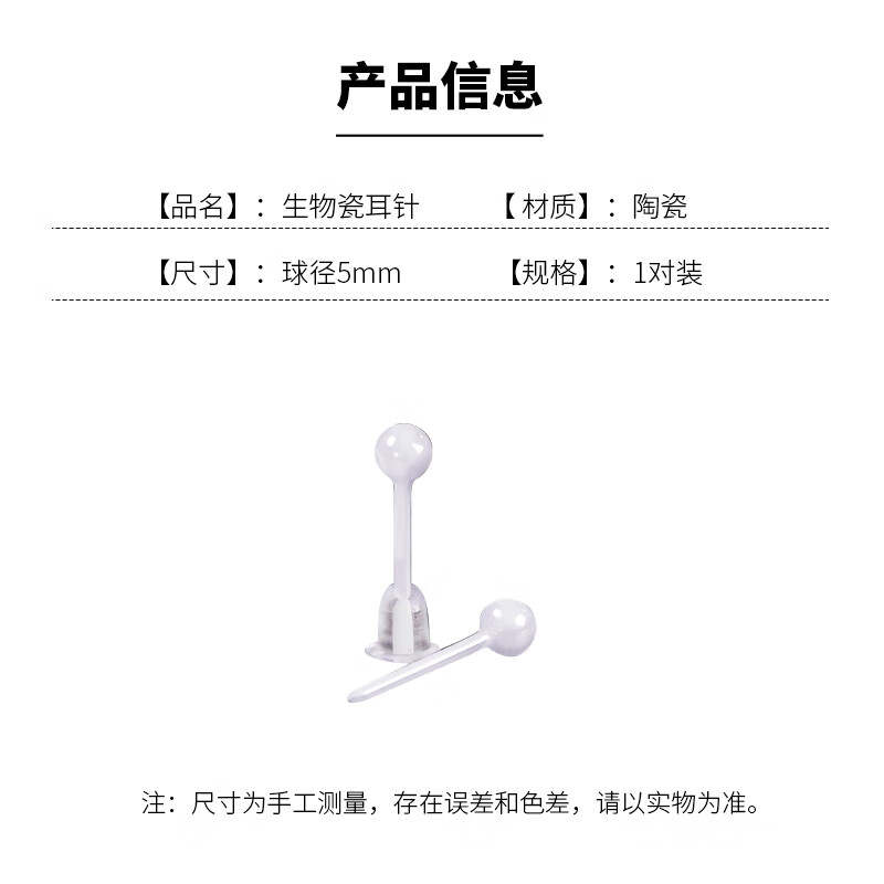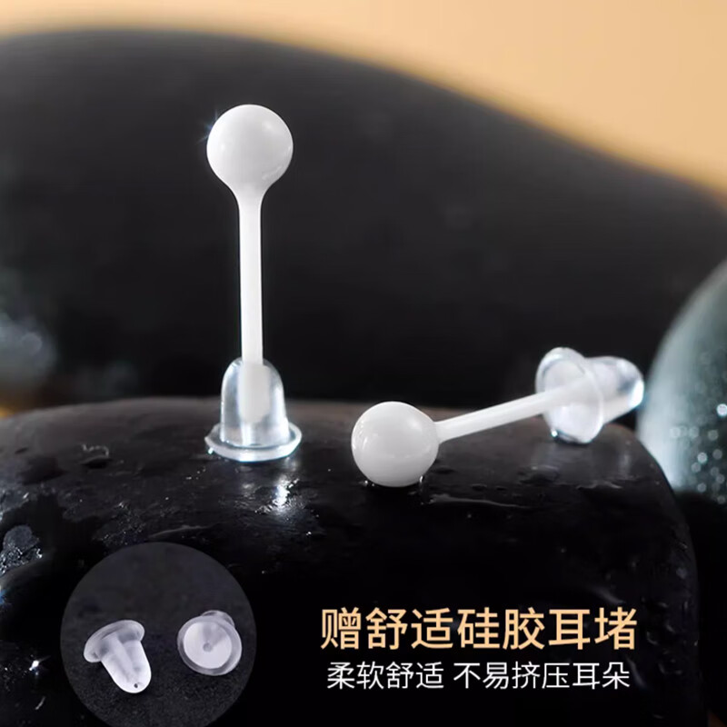 Biological porcelain ear piercing earrings for sleeping, easy to remove, simple, sweet and cute earrings, small and exquisite all-ceramic earrings, bio-porcelain ear piercing earrings, 1 pair, 5mm