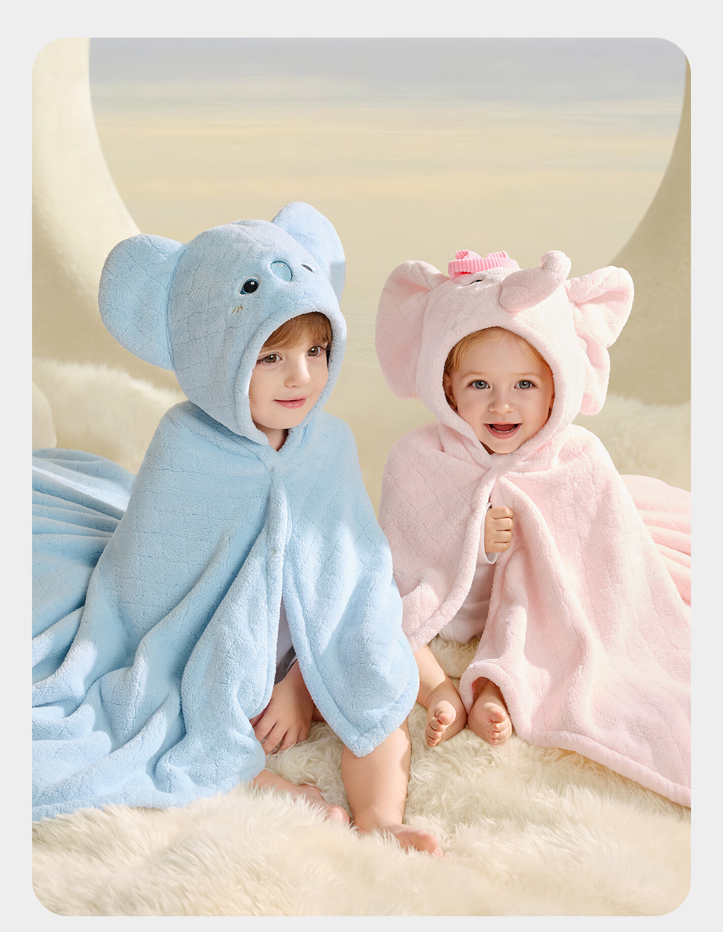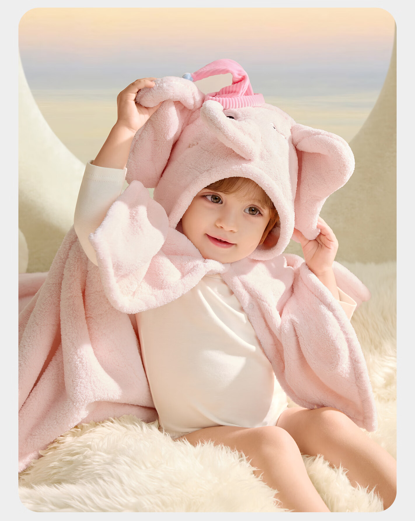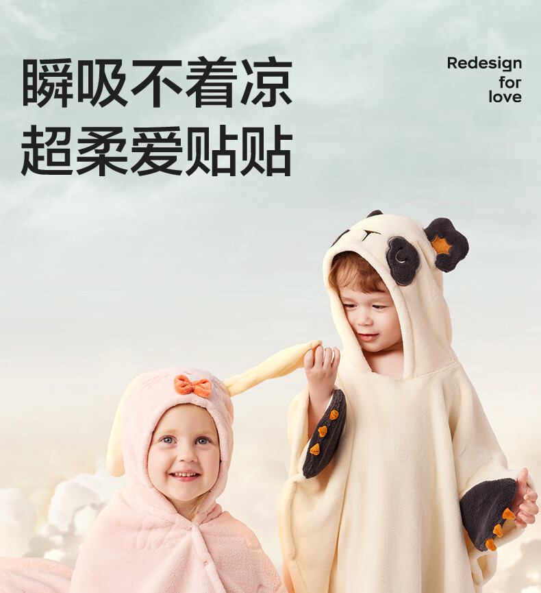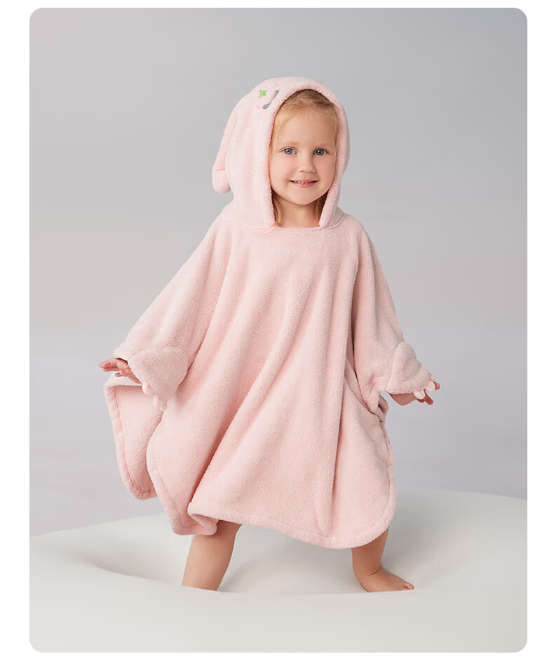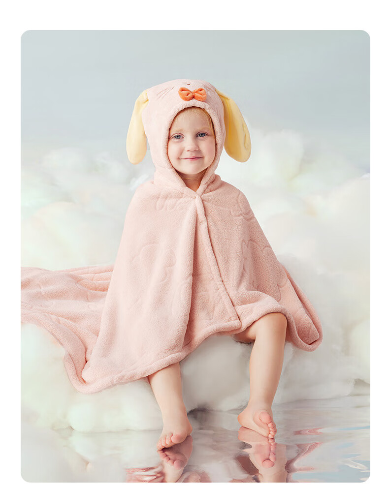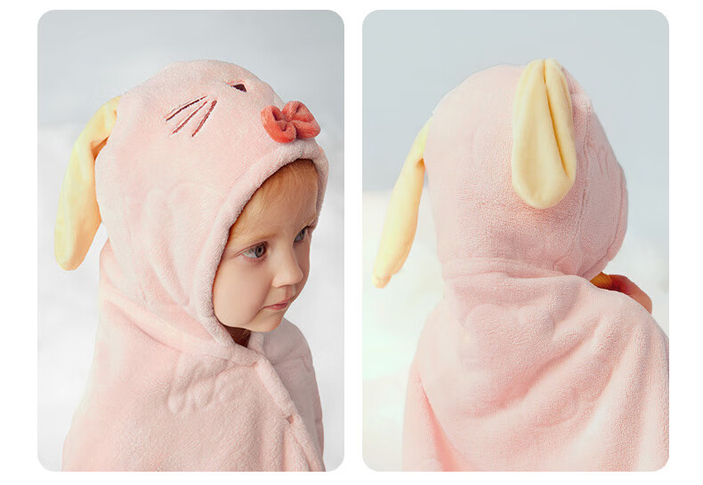 Bc babycare newborn baby velvet hooded bath towel, soft absorbent and quick-drying baby and children's bath robe cover blanket and children's bath towel new release little pink elephant (105*105cm)