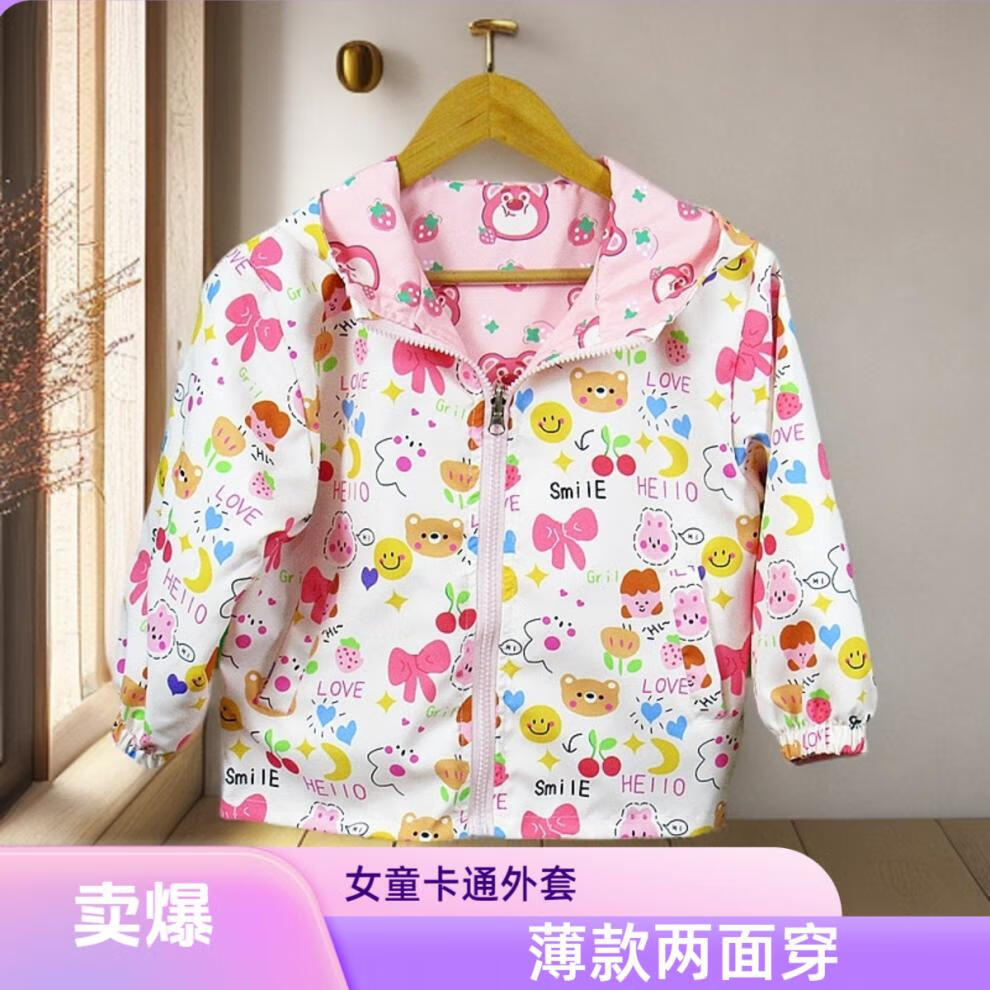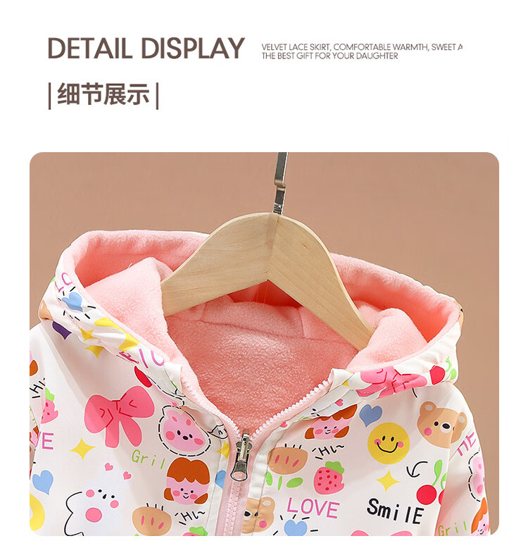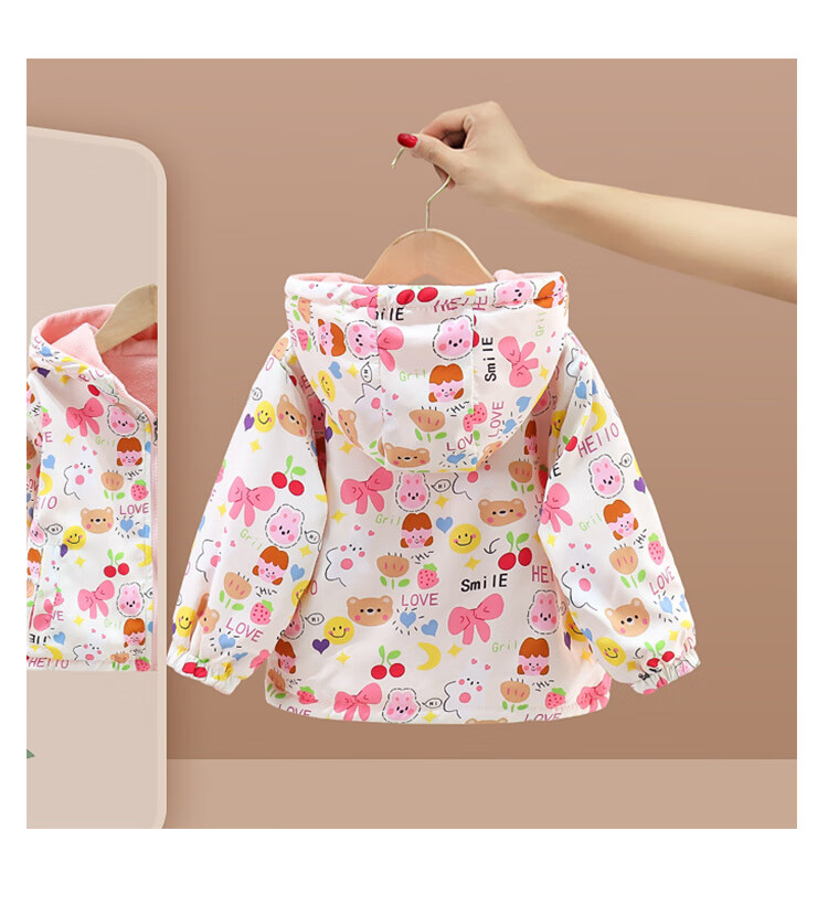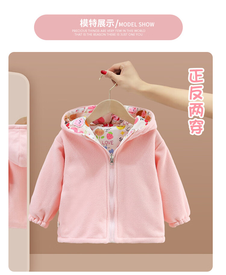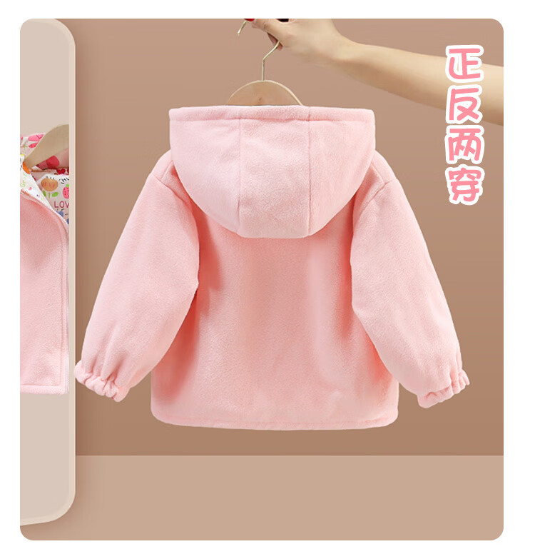 Disney Girls' Jacket Reversible Jacket New Children's Style Spring and Autumn Velvet Jacket Baby Girl Windbreaker Light Pink 100 (Upgraded Model)