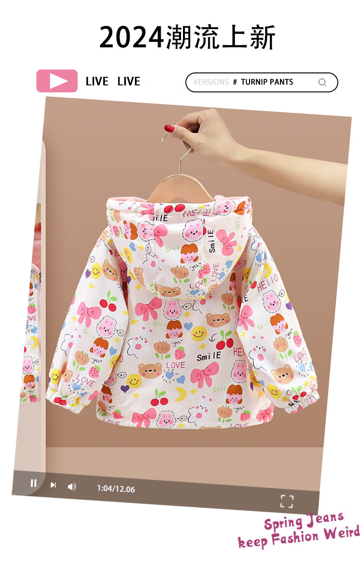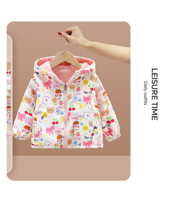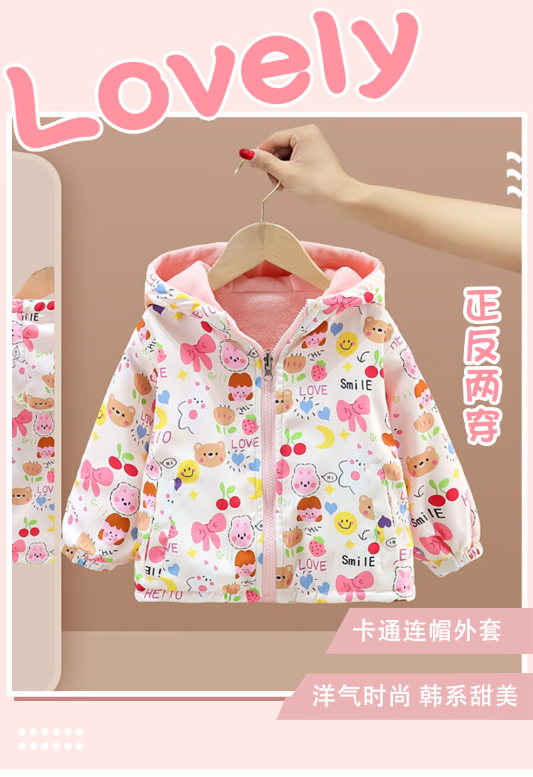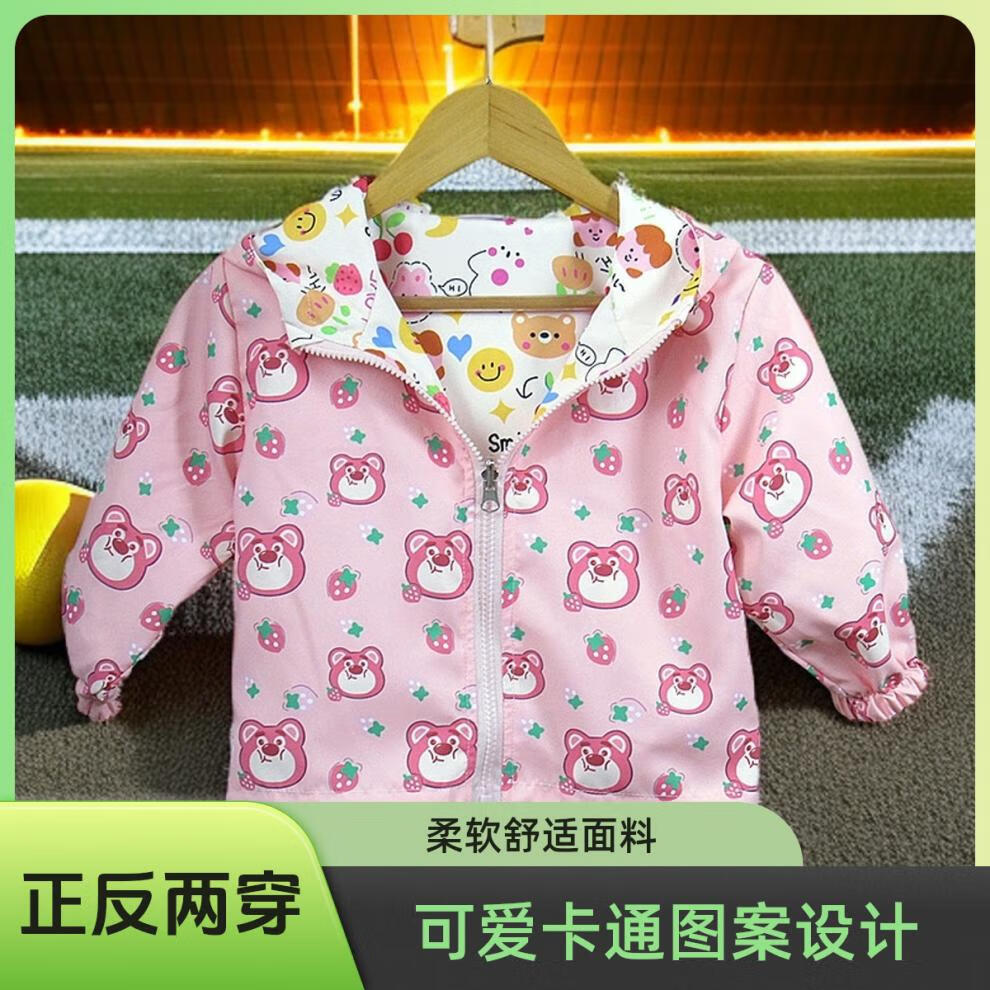 Disney Girls' Jacket Reversible Jacket New Children's Style Spring and Autumn Velvet Jacket Baby Girl Windbreaker Light Pink 100 (Upgraded Model)