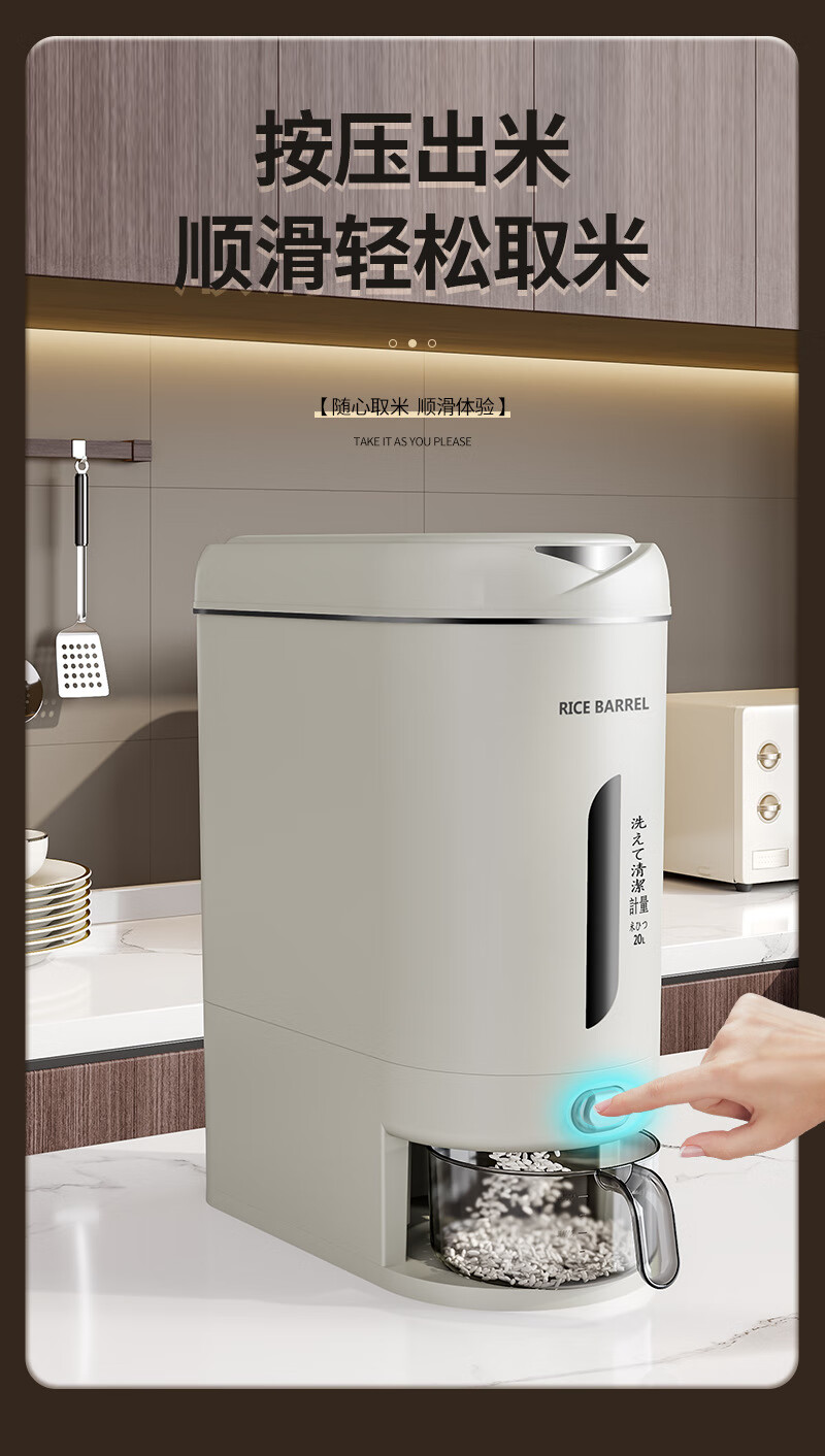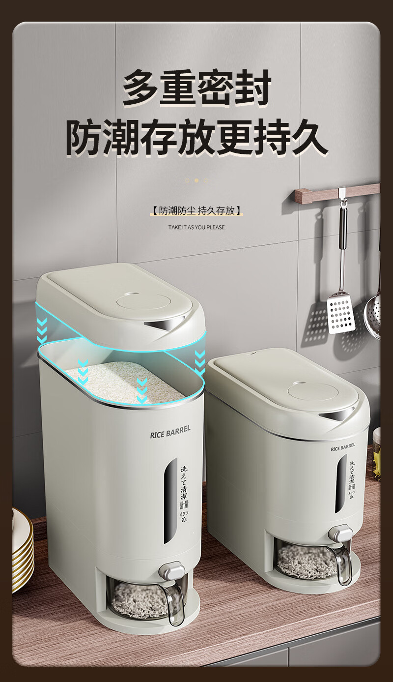 Press the rice bucket, a new type of sealed, moisture-proof and insect-proof, visible large-capacity rice tank, automatic rice box, ash-10 Jin Jin equal to 0.5 kg, with rice filter cup