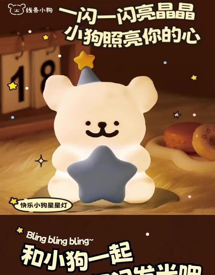 Birthday Gift Cute Line Puppy Night Light Happy Birthday Star Creative Atmosphere Light Holiday Desktop Ornament Pink Line Puppy Night Light 1 Pack No Specifications