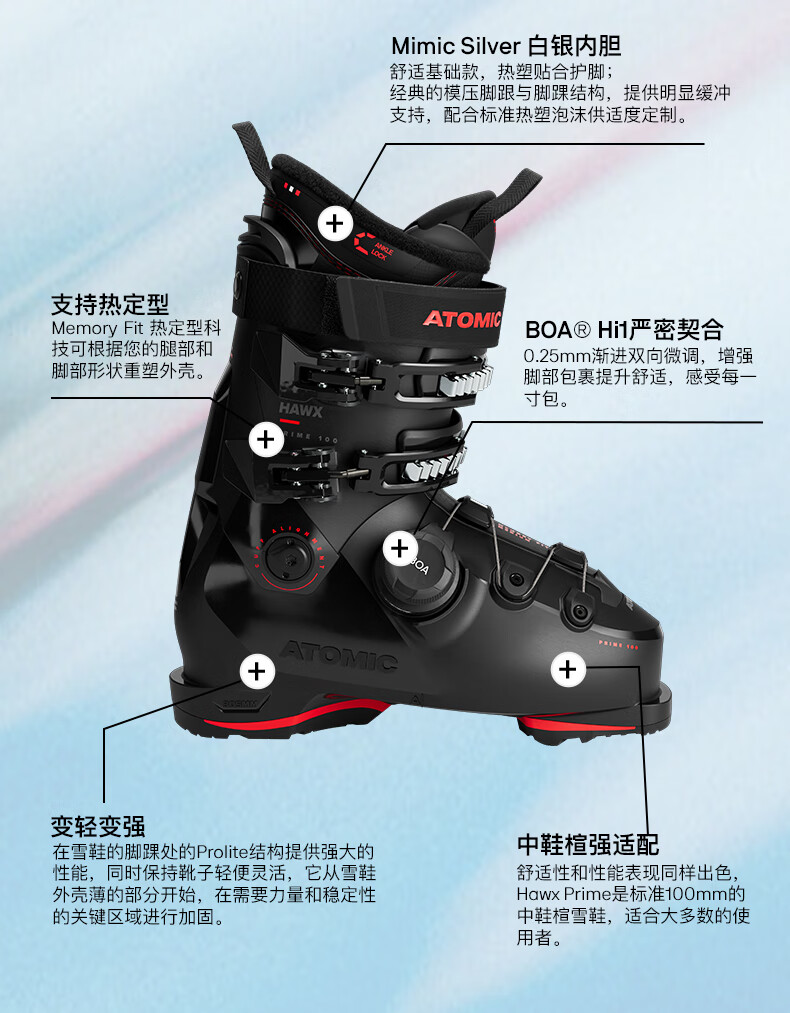 ATOMIC Doppel-Schneeschuhe 2526 neue All-Region-Skischuhe Hawx Prime 100 BOA-Härte 100*Fortgeschritten*Konventioneller Schuhleisten 27,5 (315 mm) Sportschuhgröße 42-43