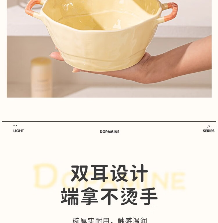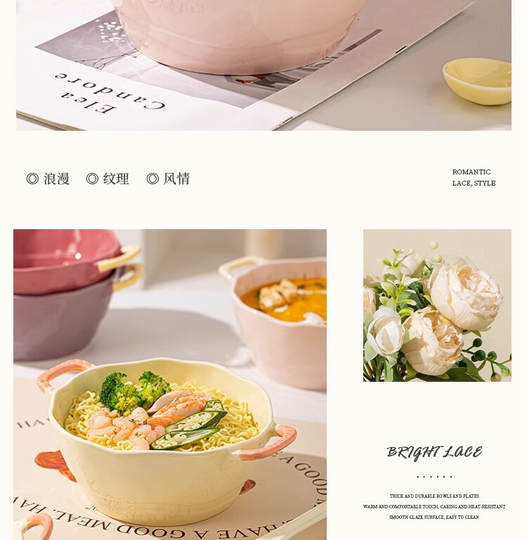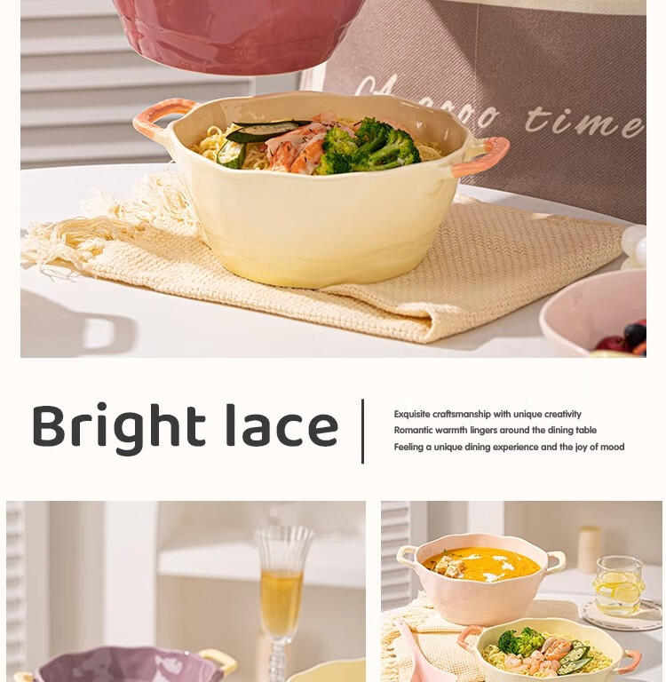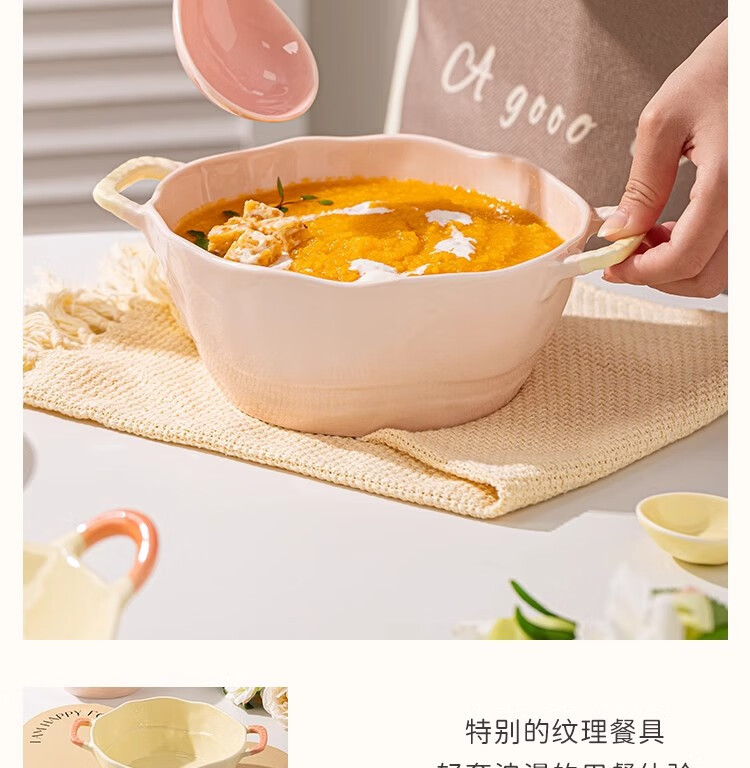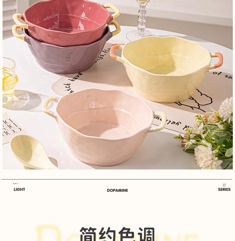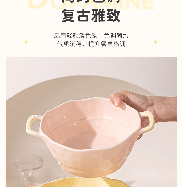 Persson Double-Eared Soup Bowl Home 2025 New Instant Noodle Bowl High-Looking Large Bowl Creamy Noodle Soup Bowl Ceramic Snail Noodle Bowl 9.5-inch Double-Eared Bowl Pink + Milk Yellow