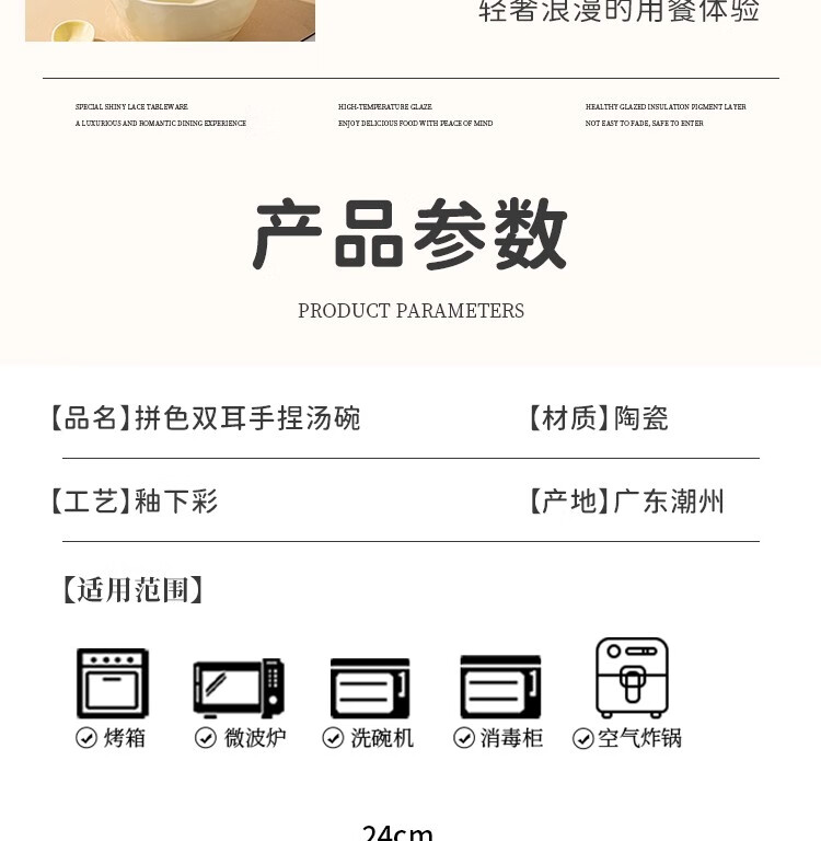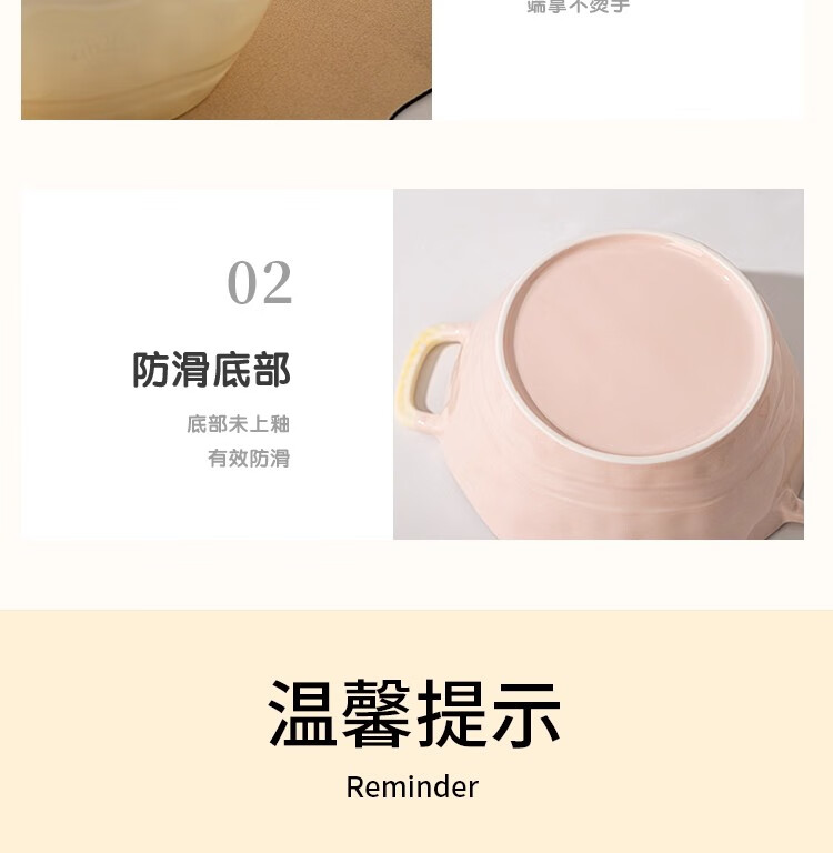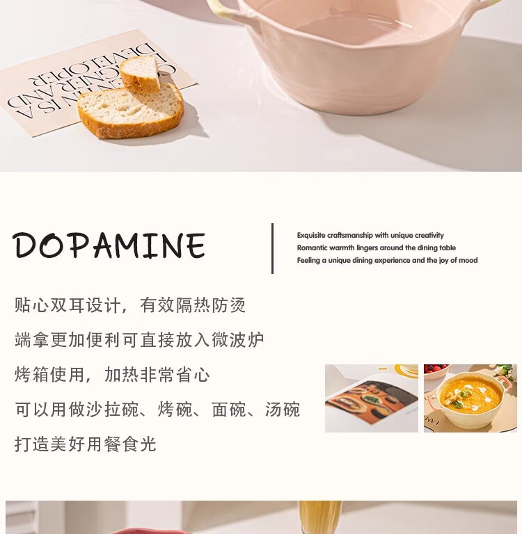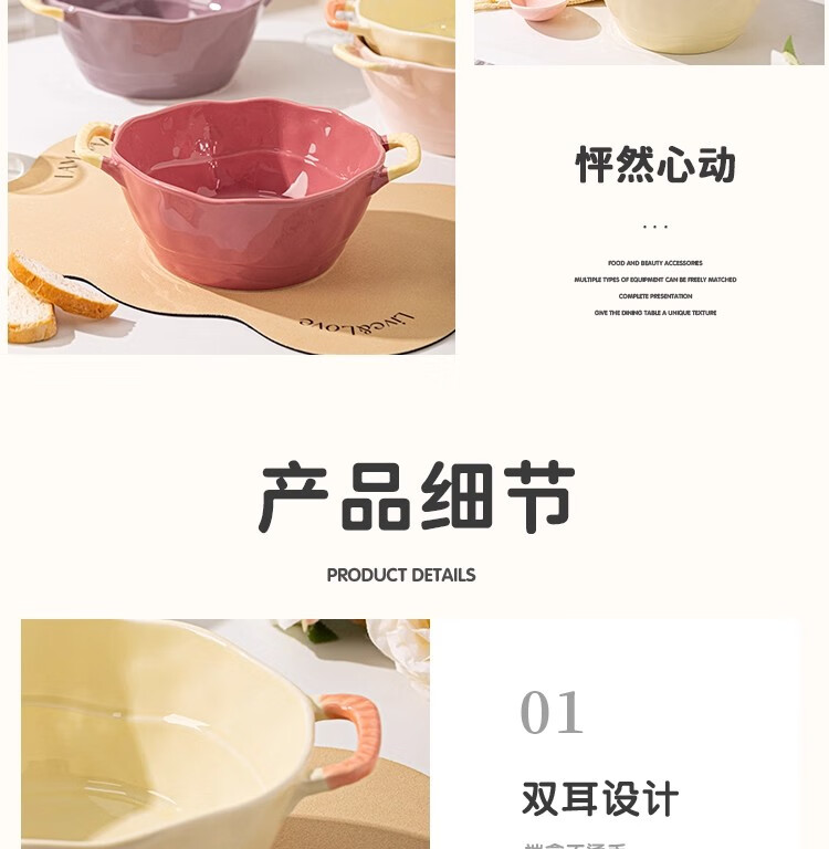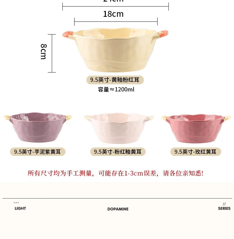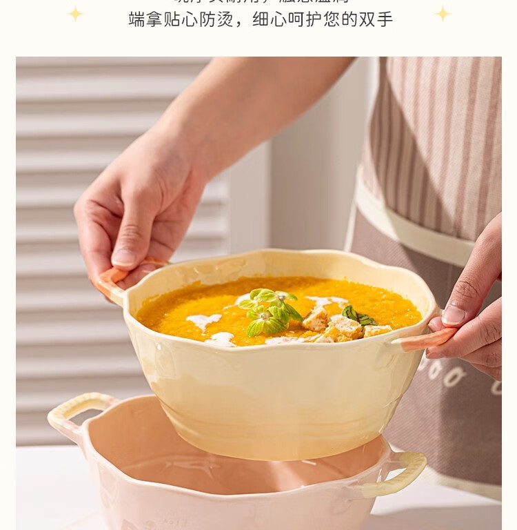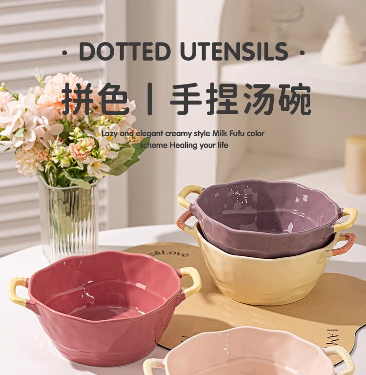 Persson Double-Eared Soup Bowl Home 2025 New Instant Noodle Bowl High-Looking Large Bowl Creamy Noodle Soup Bowl Ceramic Snail Noodle Bowl 9.5-inch Double-Eared Bowl Pink + Milk Yellow