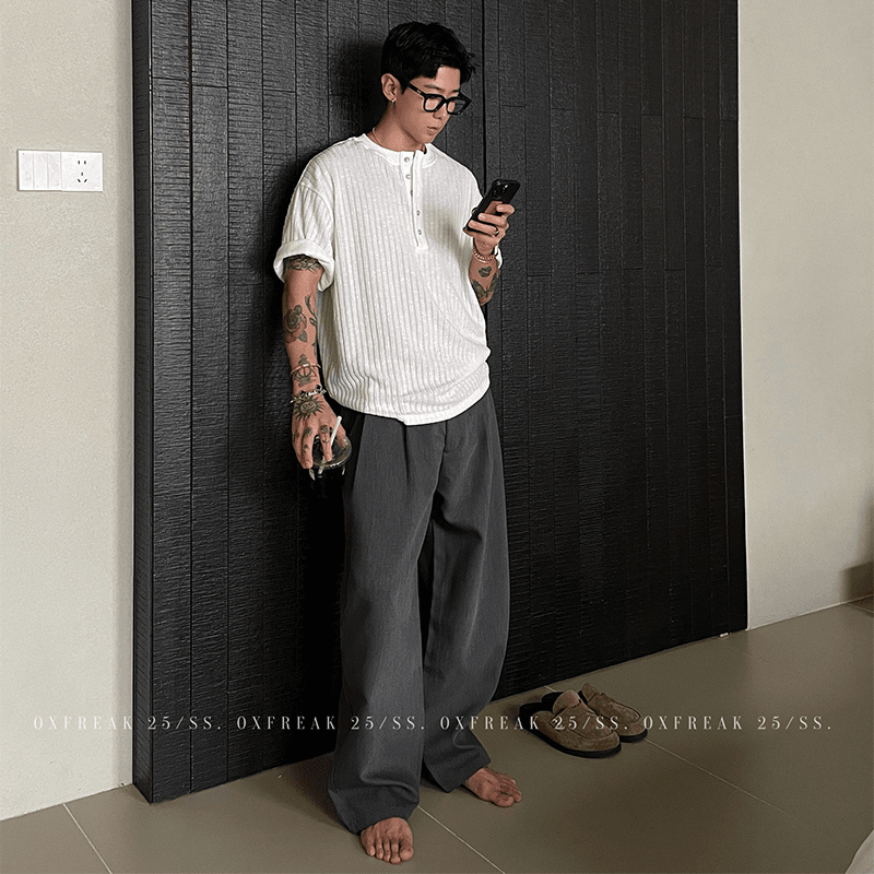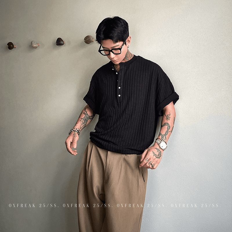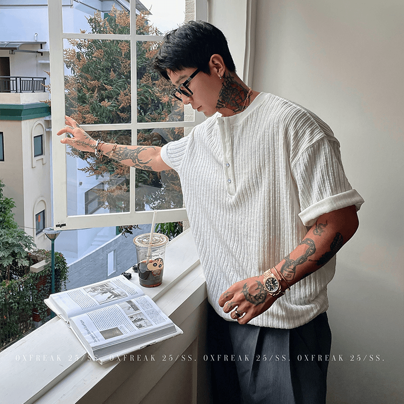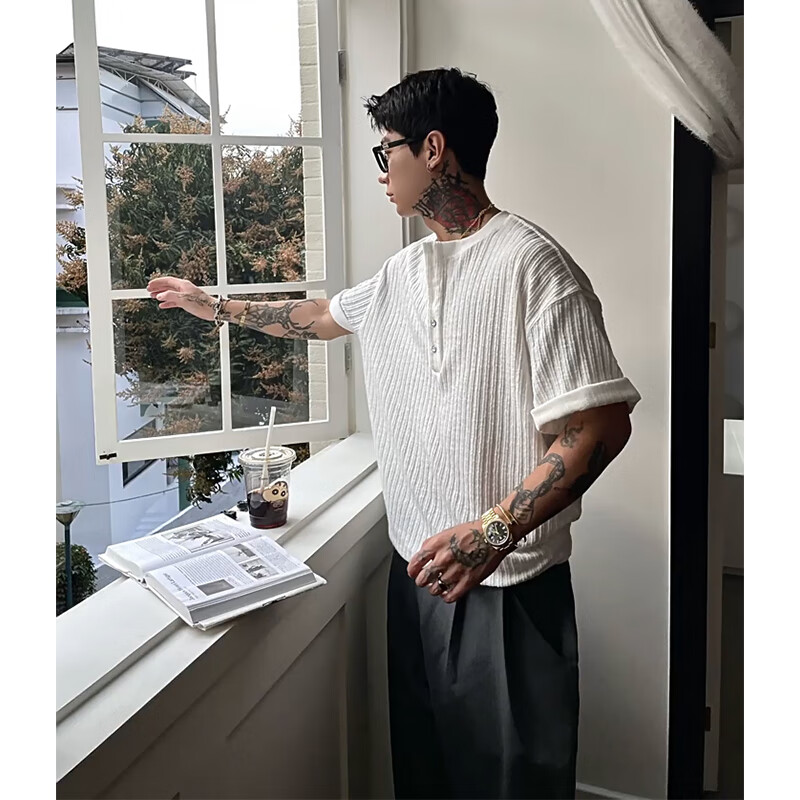 Du Xiaoxian old money style Henry collar short-sleeved polo shirt men's summer textured knitted striped t-shirt cleanfit half-sleeved white XL recommended 120-140Jin Jin equals 0.5 kg