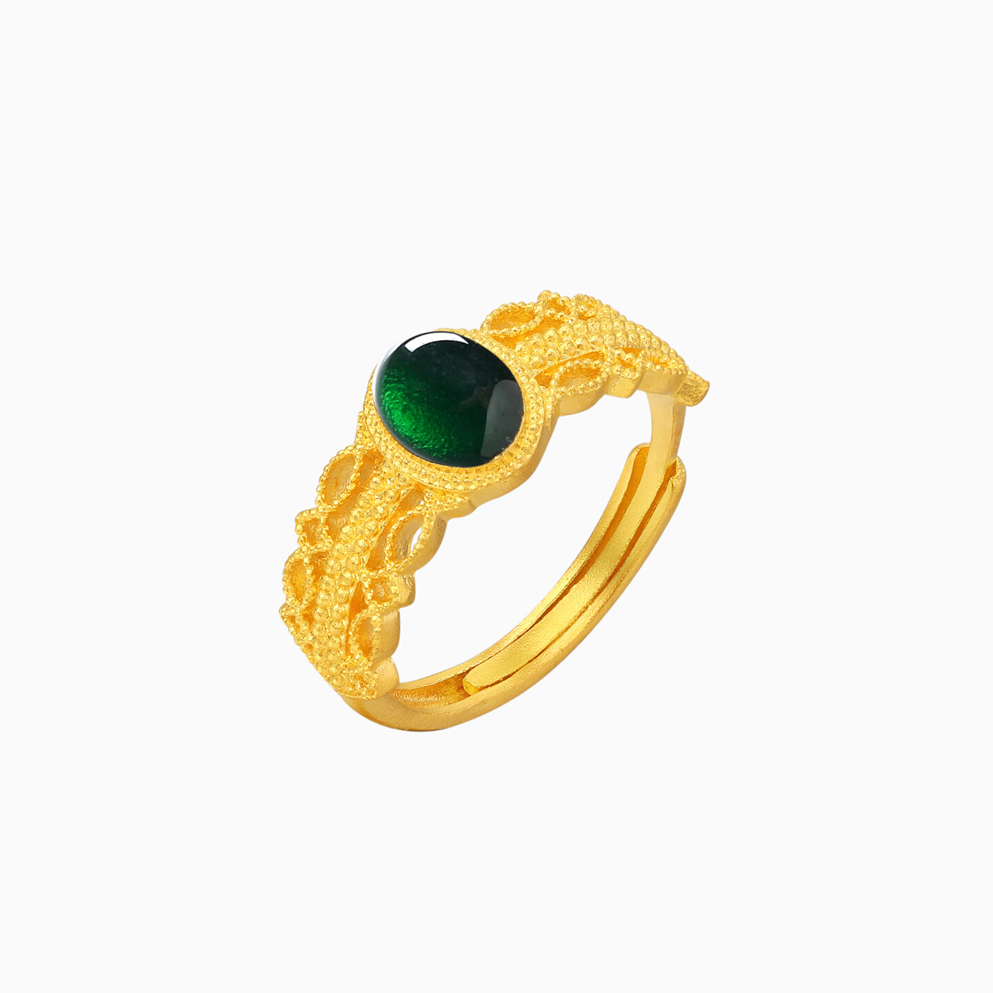 Chao Acer Zhenjin Twelve Colors Ancient Gold Ring Women's Foot Gold Ring Hand Decoration Enamel Birthday Gift TK J 4.65g, Live Ring Mouth