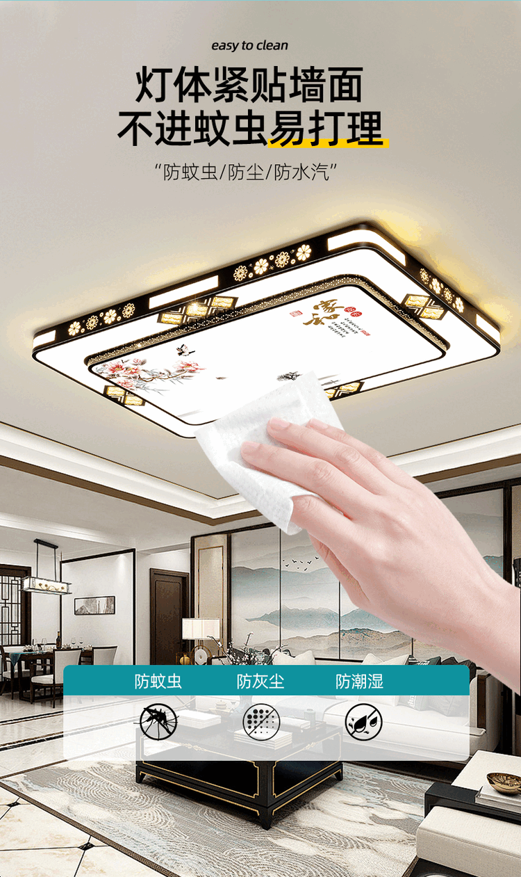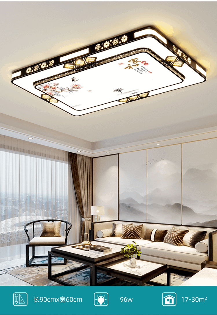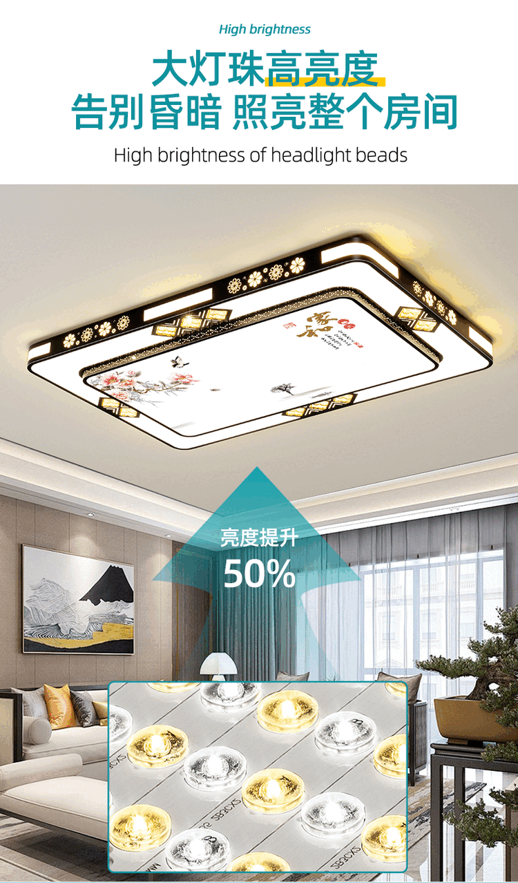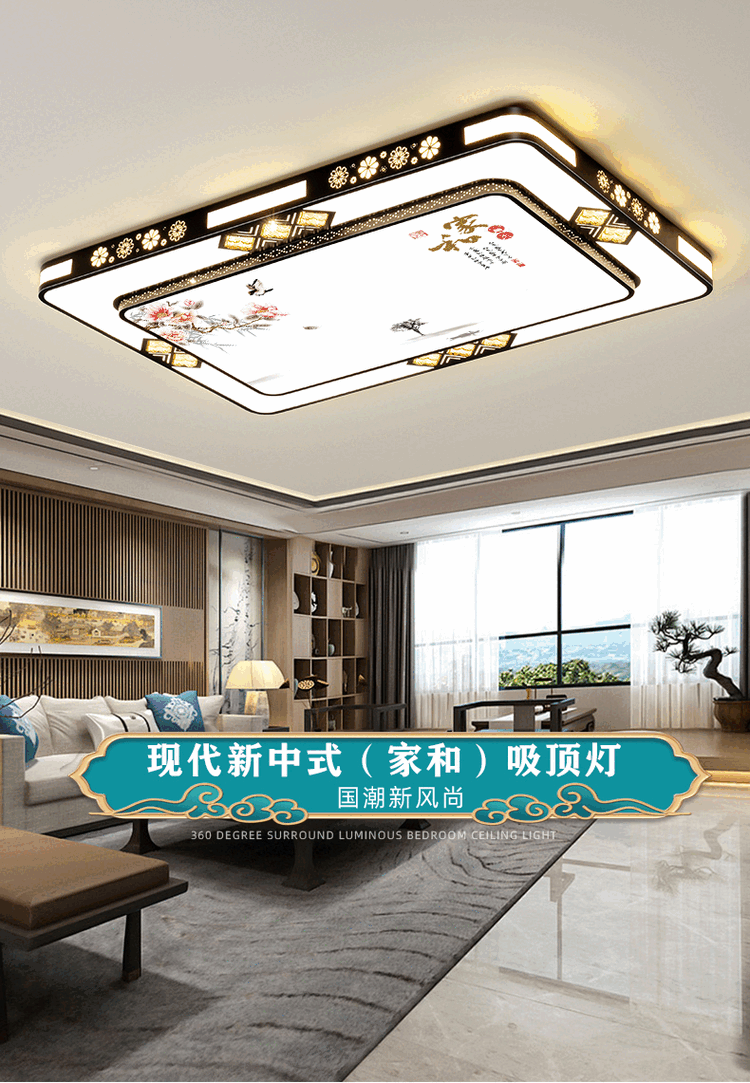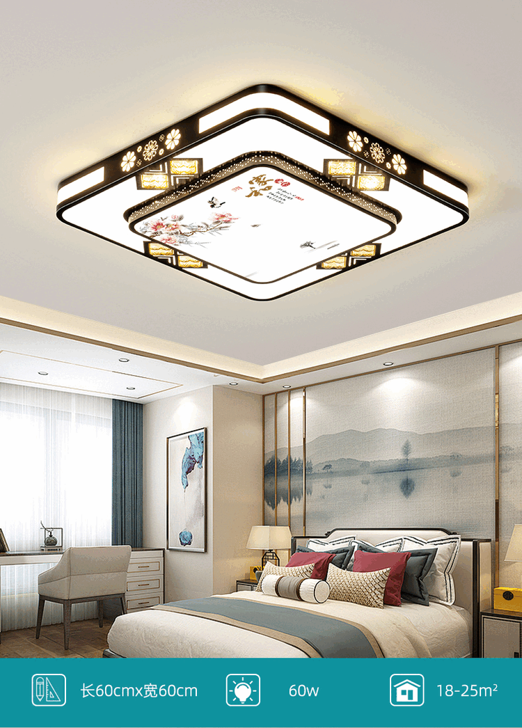 HULDRA 2025 new LED ceiling lamp room bedroom lamp living room lamp hall modern simple atmosphere Zhongshan lamp 50*50cm three-color dimming 48W*2
