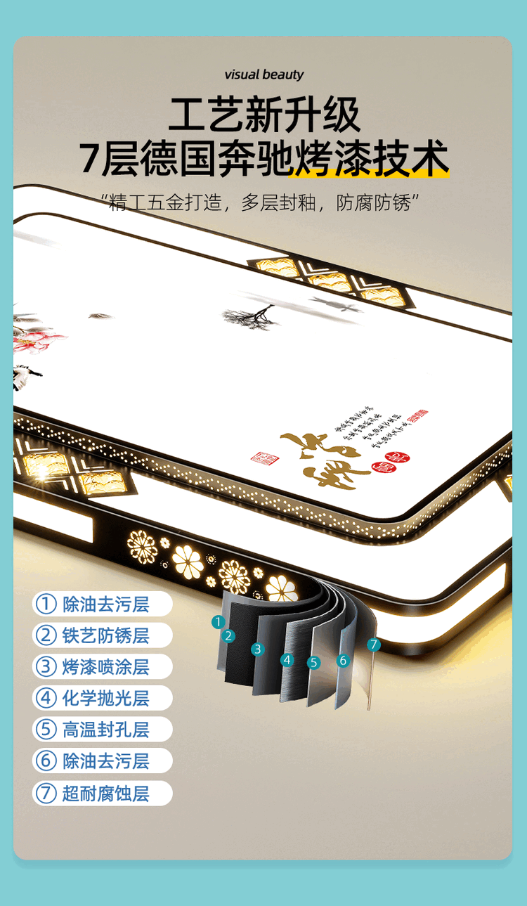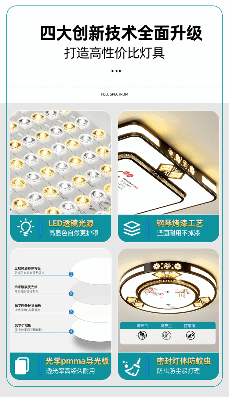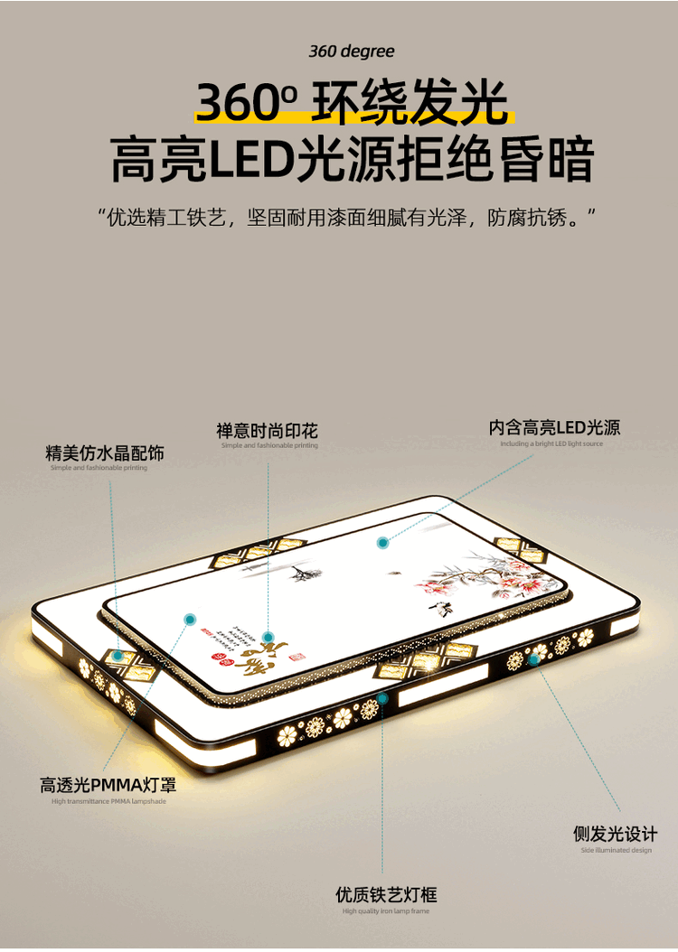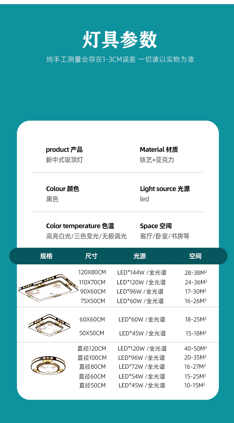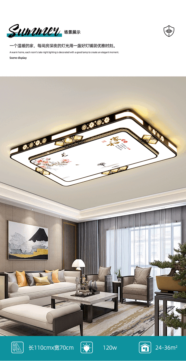 HULDRA 2025 new LED ceiling lamp room bedroom lamp living room lamp hall modern simple atmosphere Zhongshan lamp 50*50cm three-color dimming 48W*2