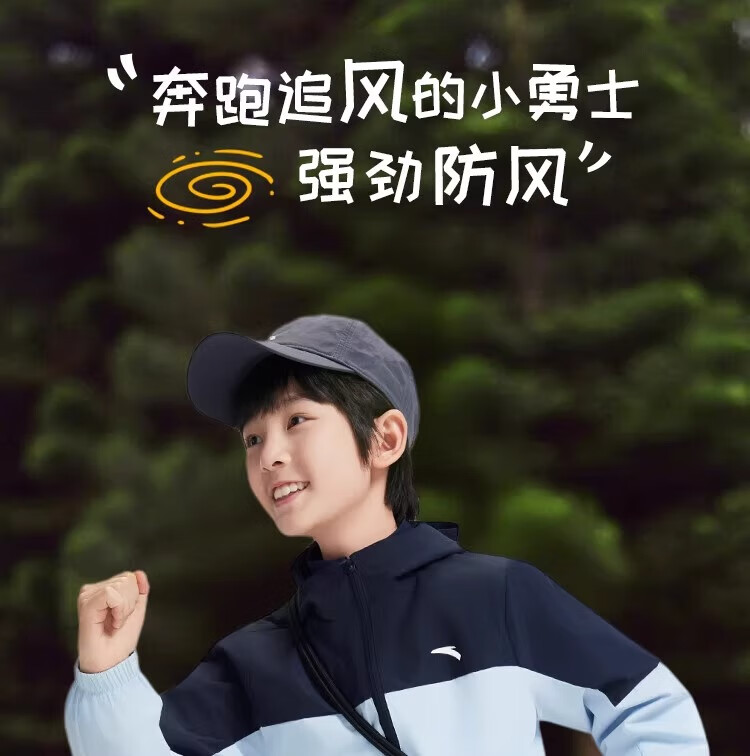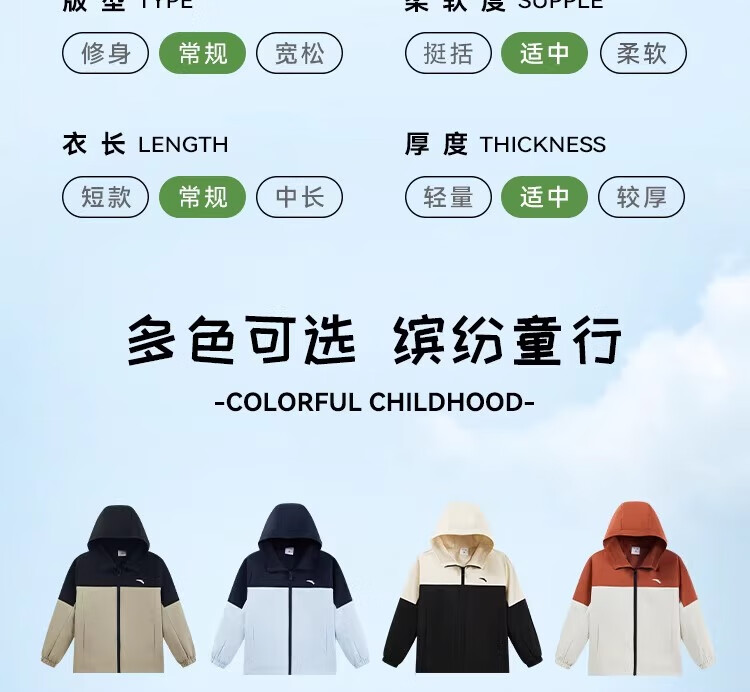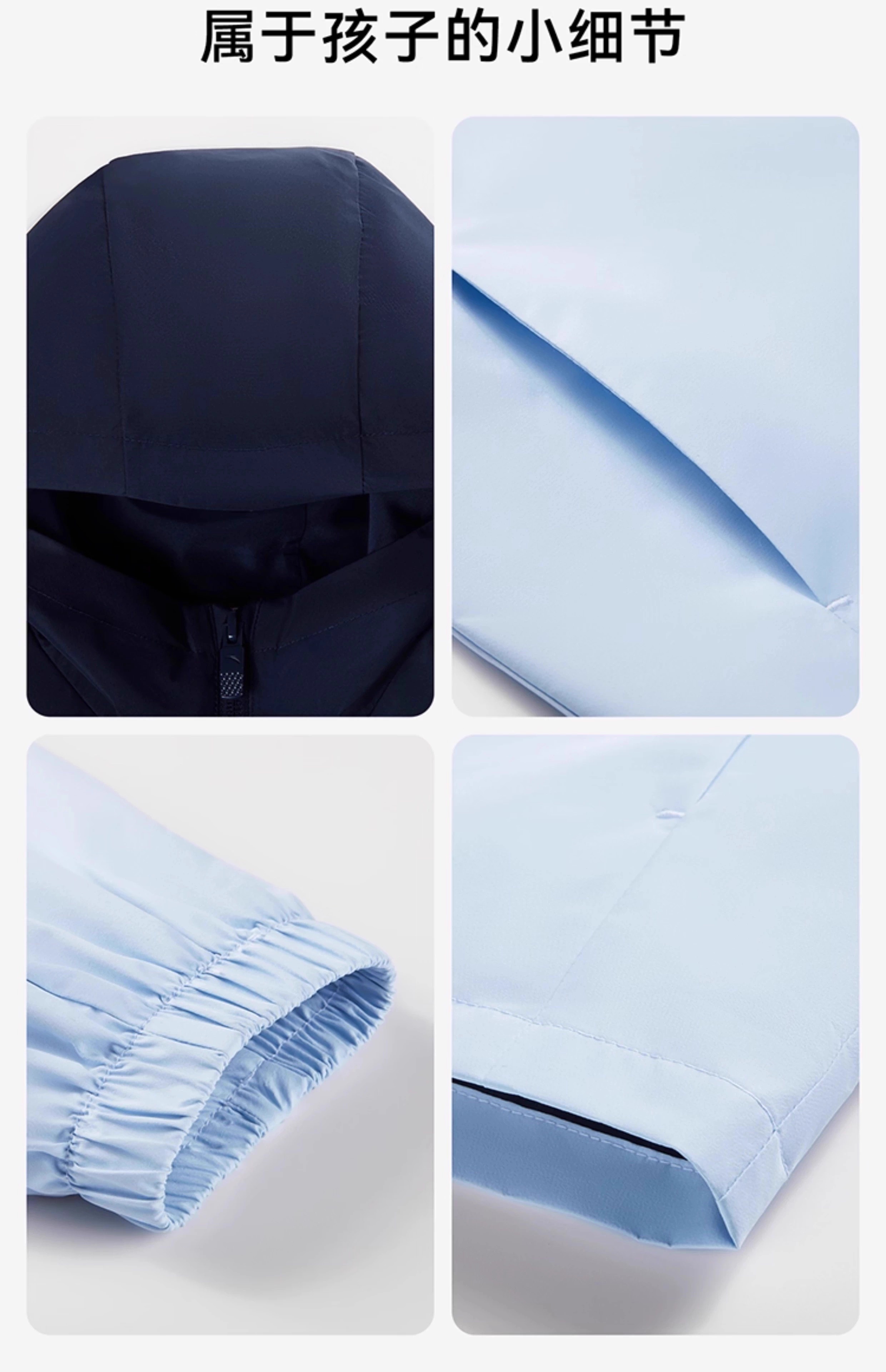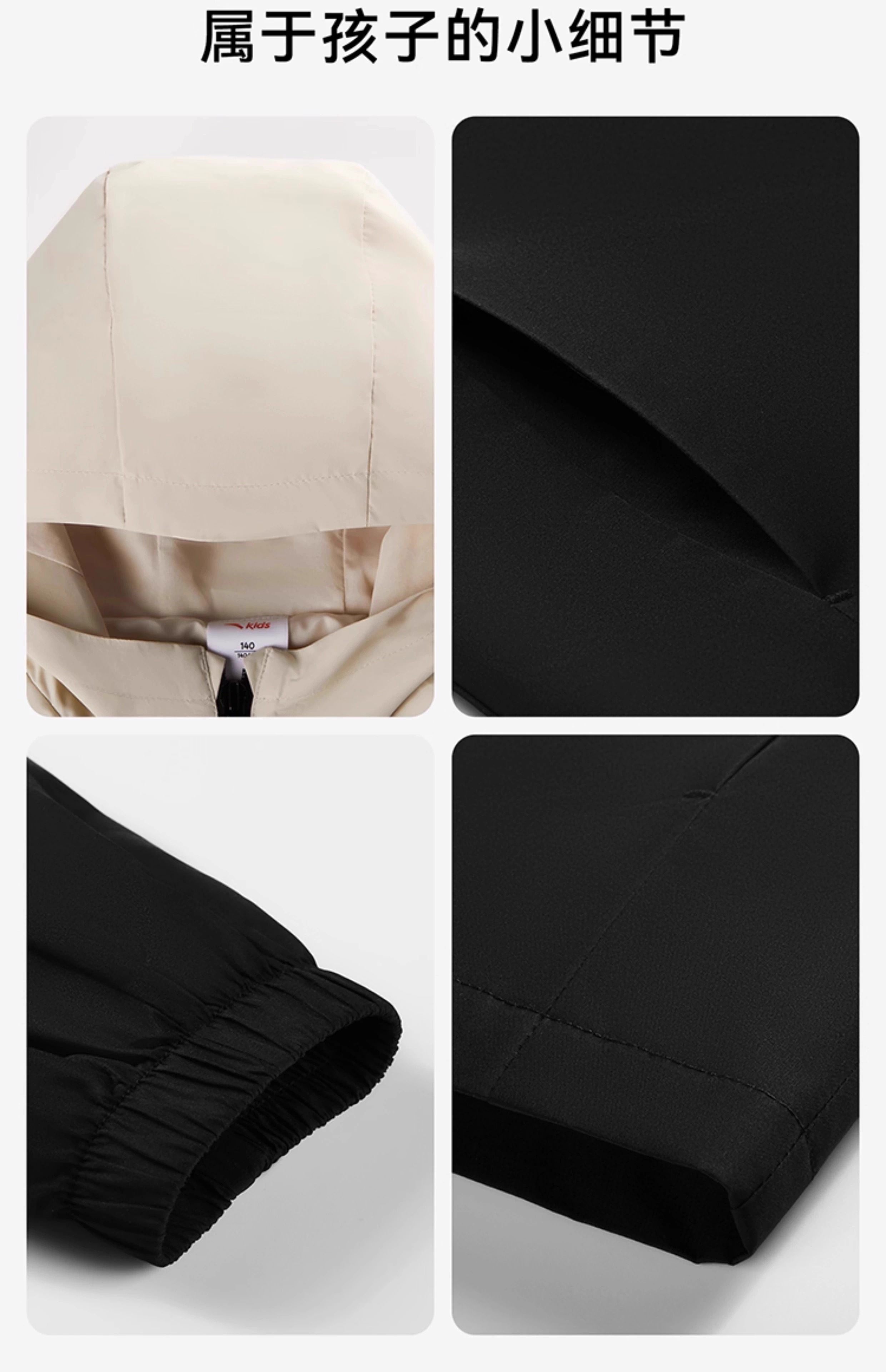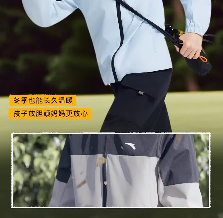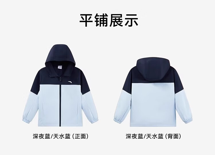 ANTA Jacket Boys 2025 Autumn New Hooded Sports Top Stand Collar Windproof and Water-Repellent Warm Jacket 7601-5 Late Night Blue/Sky Blue 150