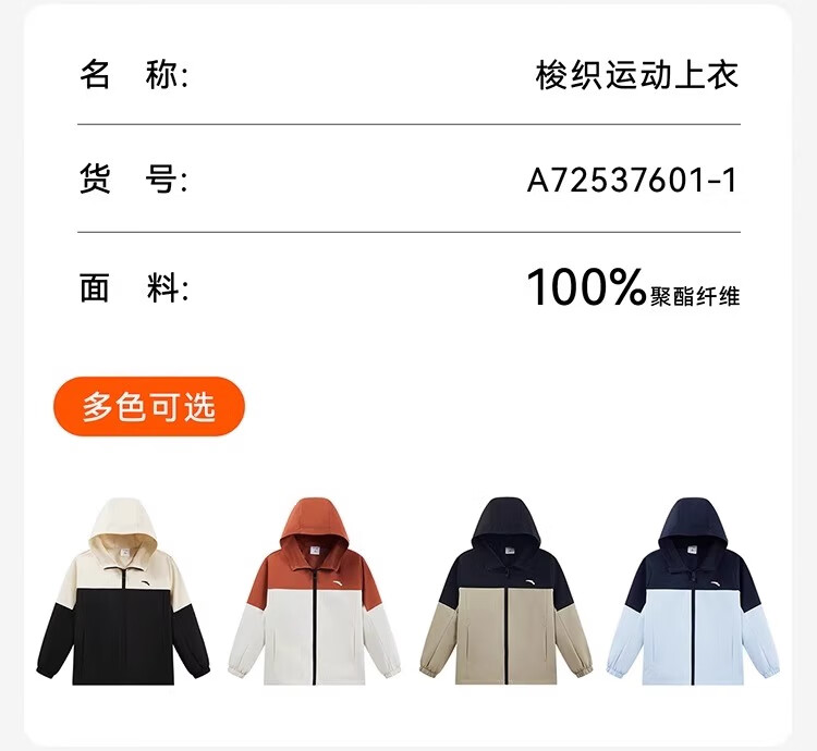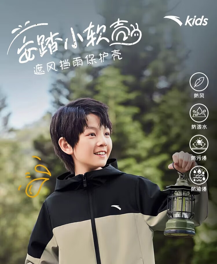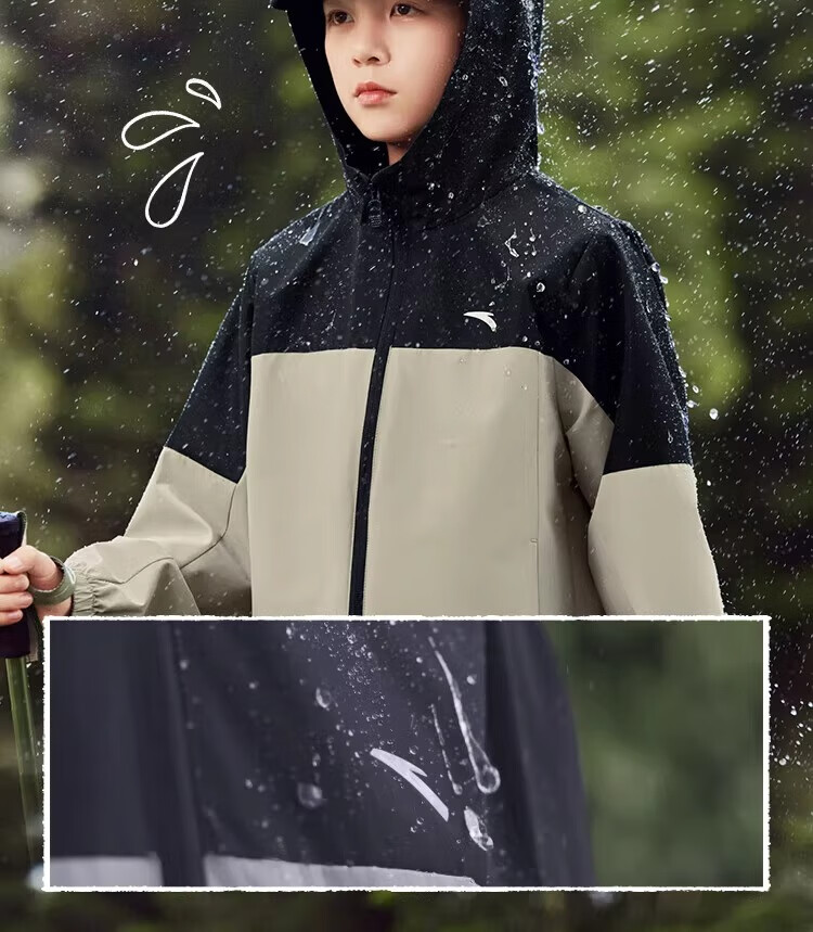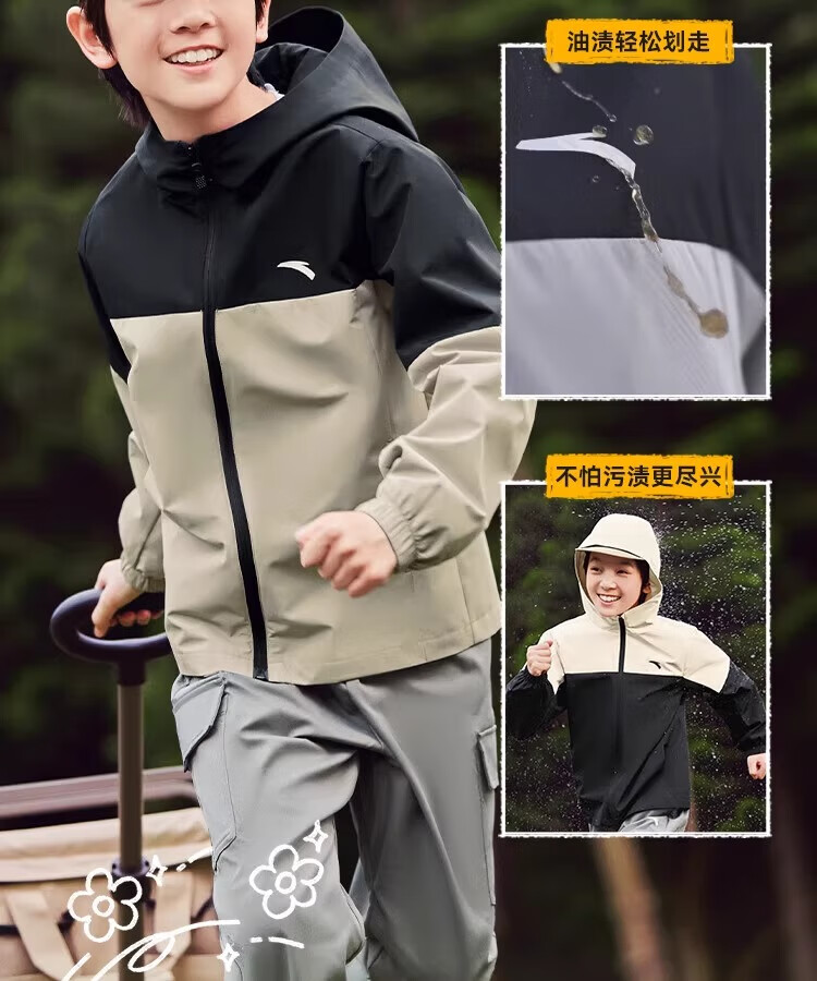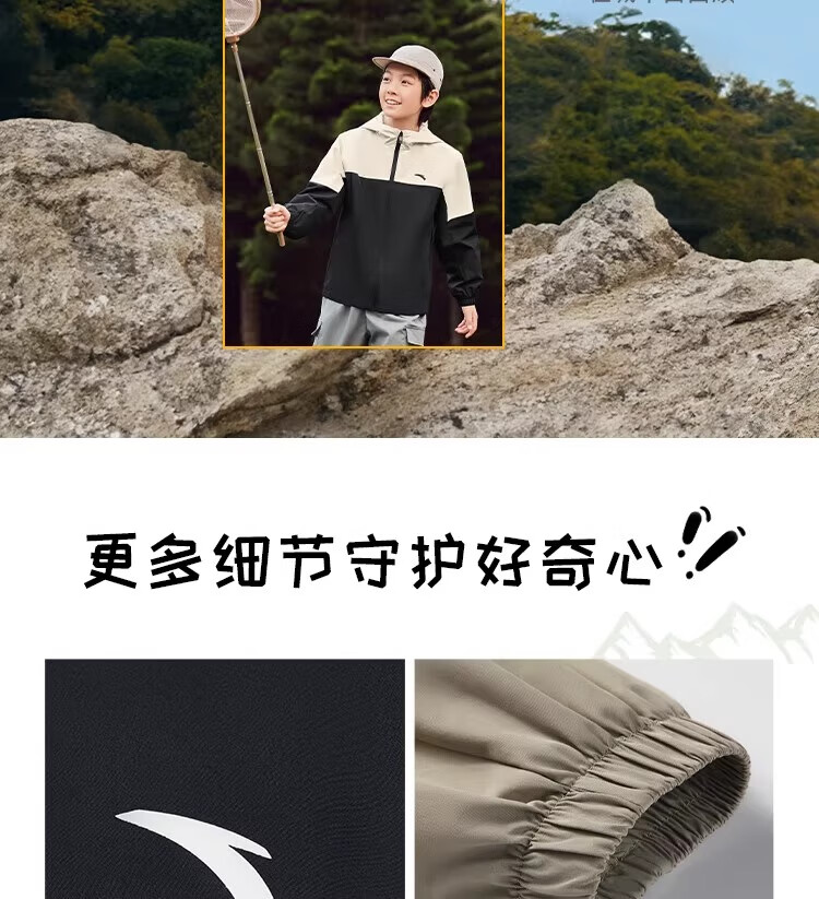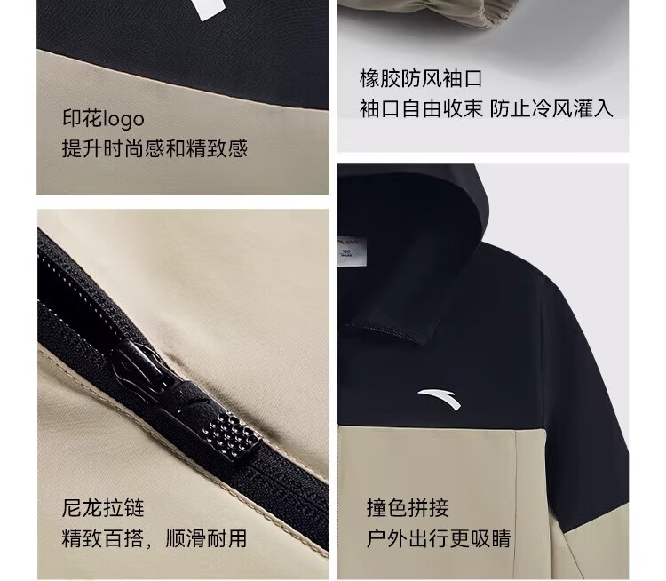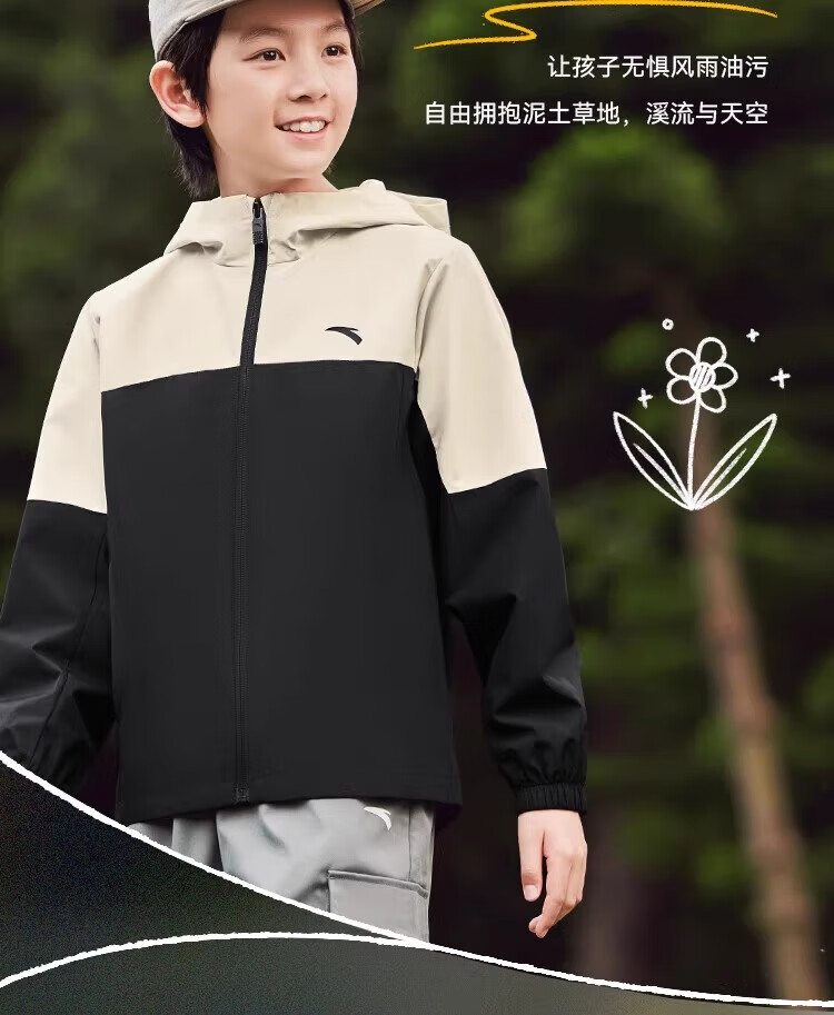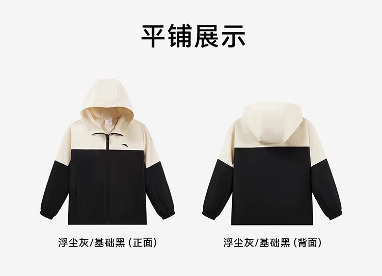ANTA Jacket Boys 2025 Autumn New Hooded Sports Top Stand Collar Windproof and Water-Repellent Warm Jacket 7601-5 Late Night Blue/Sky Blue 150