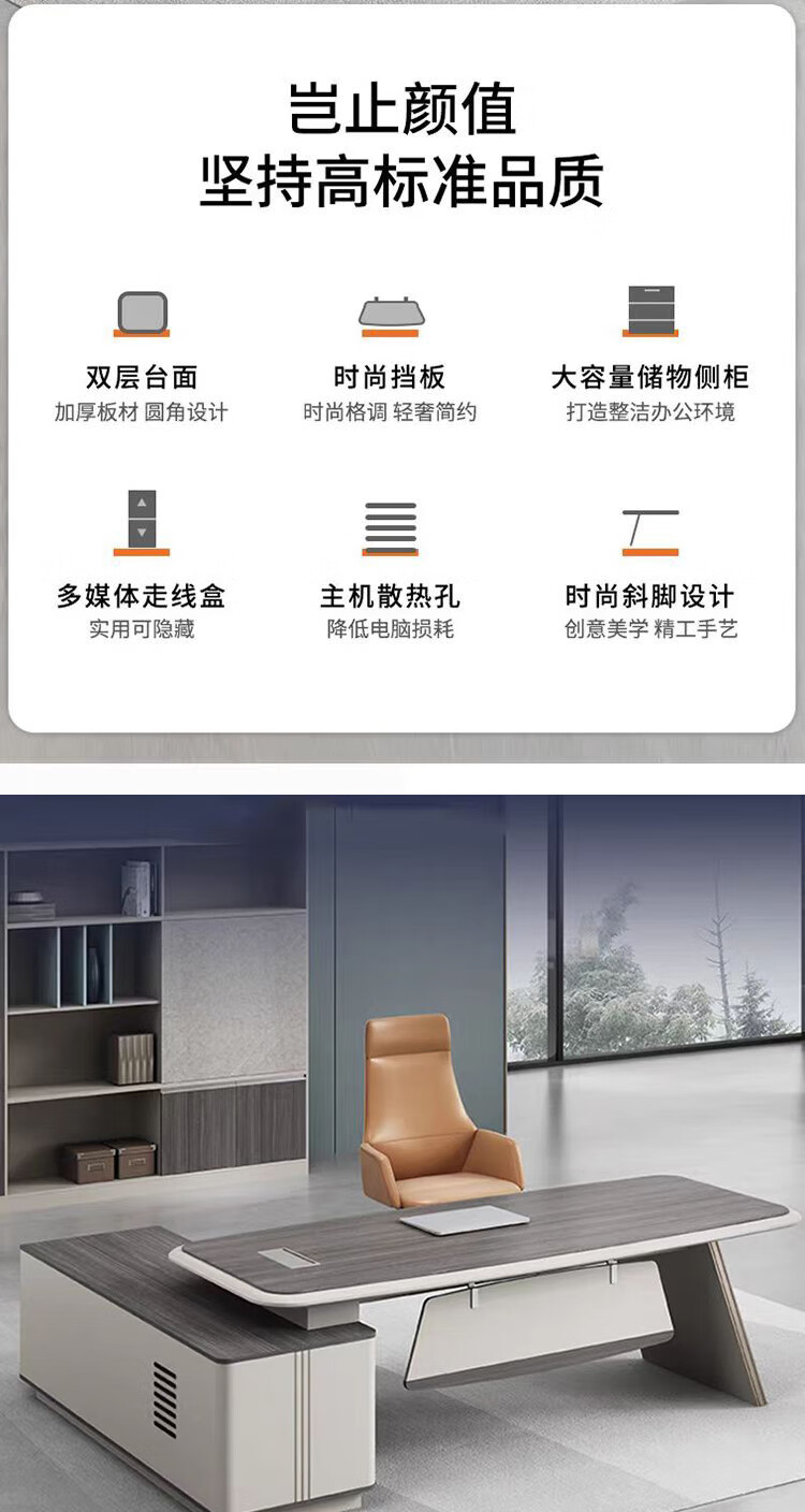Hua Jiangsen Boss Desk President's Desk Light Luxury High-end Executive Desk Manager Desk and Chair Complete Set of Simple Modern Office Furniture 2 Meter Desk