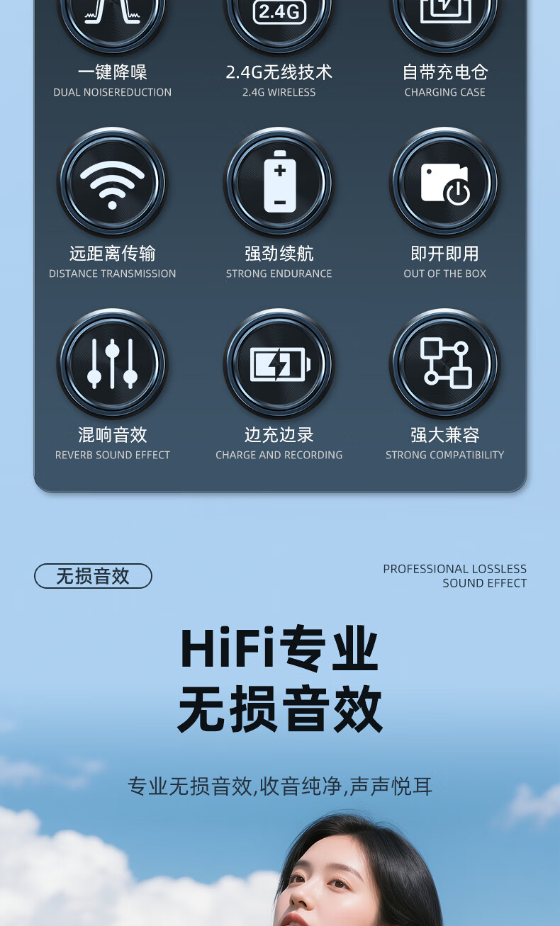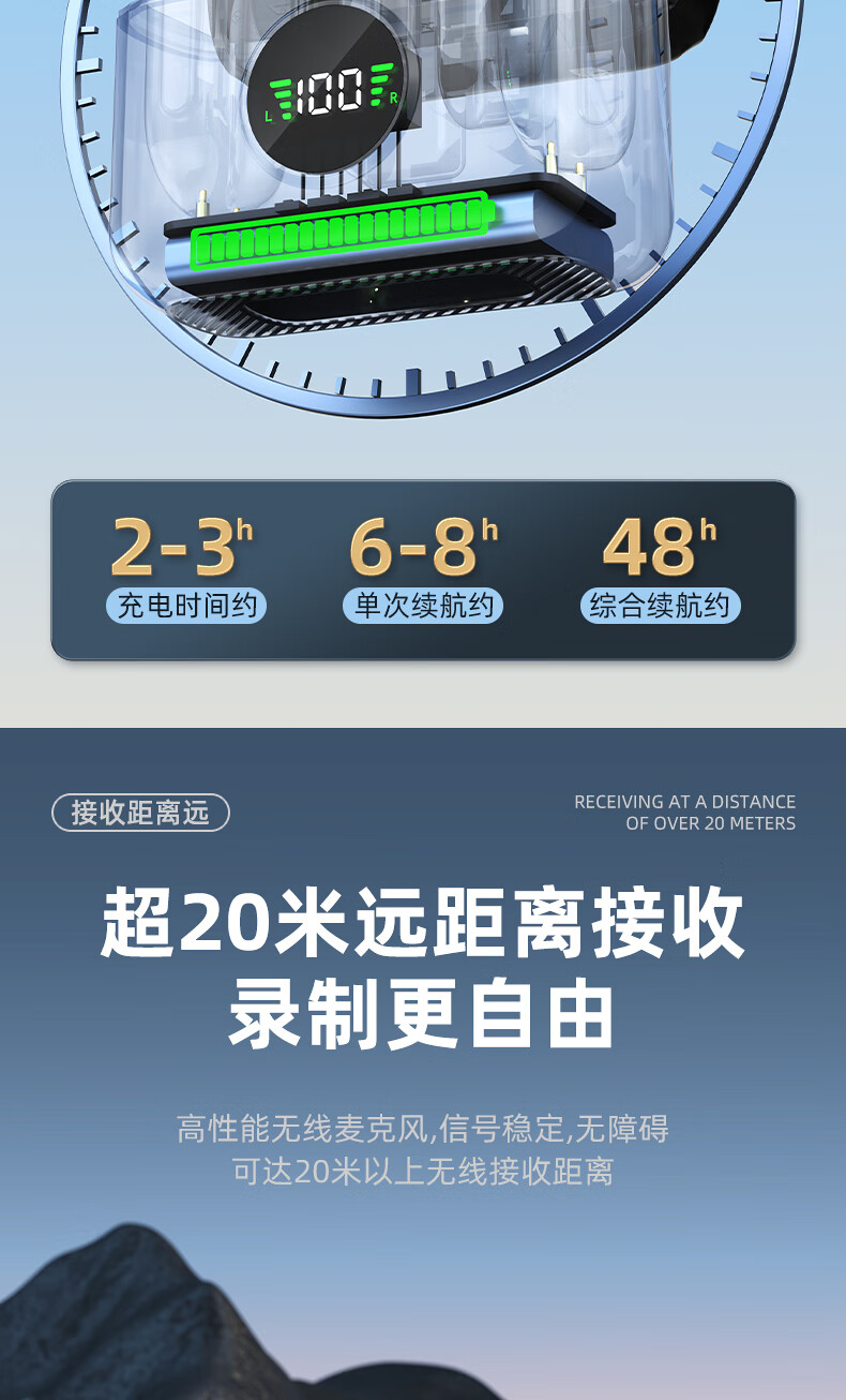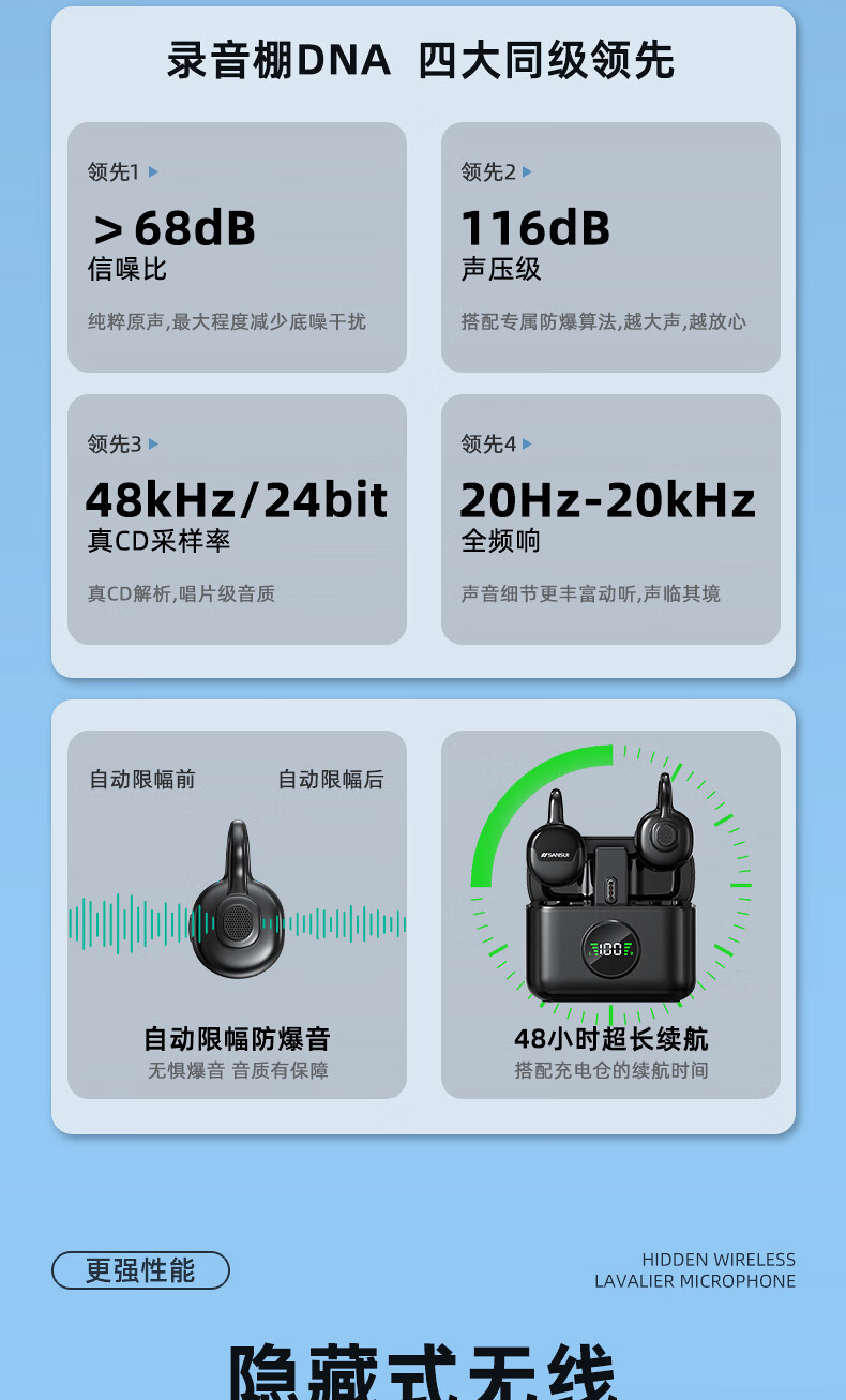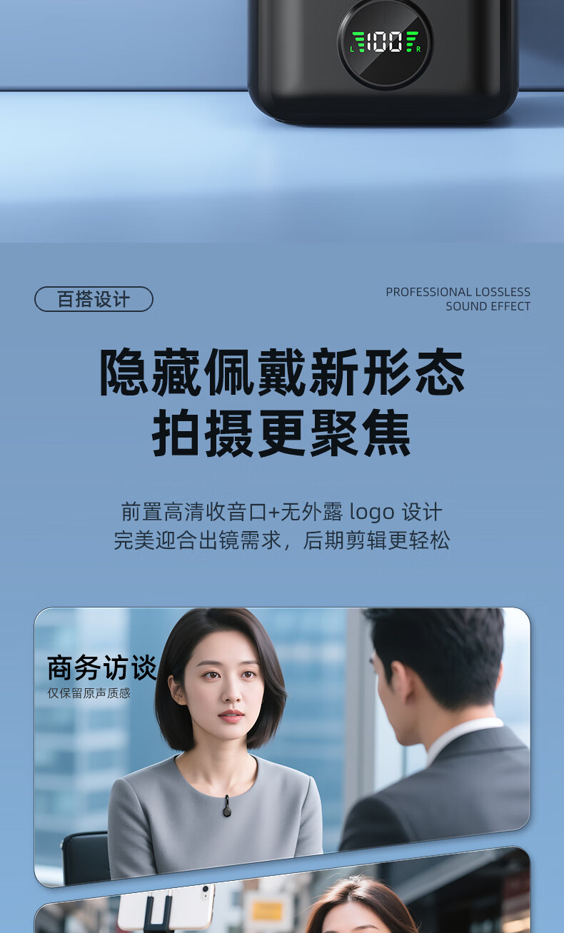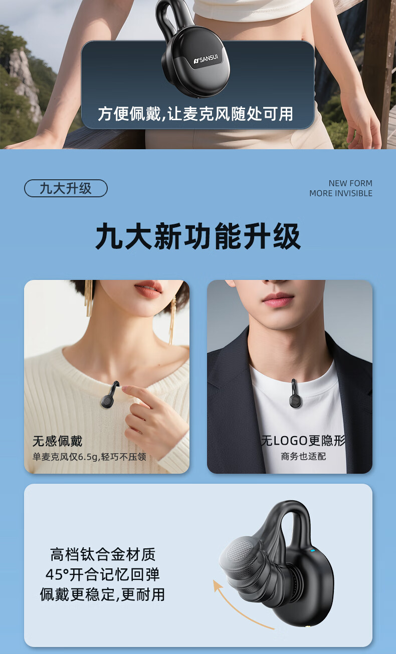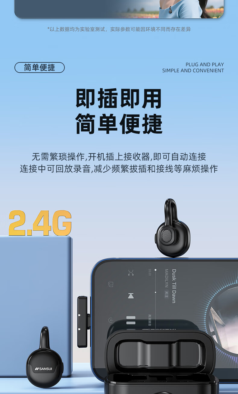 SANSUI MV08 Wireless Lavalier Microphone for Live Singing, Noise Reduction, Card for Sound Modification, Douyin Short Video, Mobile Phone Camera Recording Equipment, Full Set of Radio Microphone, One to Two with Charging Compartment Version, High Definition Radio + Intelligent Noise Reduction, Special for Android Type-C