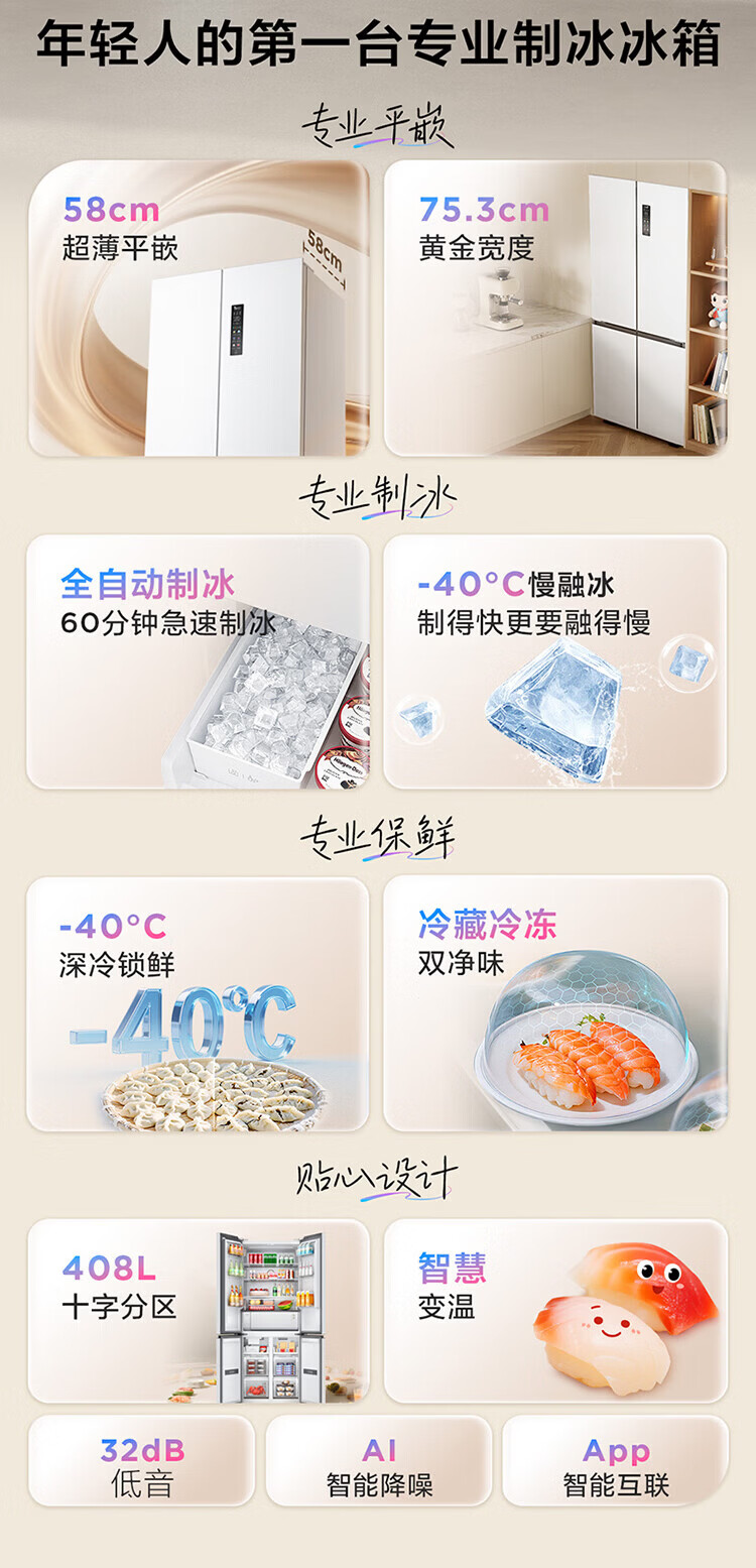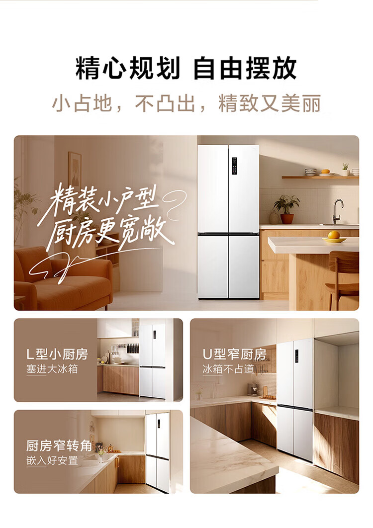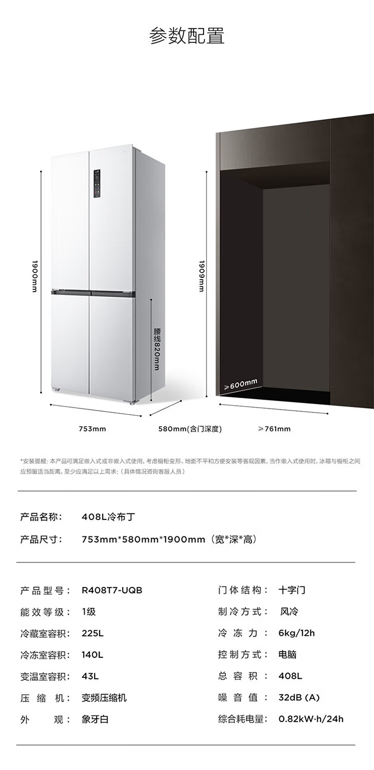 TCL cold pudding 408 liters cross four-door ultra-narrow ultra-thin small apartment zero-embedded fully automatic ice making slow melting ice household refrigerator trade-in R408T7-UQB national subsidy