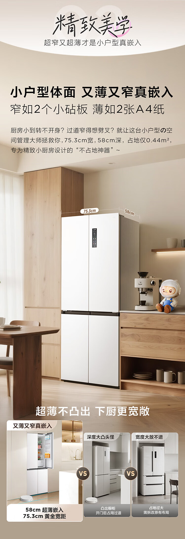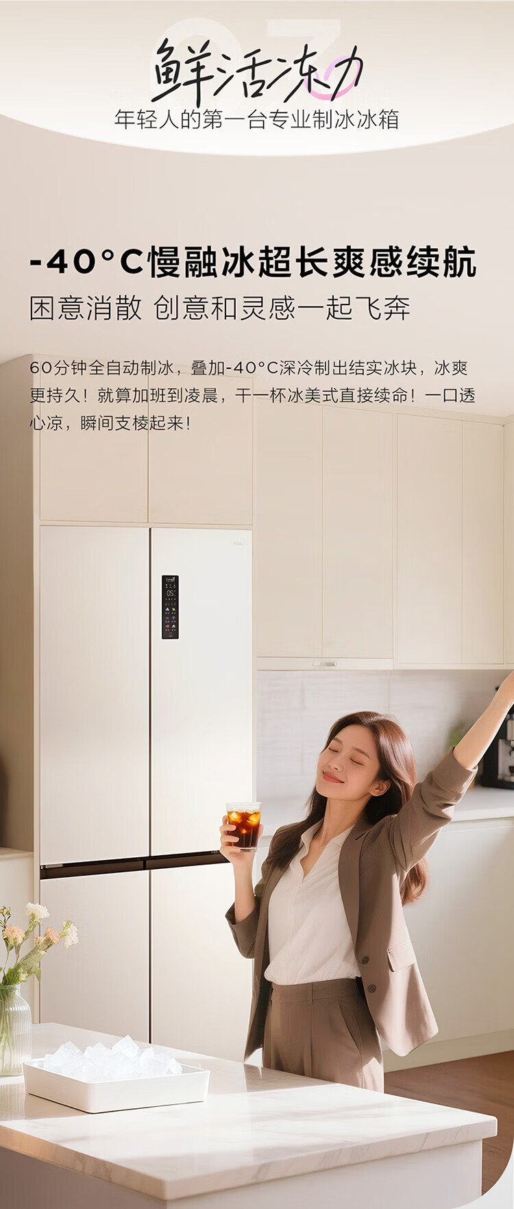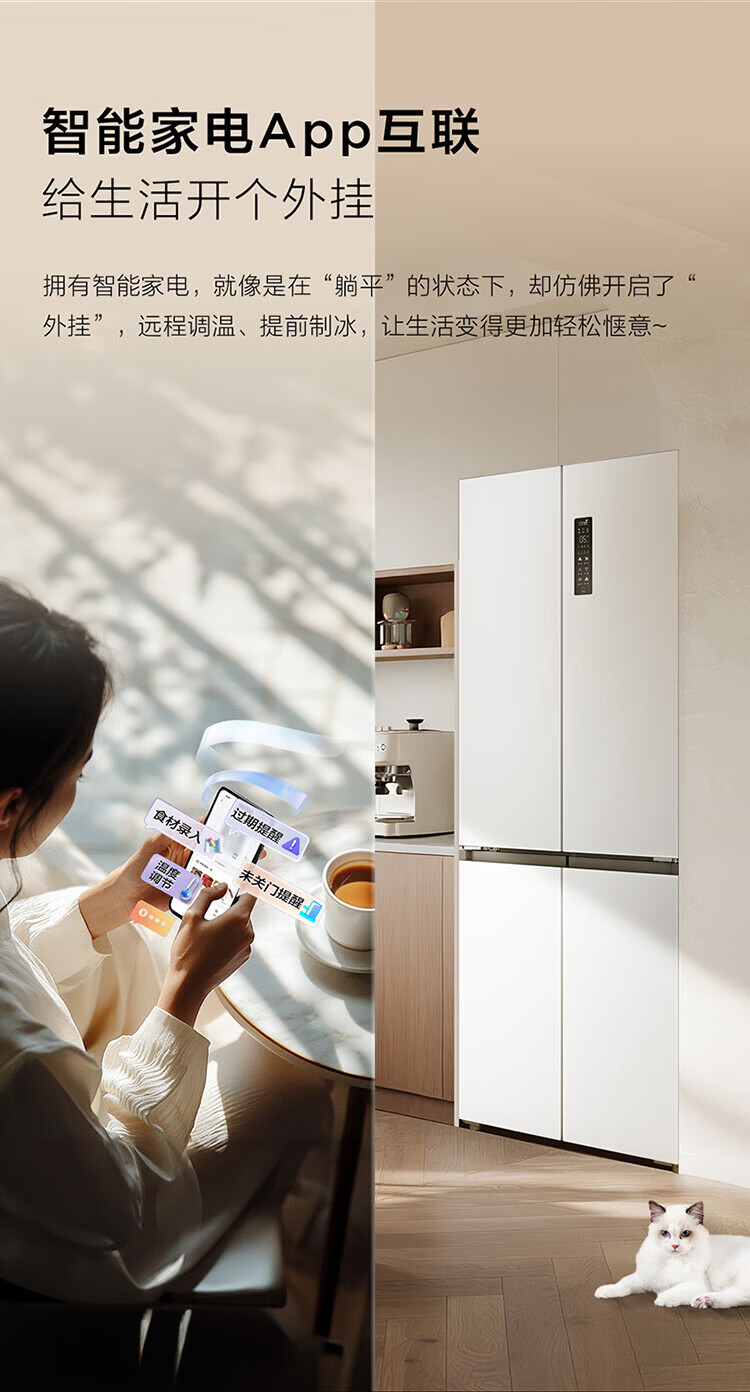 TCL cold pudding 408 liters cross four-door ultra-narrow ultra-thin small apartment zero-embedded fully automatic ice making slow melting ice household refrigerator trade-in R408T7-UQB national subsidy