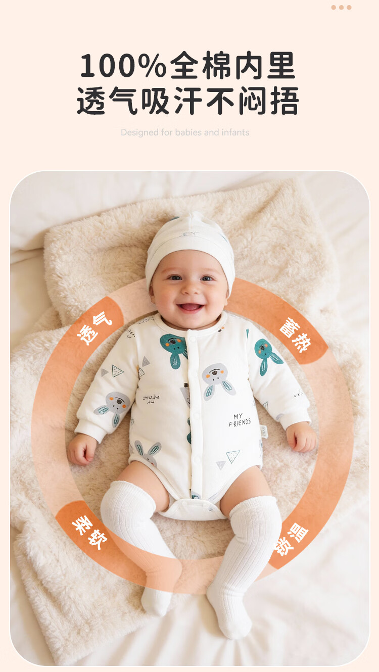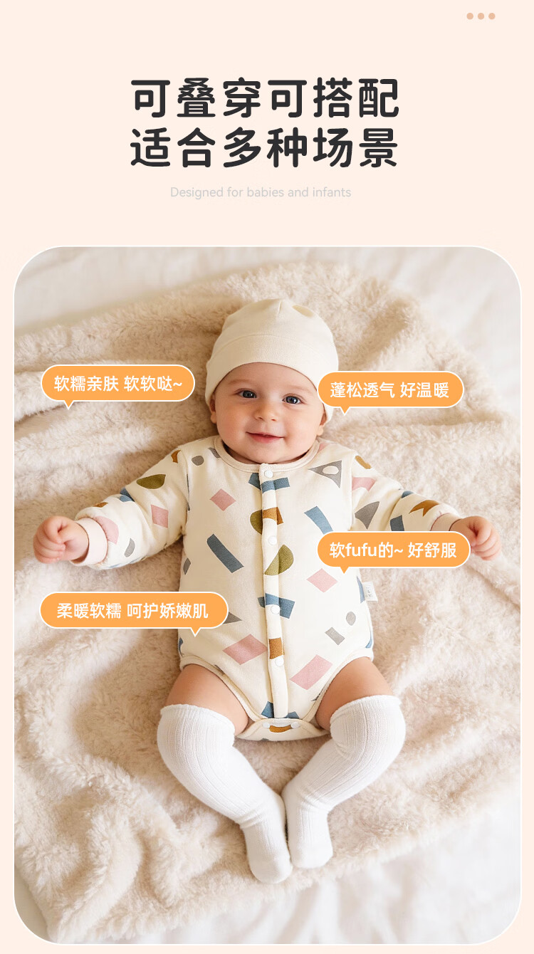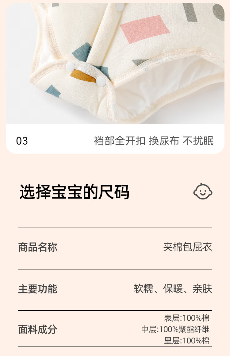 Yishuang'er Baby Cover Spring Autumn Winter Newborn Cotton Triangle Romper Suit Thickened Newborn Baby Cotton Jumpsuit Geometry 59cm