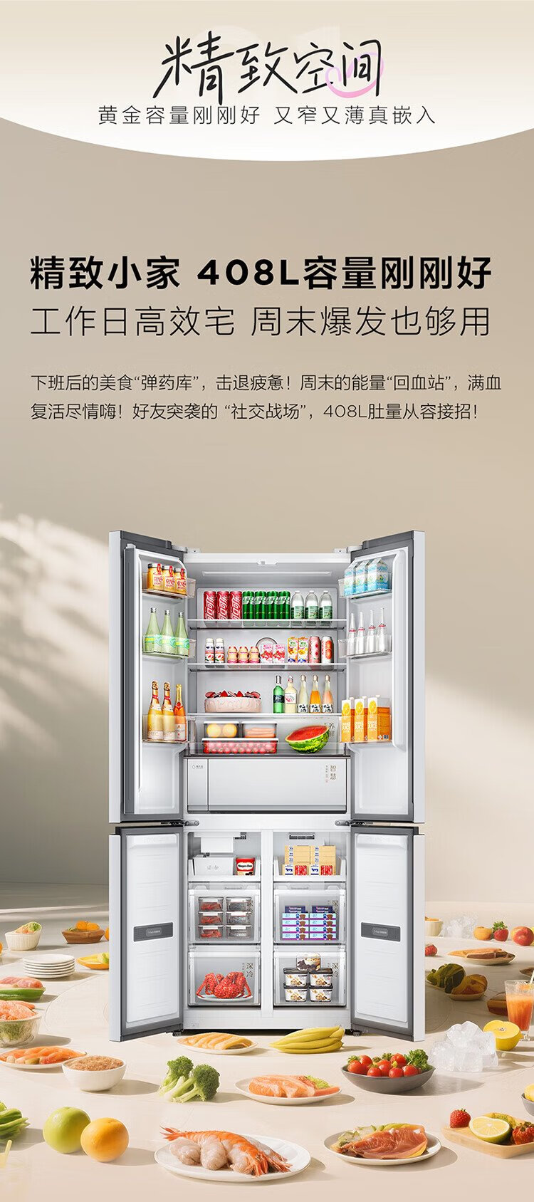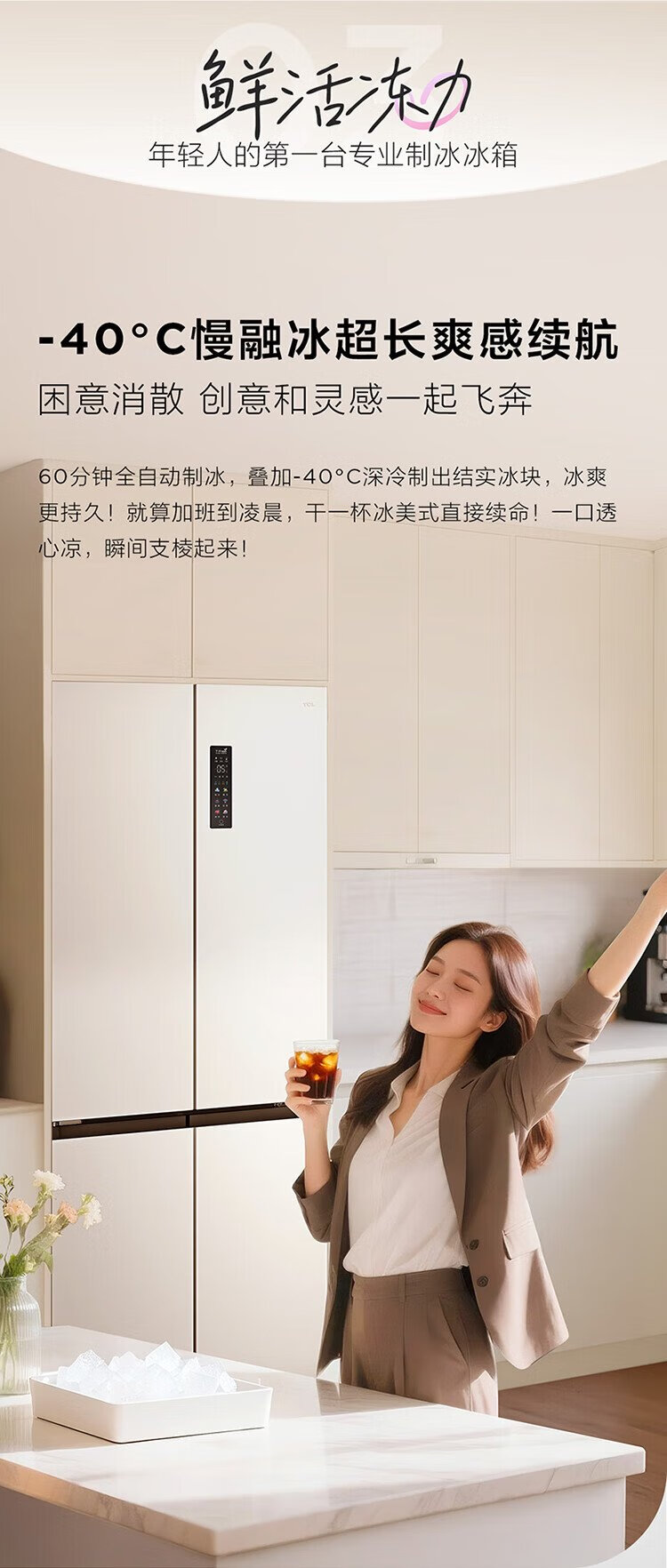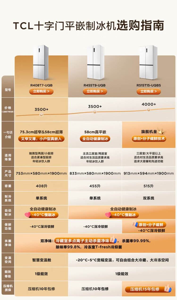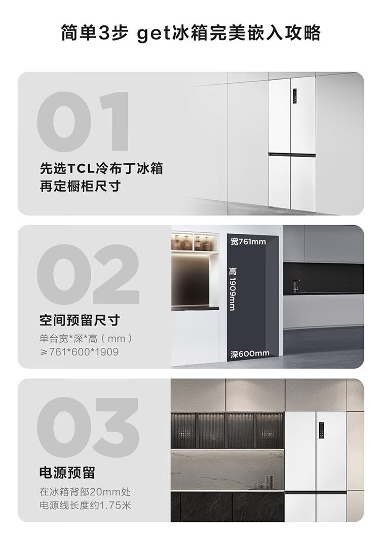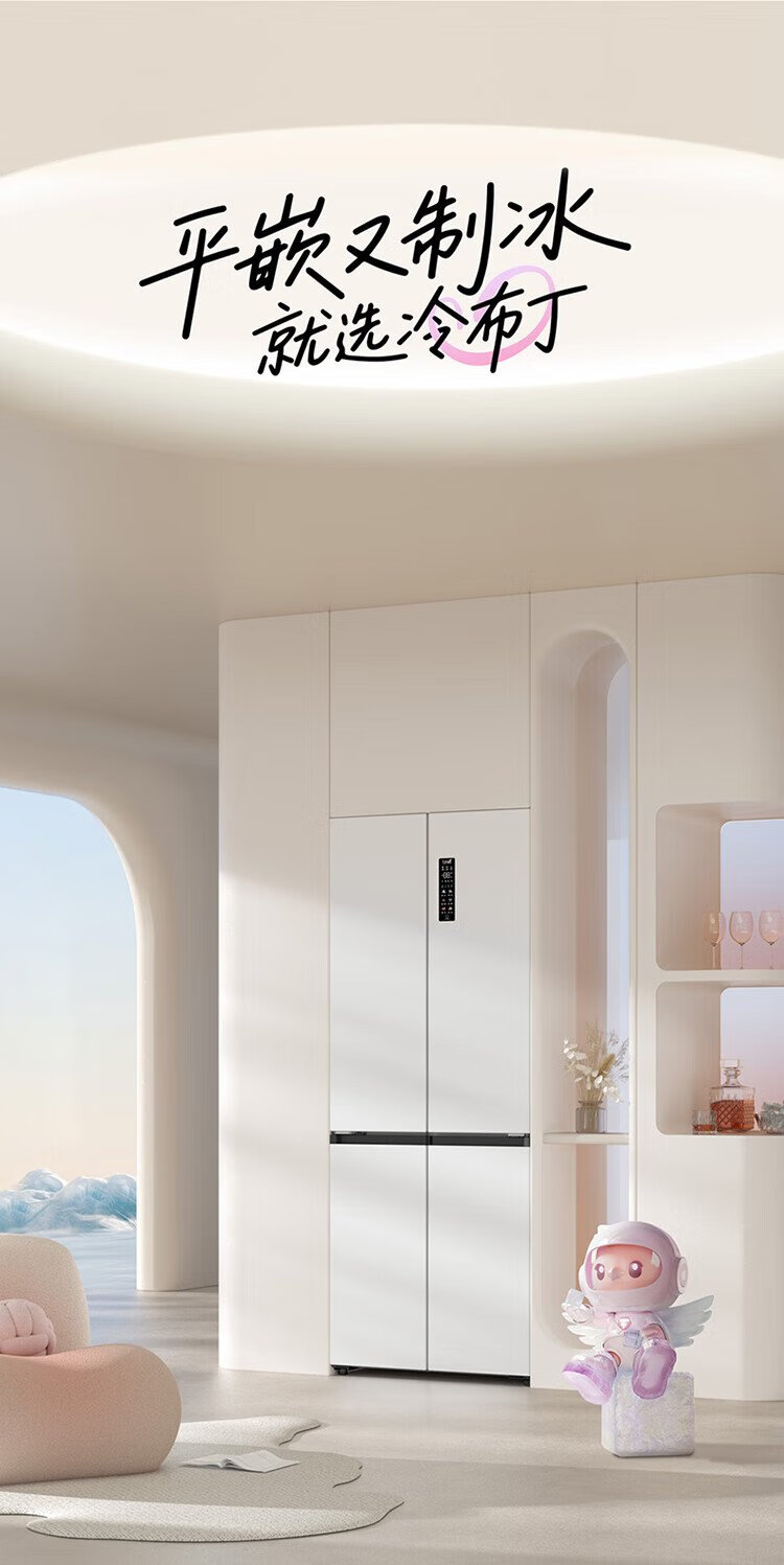 TCL cold pudding 408 liters cross four-door ultra-narrow ultra-thin small apartment zero-embedded fully automatic ice making slow melting ice household refrigerator trade-in R408T7-UQB