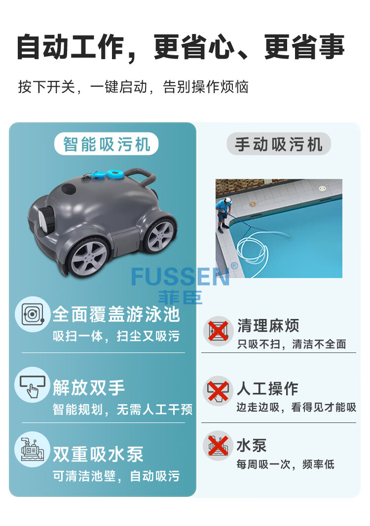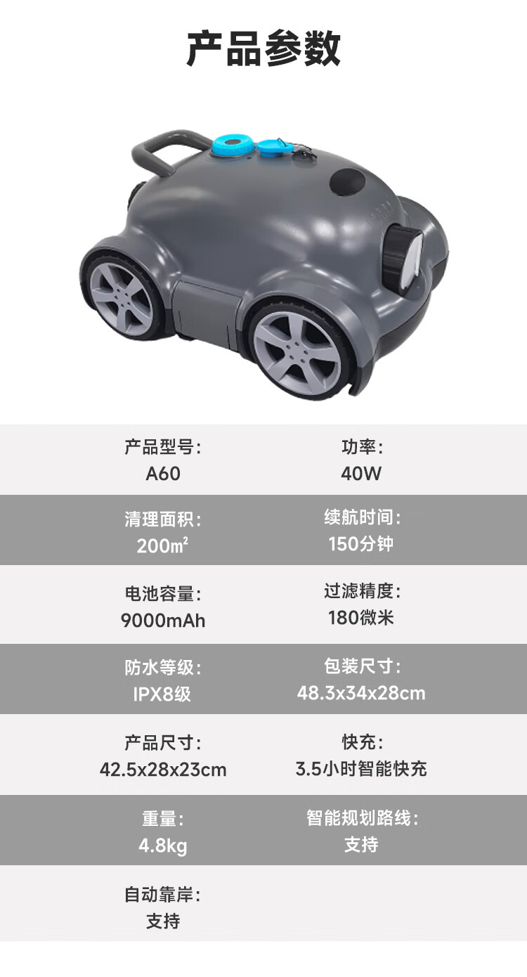 Philips swimming pool sewage suction machine Aqua Turtle rechargeable wireless underwater sewage suction robot pool bottom cleaning vacuum cleaner A04Crab-climbs 90-degree wall, suitable for 300 square meters